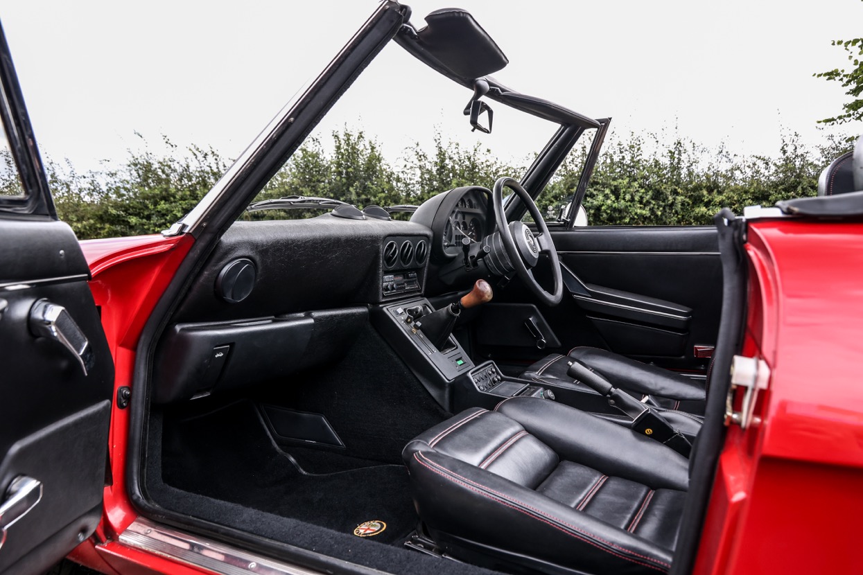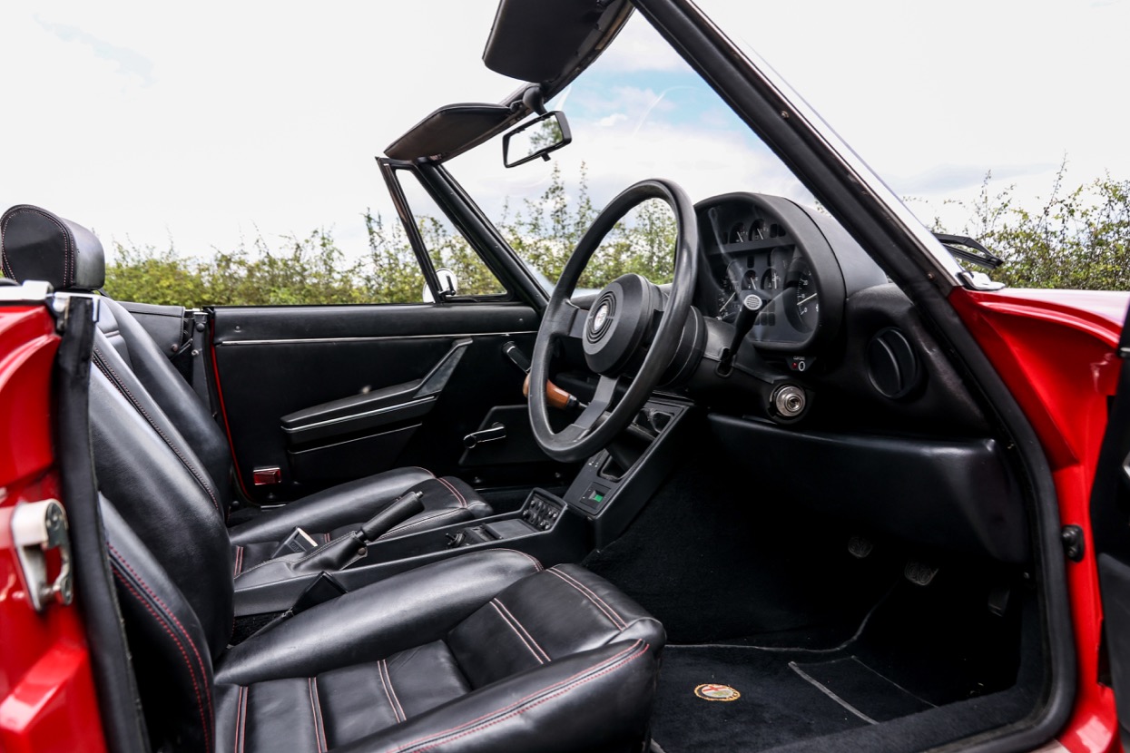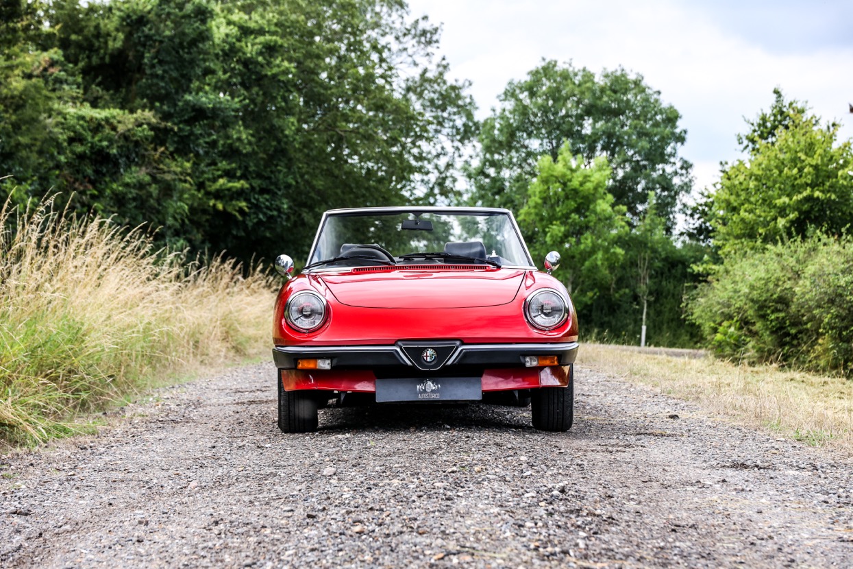 The Alfa Romeo Spider 2000 offered for sale at Autostorcio is a 1989 example and is finished in Alfa Rosso with a Black hood and Black interior trim. This lovely example was imported and registered in the United Kingdom by Bell and Colvill Ltd of Surrey and has covered an indicated 45,693 miles. Having been maintained to a very high standard with recent works including a full service, brake overhaul and new tyres being fitted.