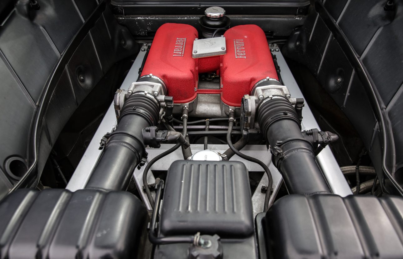 The engine was a derivative of the F355 with a small increase in cubic capacity to 3.6 litres, hence the 360 model designation. The longitudinally mid-mounted, 90 degree V8 engine had an actual cubic capacity of 3586cc, with a bore and stroke of 85mm x 79mm, five valves per cylinder, twin overhead camshafts per bank, and dry sump lubrication. The block, cylinder heads, sump, and sundry castings were all constructed from light alloy. A Bosch Motronic ME 7.3 combined fuel injection/ignition engine management system was fitted, featuring a “fly by wire” throttle system, and a variable back pressure exhaust system, to provide a claimed power output of 400bhp, which equates to 112 bhp/litre, driving through a six speed manual transmission.