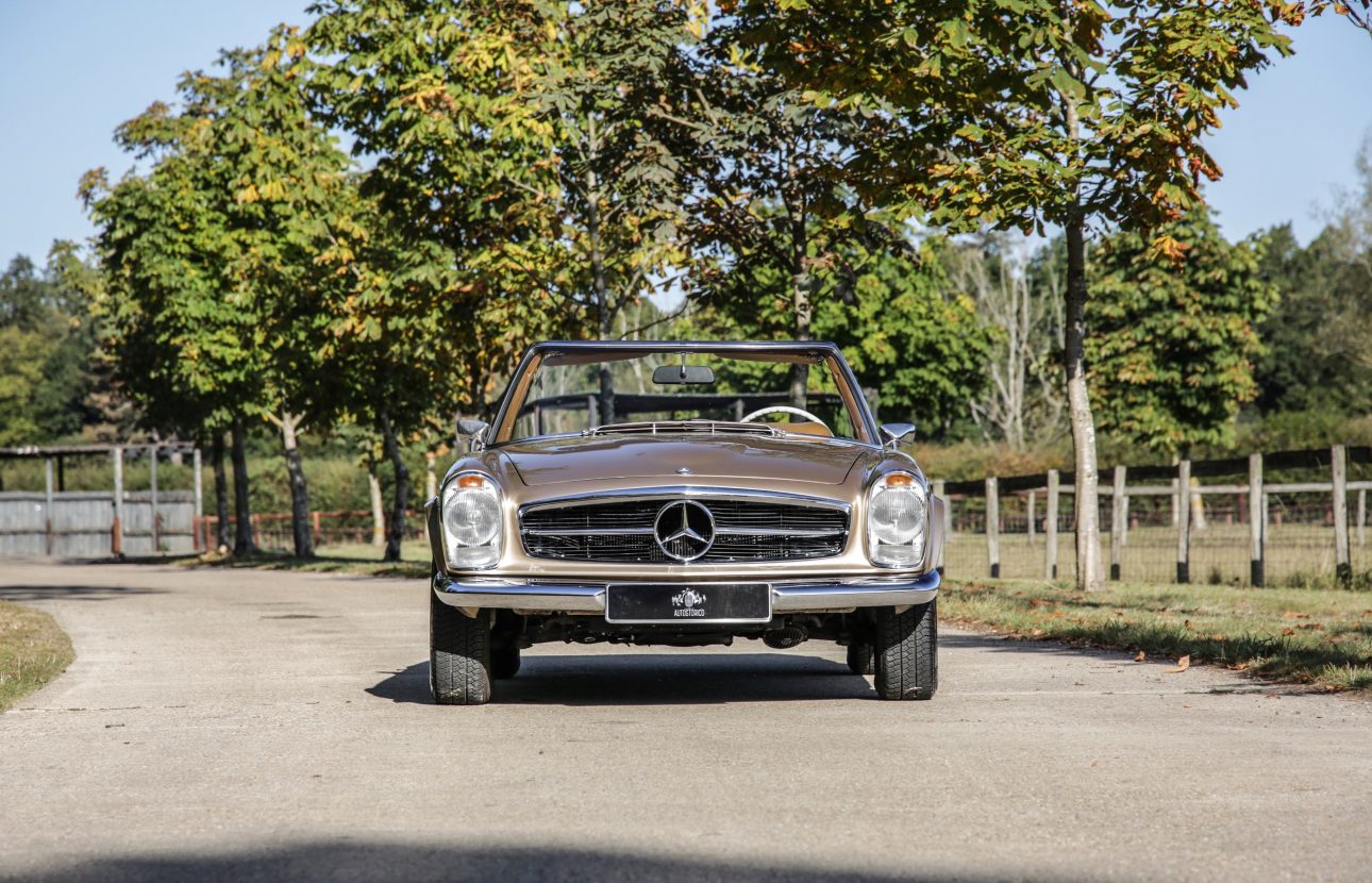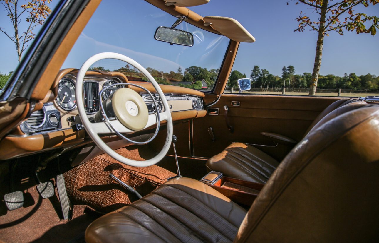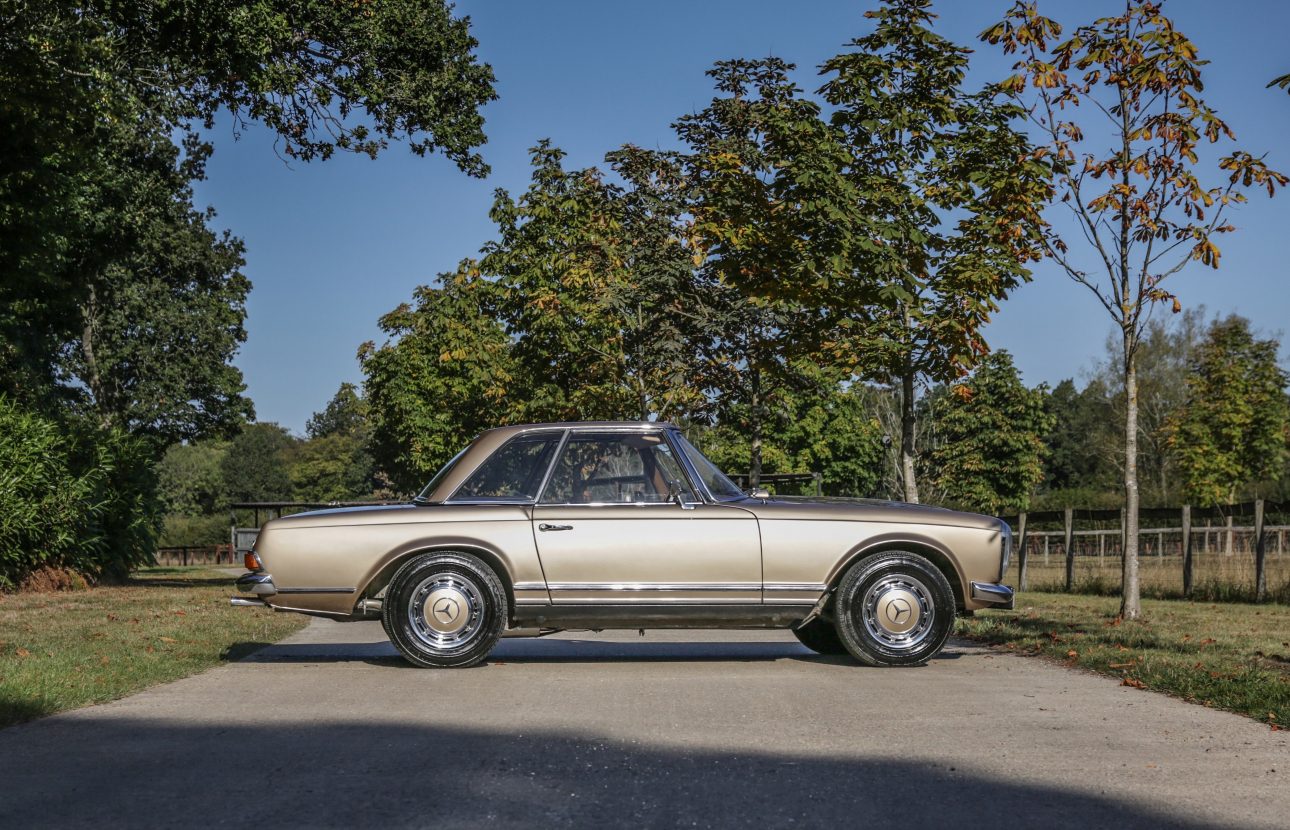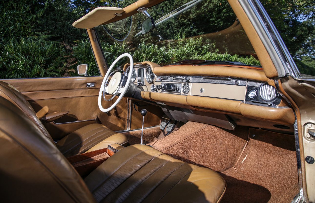 The Mercedes-Benz 280 SL Pagoda offered here at Autostorico was supplied in France in 1971, before being shipped to Virginia in the USA. Finished in its original Sandy Beige Metallic with Cognac leather interior and Black soft top, this lovely matching numbers example remained in the USA until 1991 when it returned to Ireland. Purchased by its current owner in 2015 the car has been maintained to an exceptionally high standard. Work was entrusted to Pagoda marque specialist Paul Bracq Atelier in Bordeaux which is run by Boris Bracq the son of Mercedes retired lead designer Paul Bracq. Invoices totalling €28,000 for recent work include; full engine rebuild including new pistons and re-bore, fuel system overhaul, radiator refurb, new exhaust system, gearbox overhaul, new clutch and paintwork.