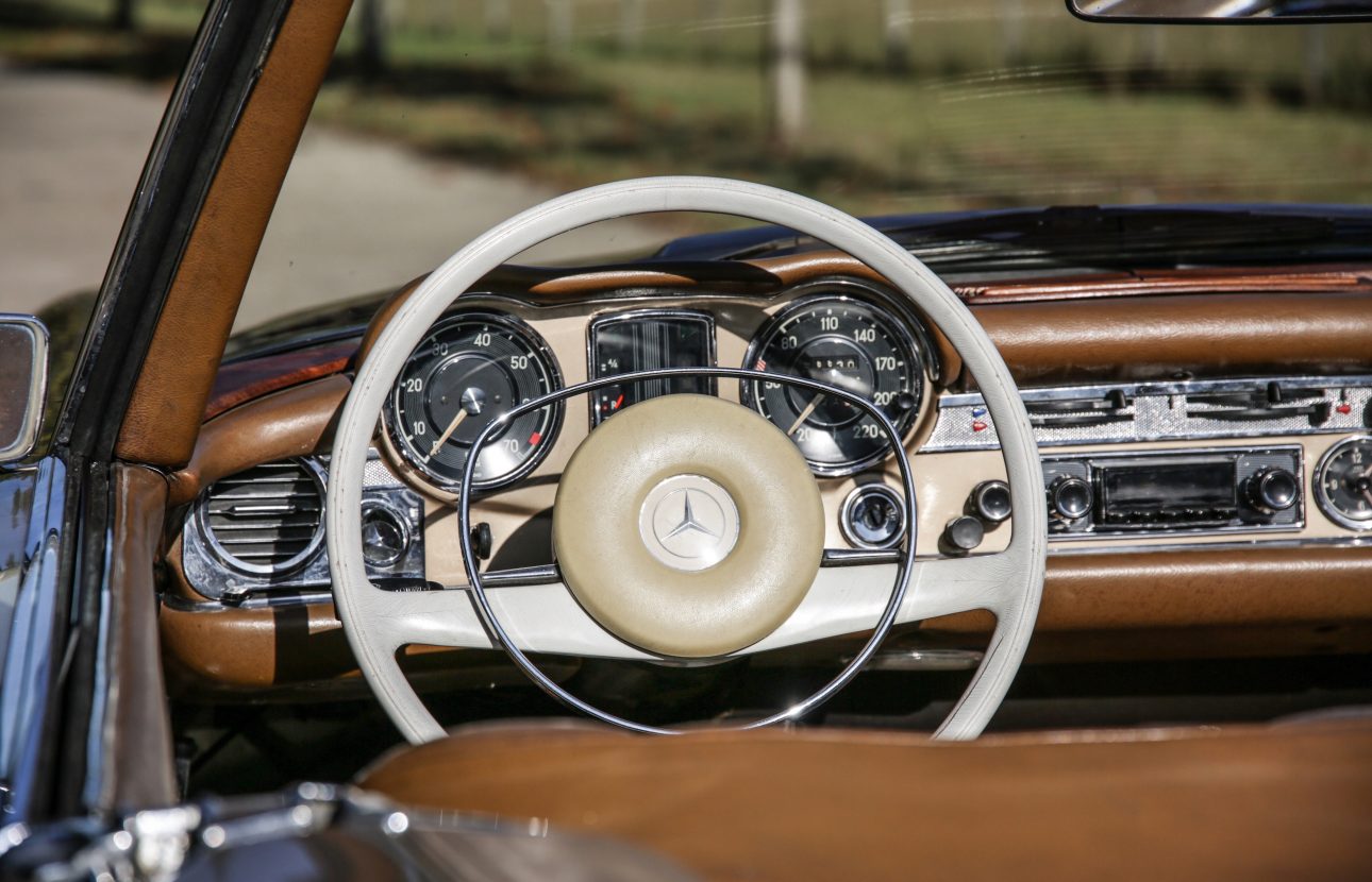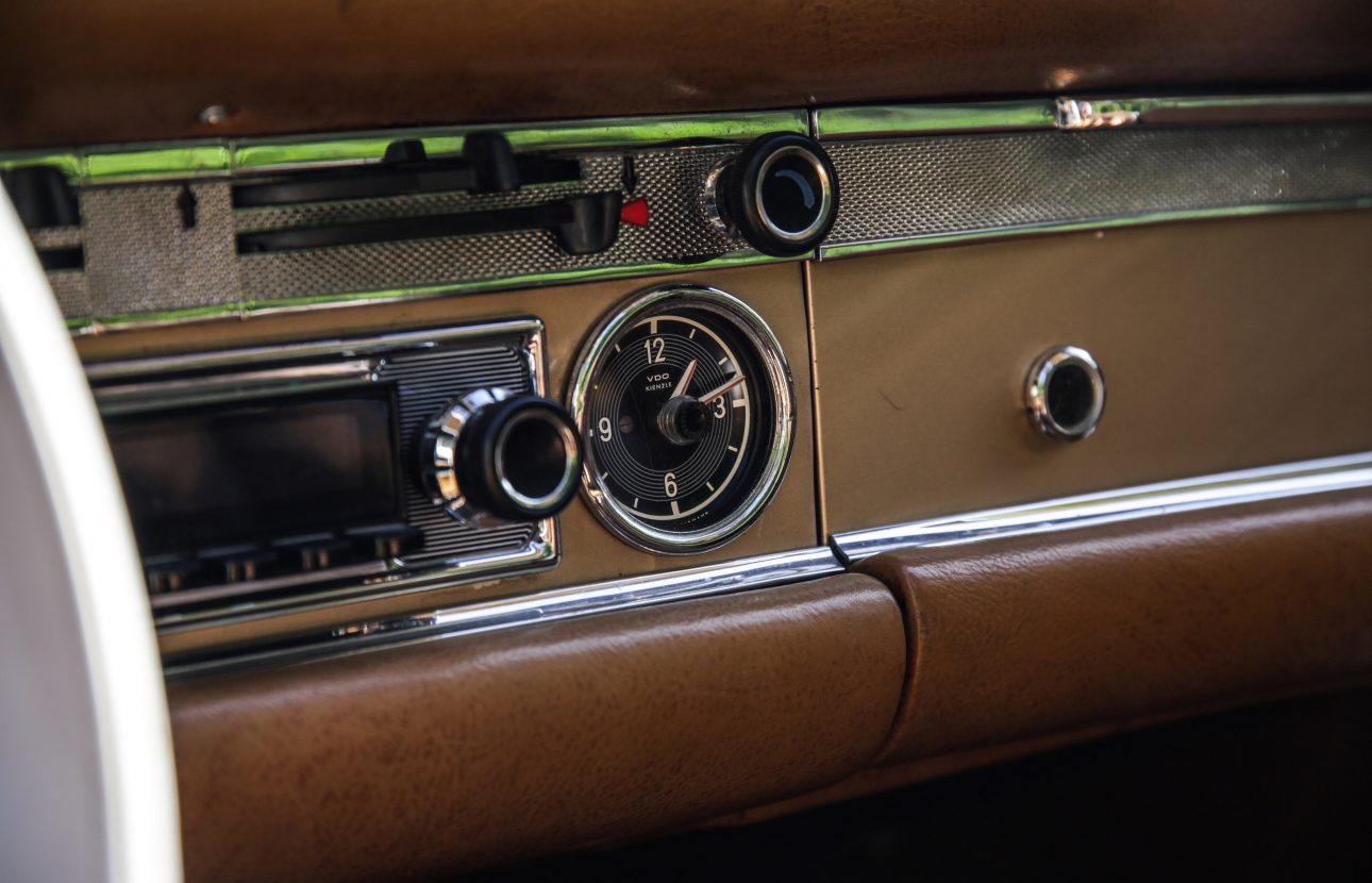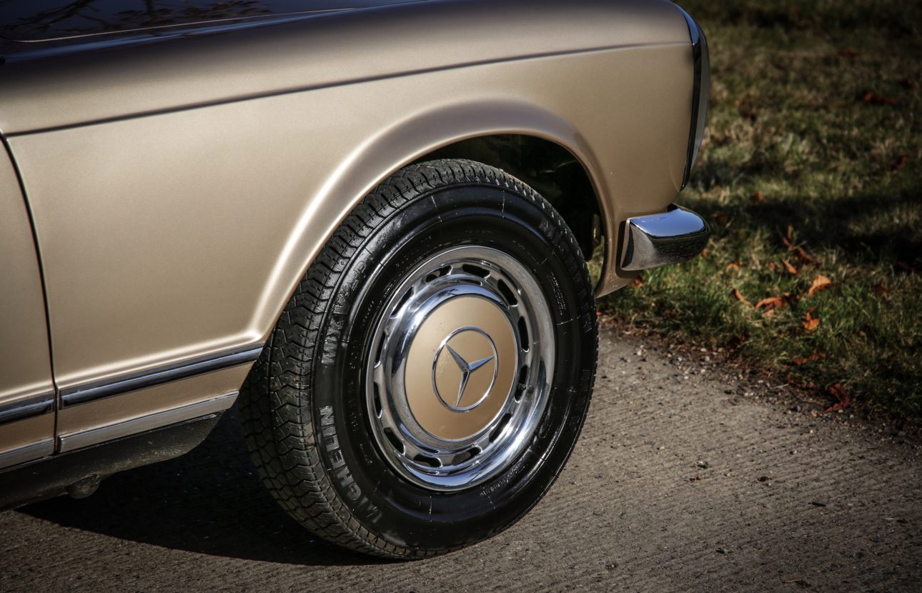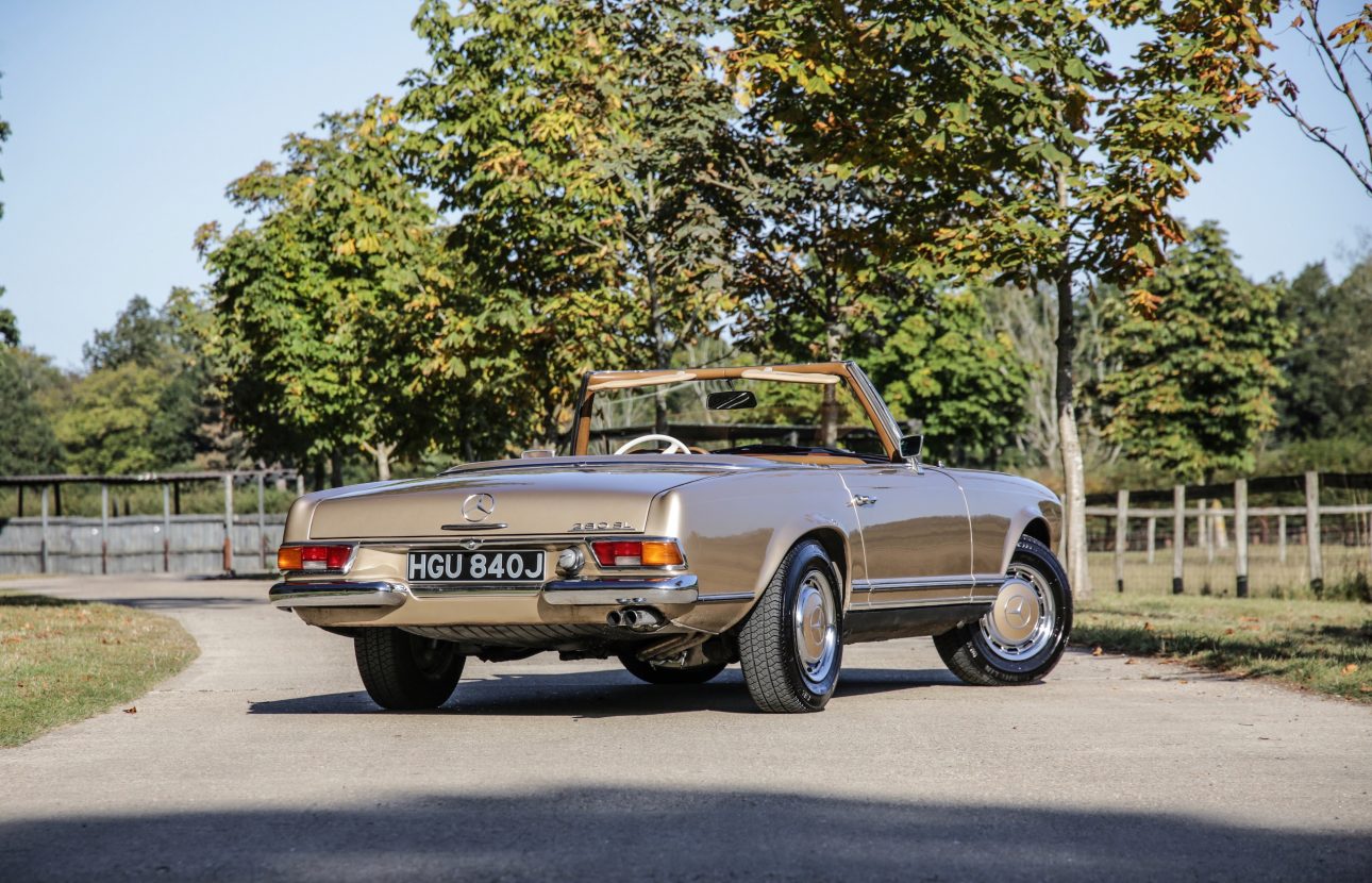 The Mercedes-Benz 280 SL Pagoda offered here at Autostorico was supplied in France in 1971, before being shipped to Virginia in the USA. Finished in its original Sandy Beige Metallic with Cognac leather interior and Black soft top, this lovely matching numbers example remained in the USA until 1991 when it returned to Ireland. Purchased by its current owner in 2015 the car has been maintained to an exceptionally high standard. Work was entrusted to Pagoda marque specialist Paul Bracq Atelier in Bordeaux which is run by Boris Bracq the son of Mercedes retired lead designer Paul Bracq. Invoices totalling €28,000 for recent work include; full engine rebuild including new pistons and re-bore, fuel system overhaul, radiator refurb, new exhaust system, gearbox overhaul, new clutch and paintwork.