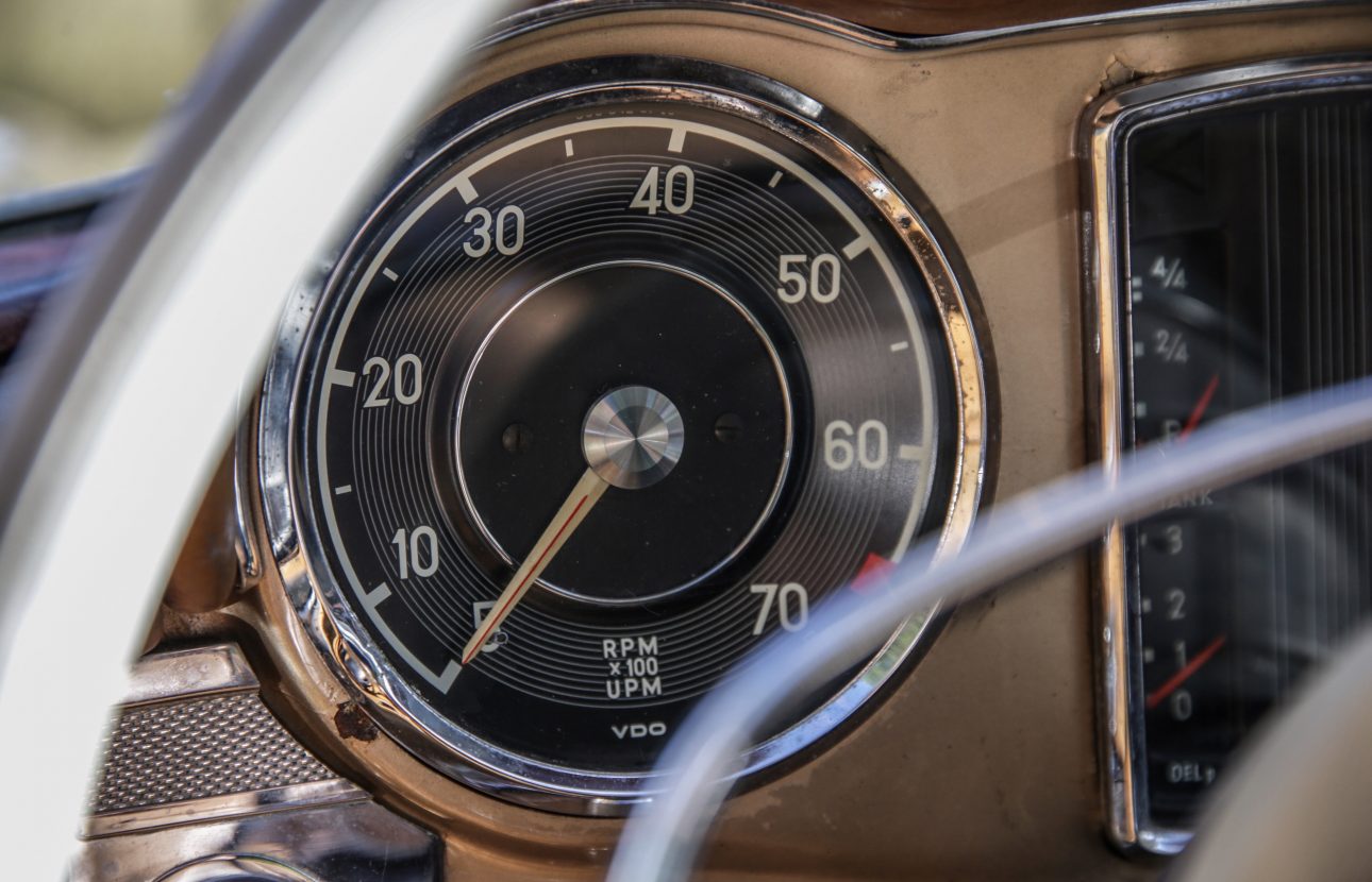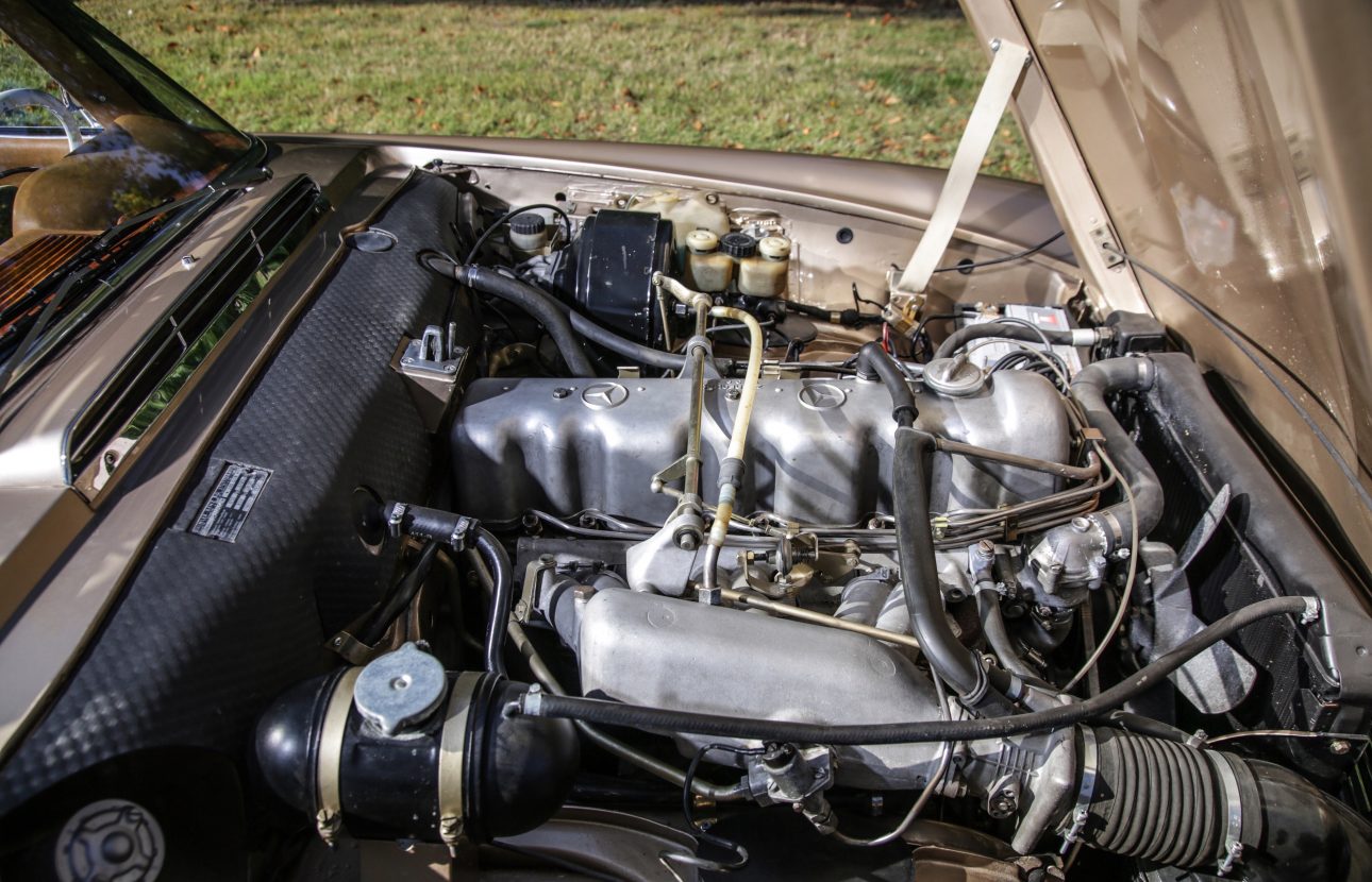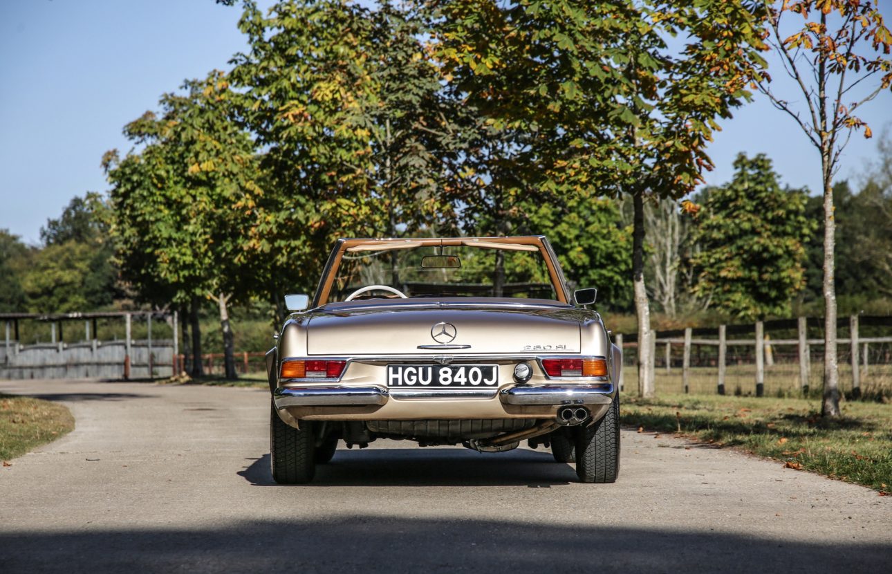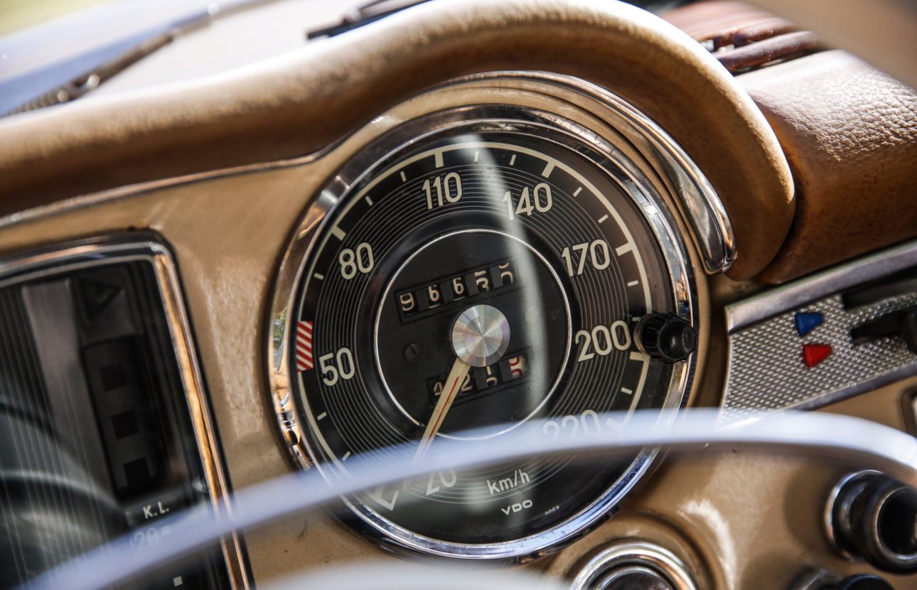 The Mercedes-Benz 280 SL Pagoda offered here at Autostorico was supplied in France in 1971, before being shipped to Virginia in the USA. Finished in its original Sandy Beige Metallic with Cognac leather interior and Black soft top, this lovely matching numbers example remained in the USA until 1991 when it returned to Ireland. Purchased by its current owner in 2015 the car has been maintained to an exceptionally high standard. Work was entrusted to Pagoda marque specialist Paul Bracq Atelier in Bordeaux which is run by Boris Bracq the son of Mercedes retired lead designer Paul Bracq. Invoices totalling €28,000 for recent work include; full engine rebuild including new pistons and re-bore, fuel system overhaul, radiator refurb, new exhaust system, gearbox overhaul, new clutch and paintwork.