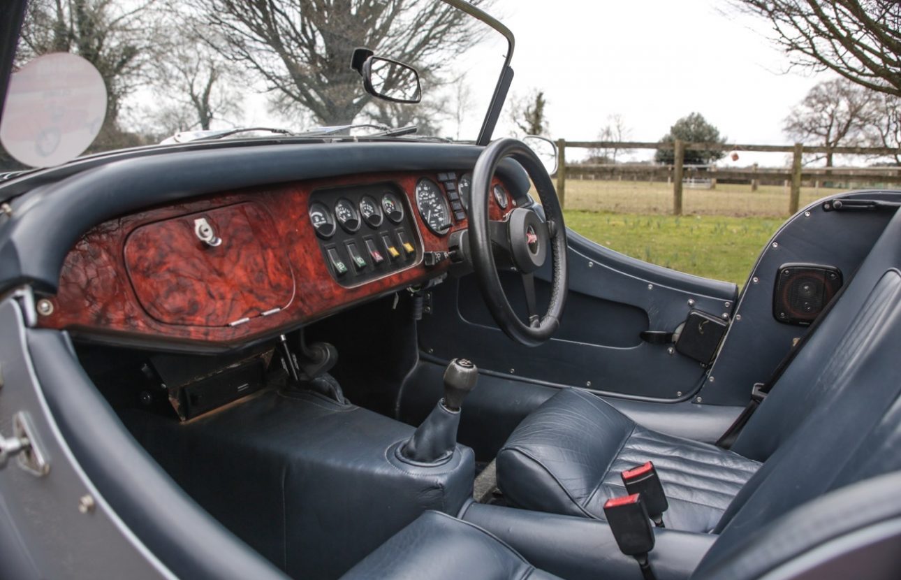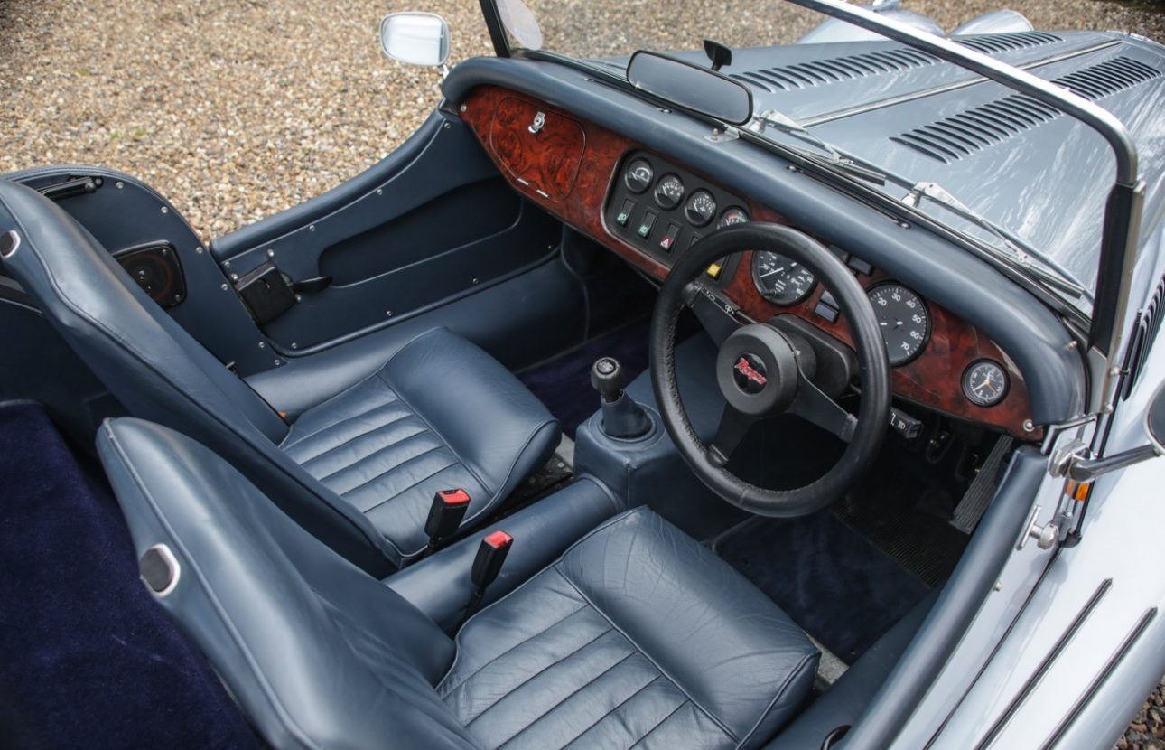 The Morgan Plus 4 offered here for sale by Autostorico is a 1995 “M plate” finished in Serantium Ice Blue Silver metallic with Blue leather interior. This stunning example has covered a mere 4938 miles and boasts a comprehensive service history.