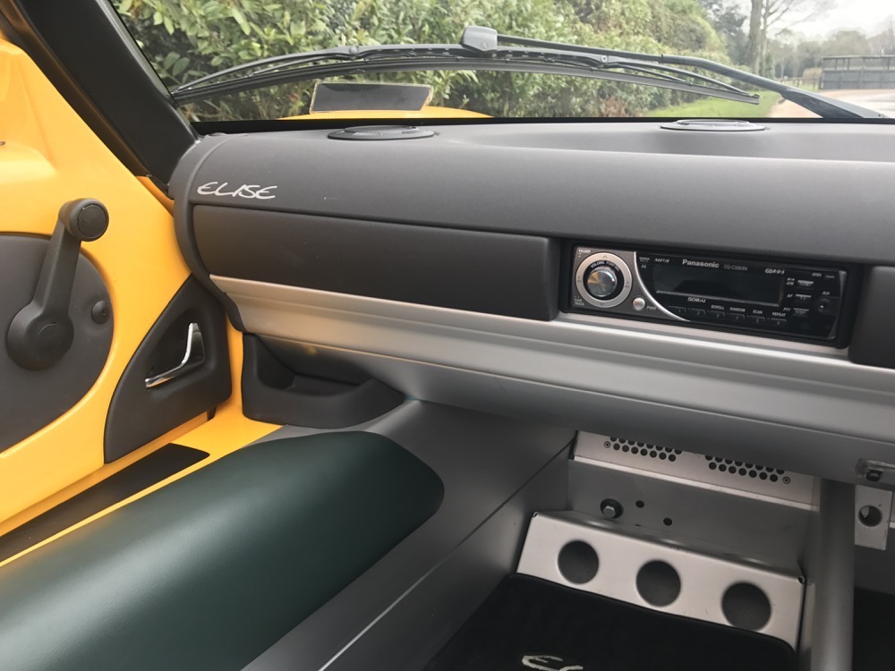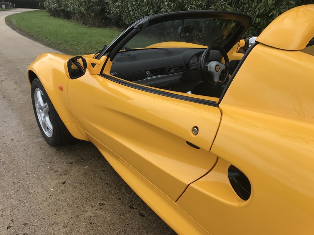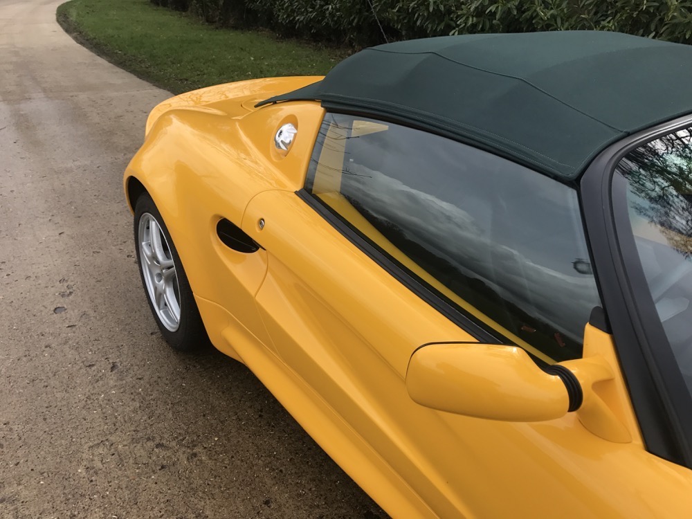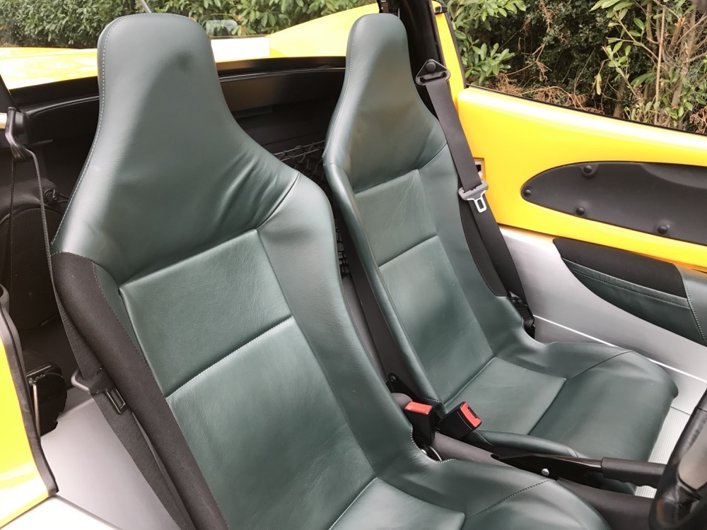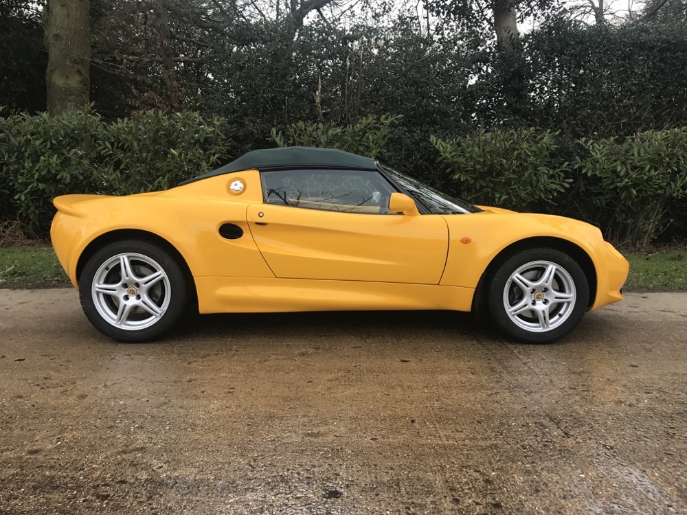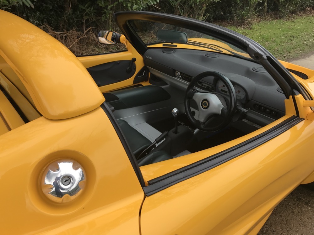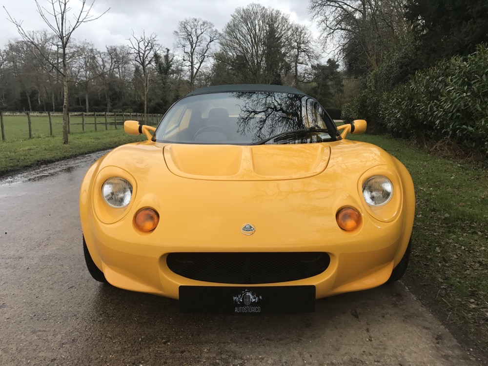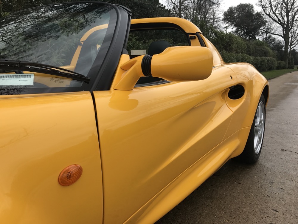 The Lotus Elise S1 offered here at Autostorico is a 1998 “S plate” which is finished in Yellow Mustard metallic with Green leather interior. Having covered a mere 7,713 dry miles this as new, four owner example, was supplied through Haydon Cars Ltd, a Lotus main agent. Over and above the standard specification this truly stunning car benefits from the following factory options; Leather trim, Factory hardtop, Cobra Alarm system, Radio fitting kit and Carpet mats.