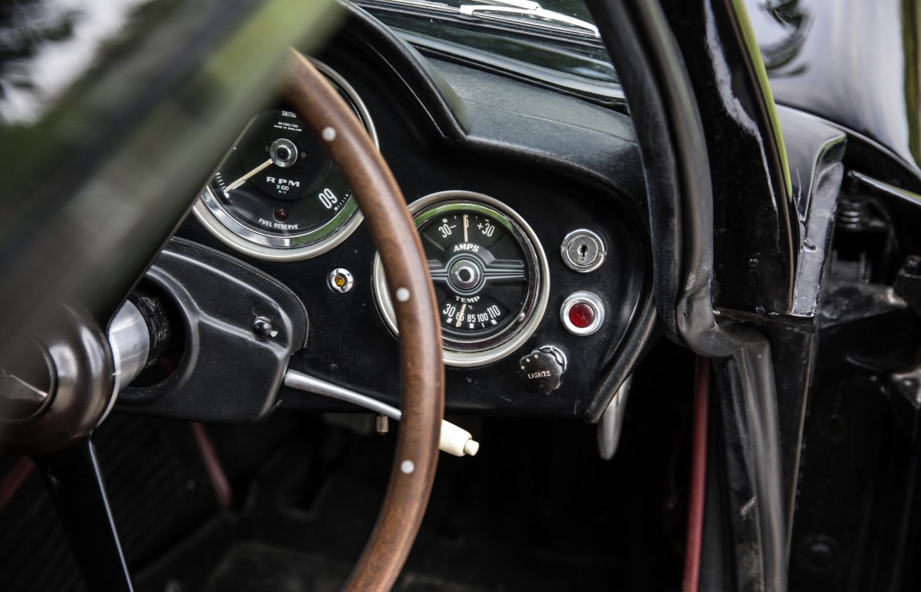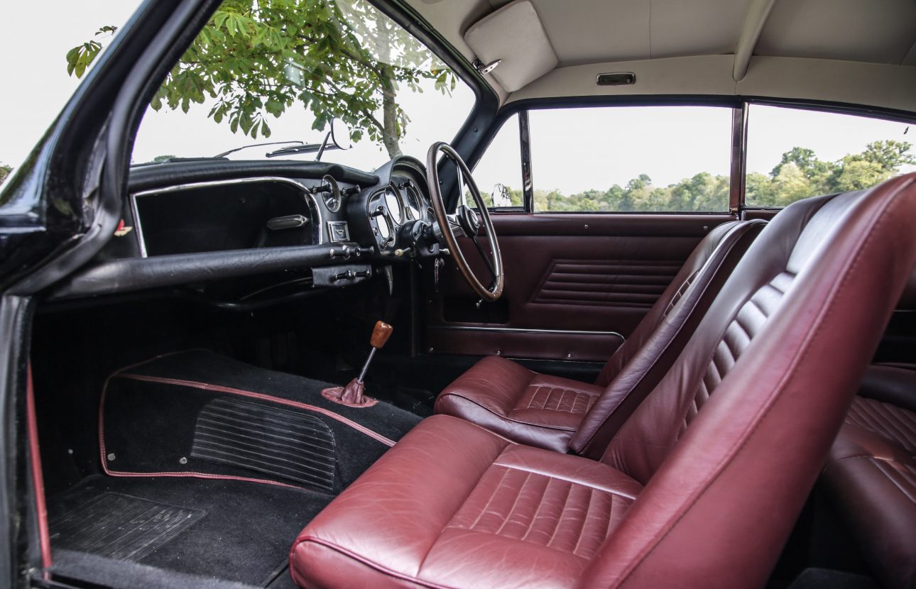 The Aston Martin MKIII Saloon offered here at Autostorico is finished in Black with Burgundy leather interior. This original RHD example was supplied new through Fred Wilmot Sports Cars in South Africa, Chassis No: AM/300/3/1482 was first registered to E Tomson, Tomson’s Sheet Metal Works of Prince Alfred Street, Durban in 1958.