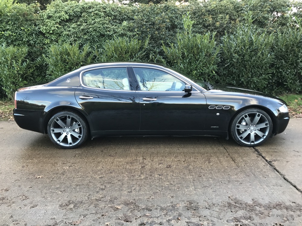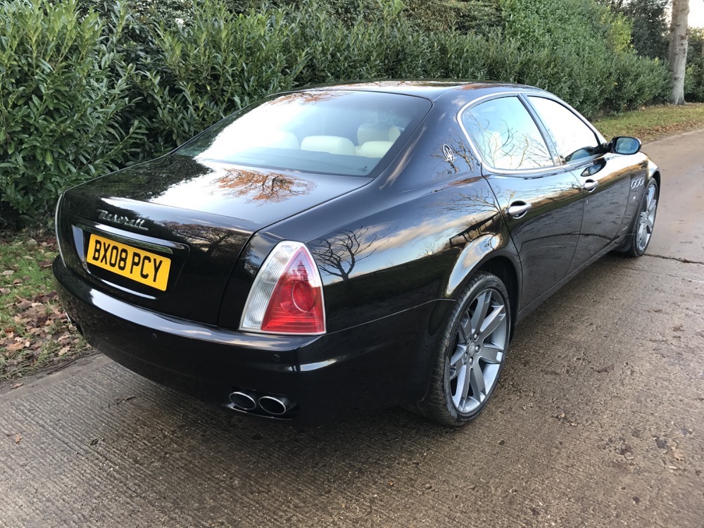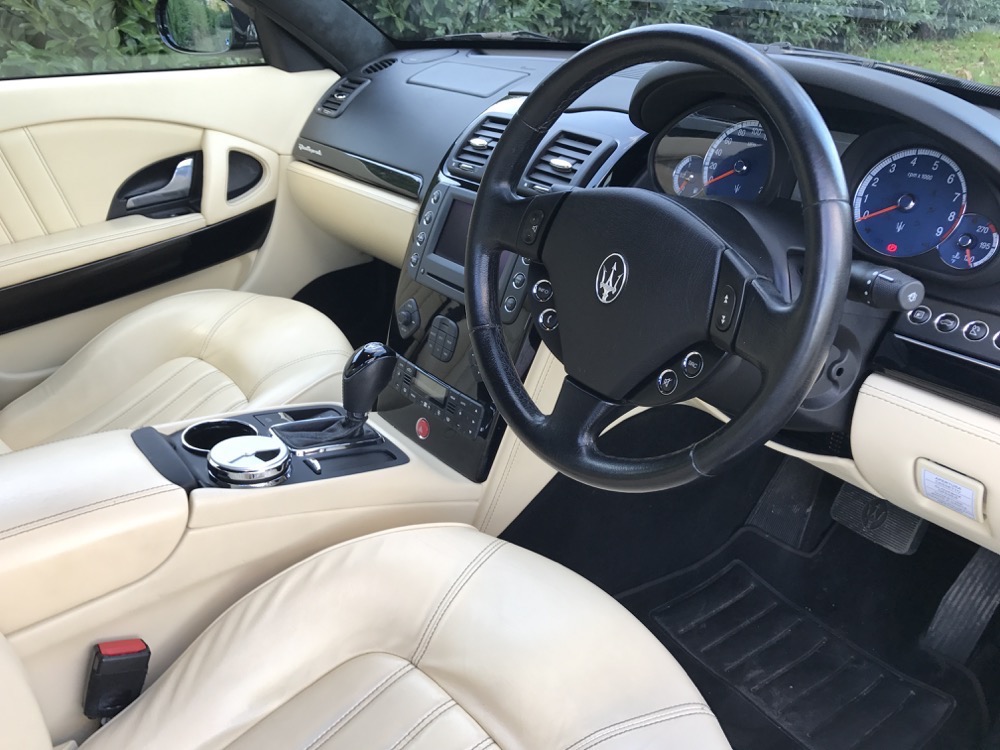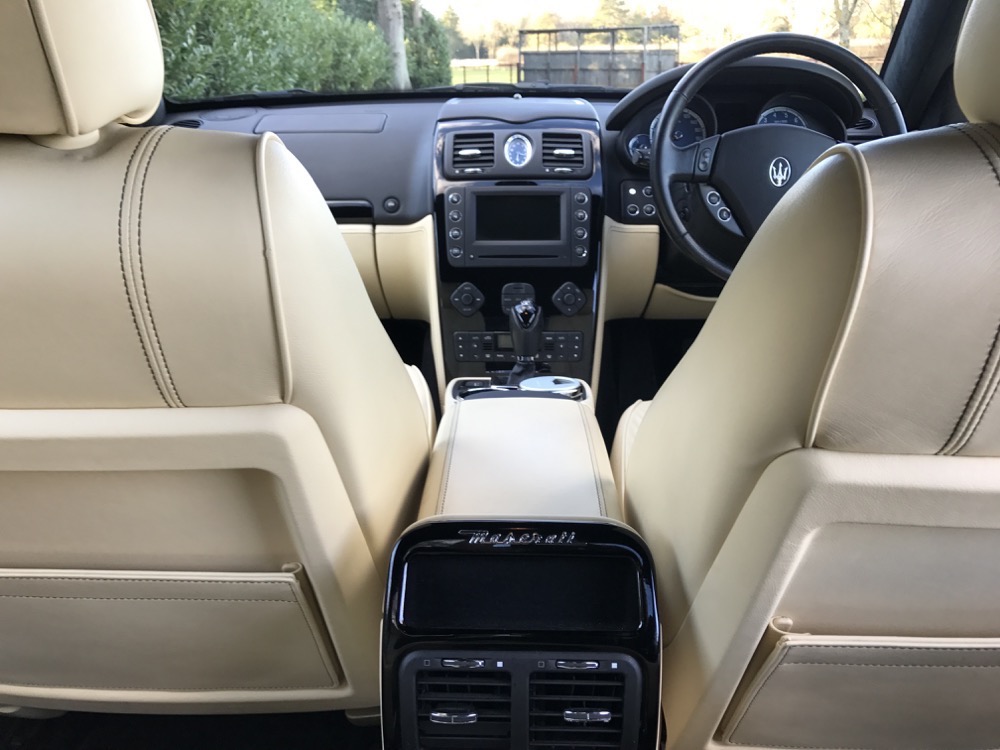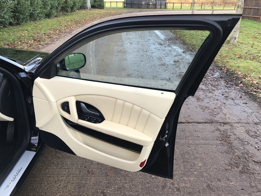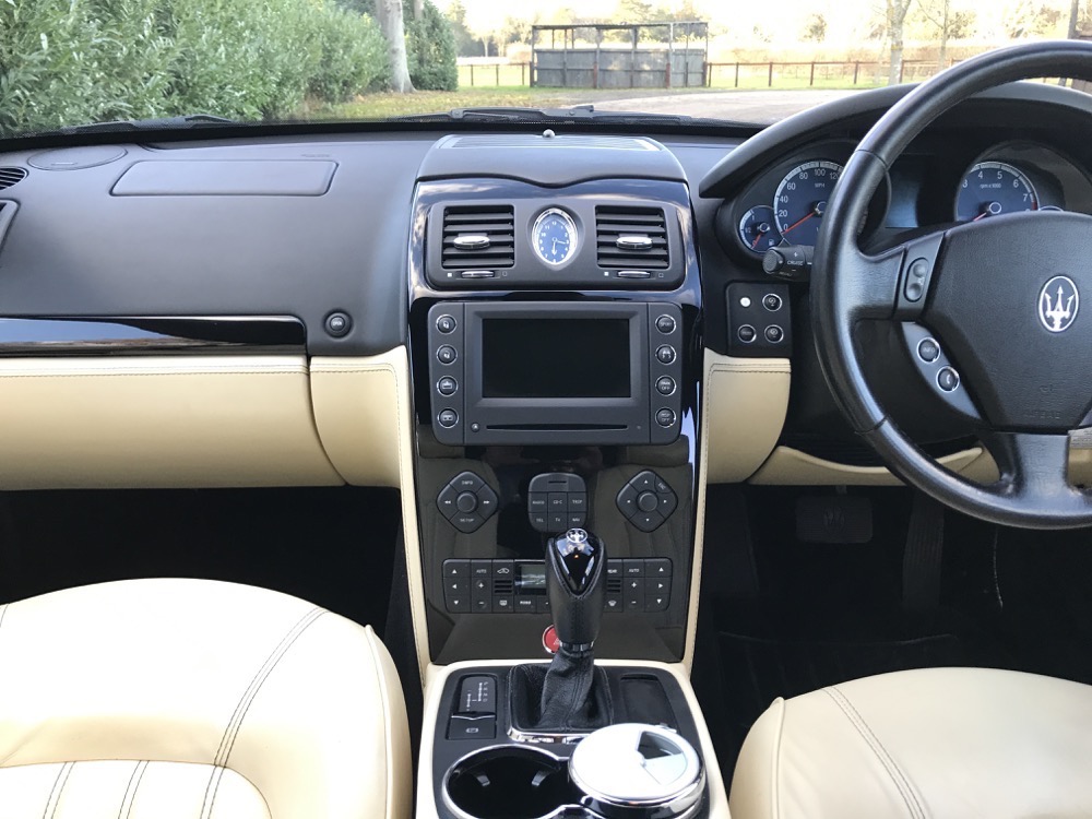 The Maserati Quattroporte offered here at Autostorico is a 2008 “08 plate” and is finished in Nero Carbonio with Avorio cream interior. Having covered 48,826 miles this stunning example was supplied through Stratstone Birmingham and boasts a full main dealer service history most recently carried out at by Lancaster Colchester at 39,217 miles. Specification highlights include; 20” Wheels, Navigation, BOSE sound system, Cruise control, Xenon headlights, CD changer, Piano Black veneer, Nav trak, Skyhook suspension and Parking sensors.