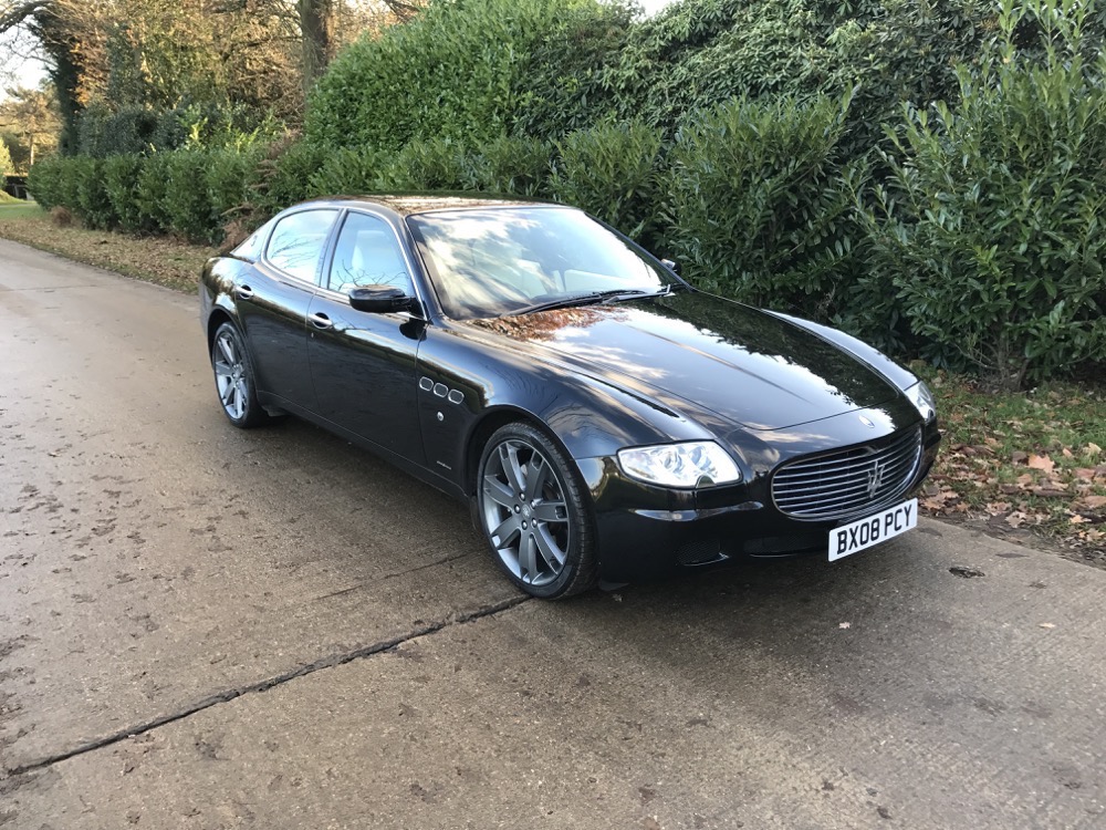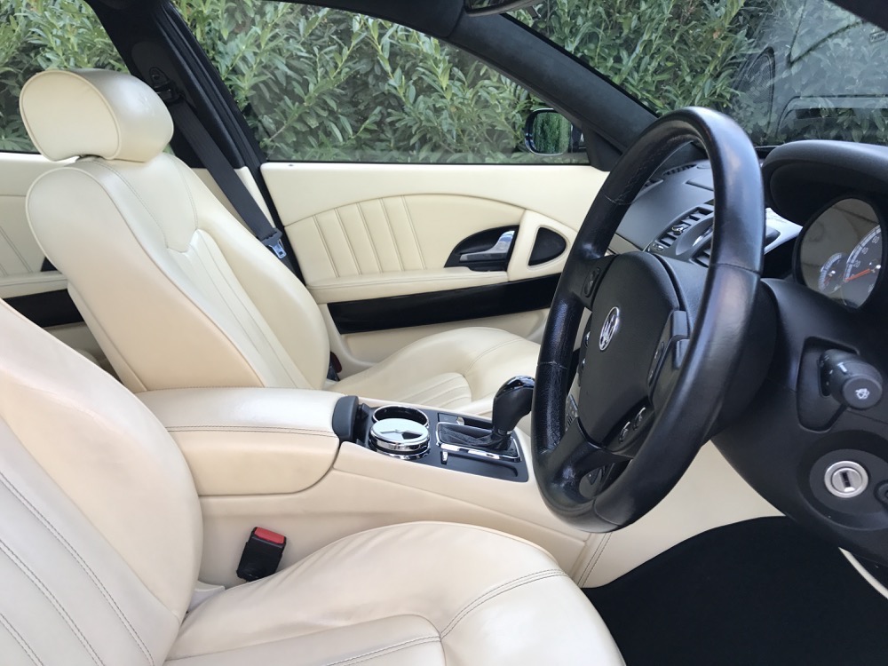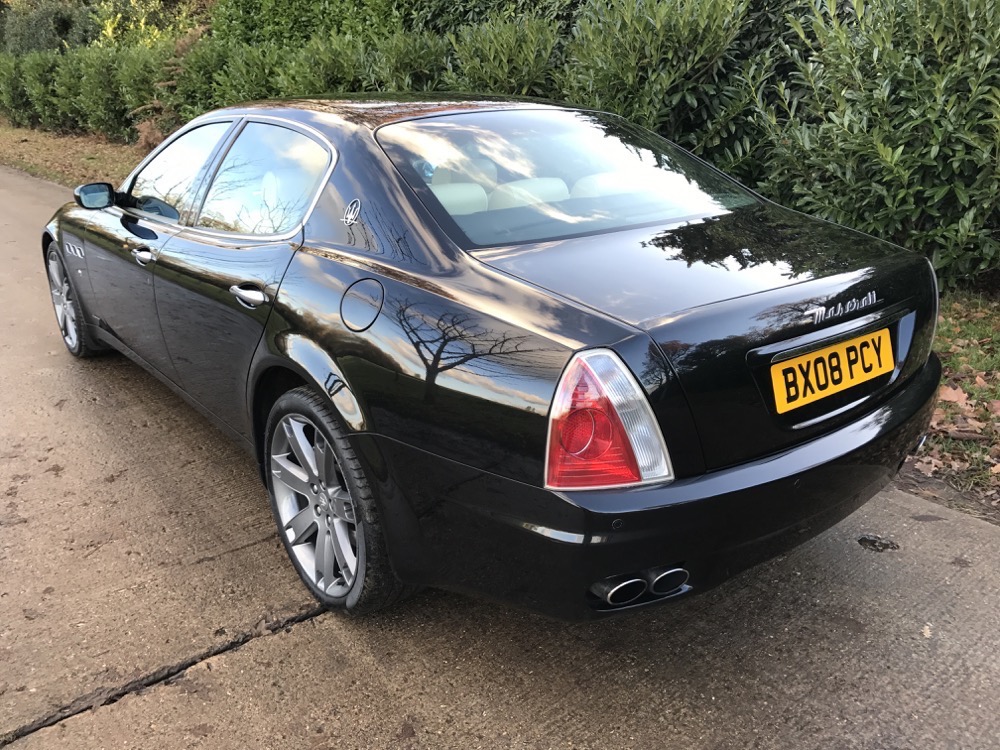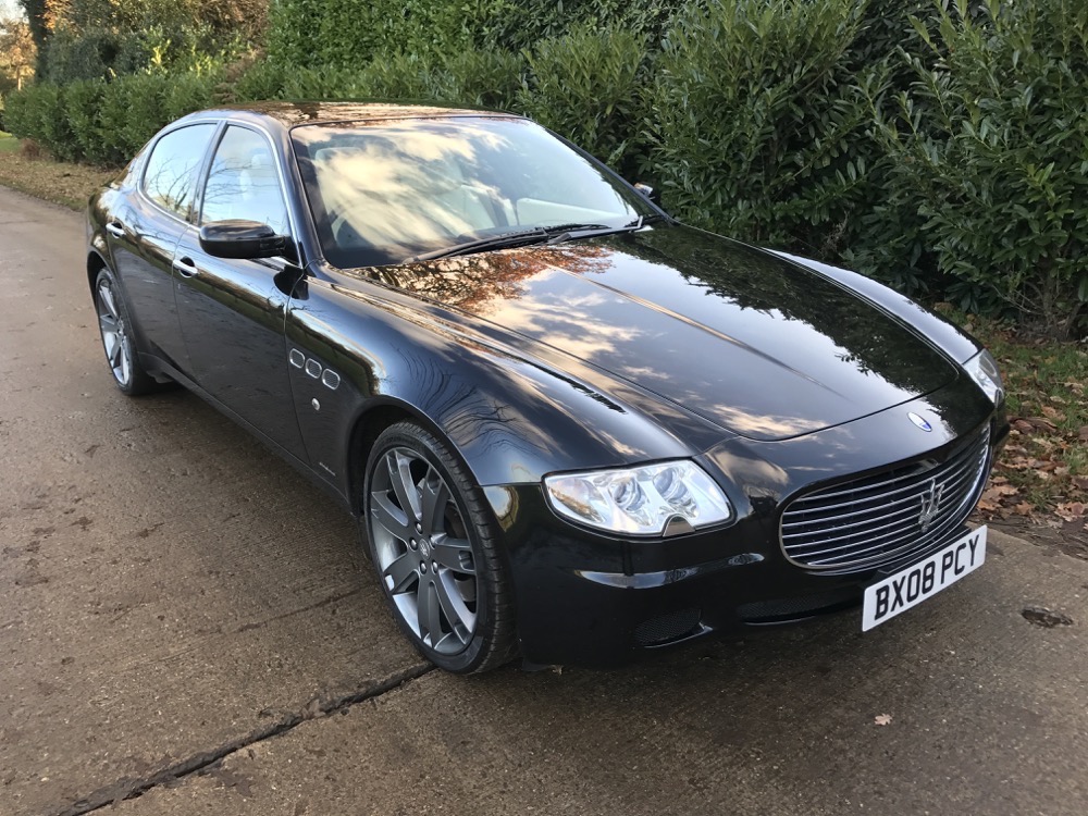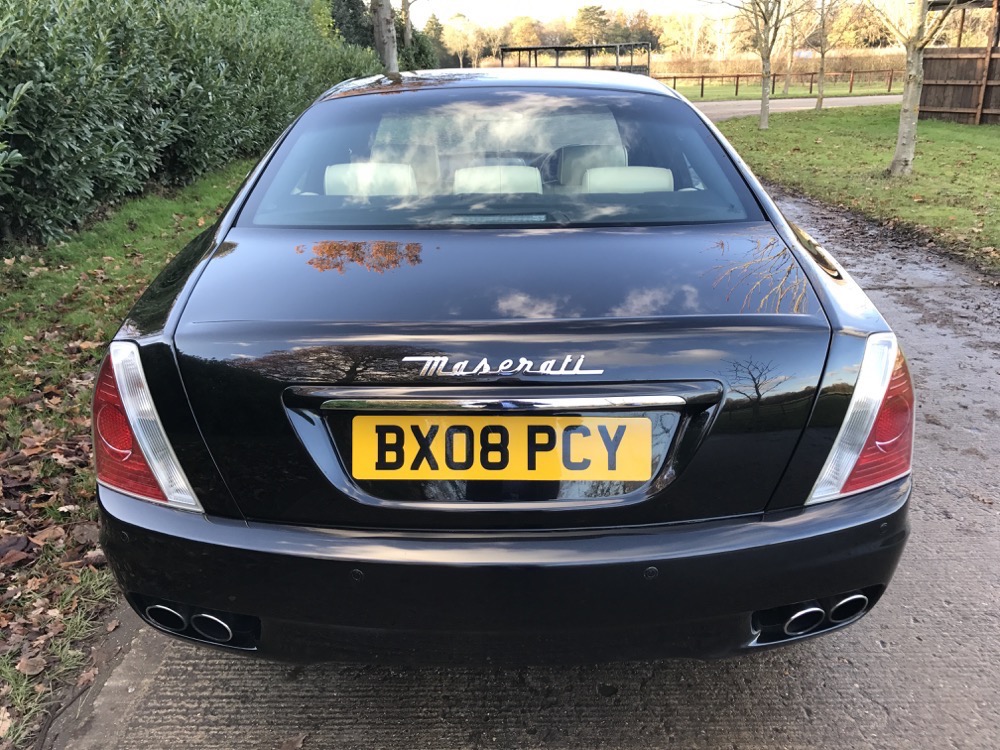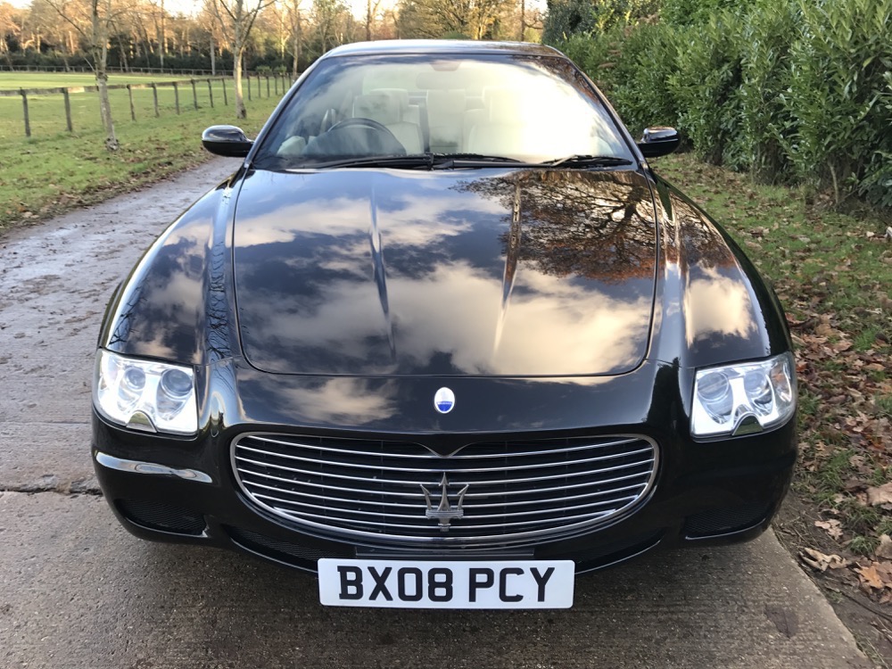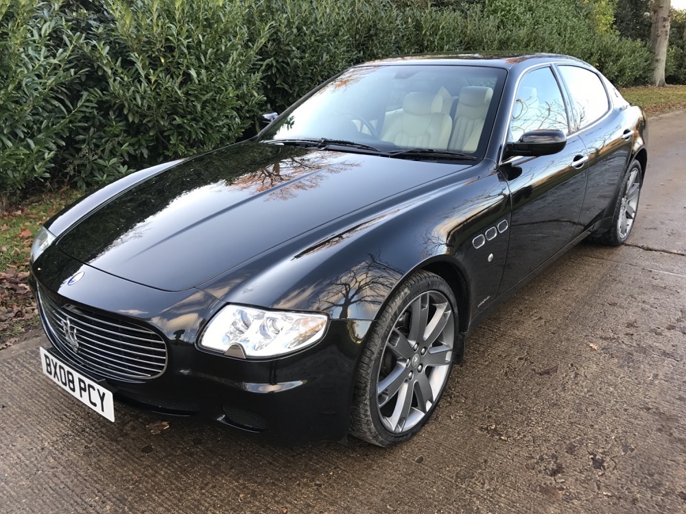 The Maserati Quattroporte offered here at Autostorico is a 2008 “08 plate” and is finished in Nero Carbonio with Avorio cream interior. Having covered 48,826 miles this stunning example was supplied through Stratstone Birmingham and boasts a full main dealer service history most recently carried out at by Lancaster Colchester at 39,217 miles. Specification highlights include; 20” Wheels, Navigation, BOSE sound system, Cruise control, Xenon headlights, CD changer, Piano Black veneer, Nav trak, Skyhook suspension and Parking sensors.