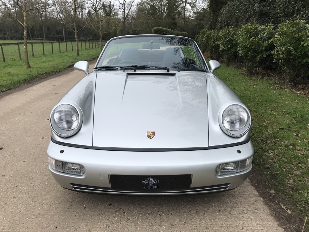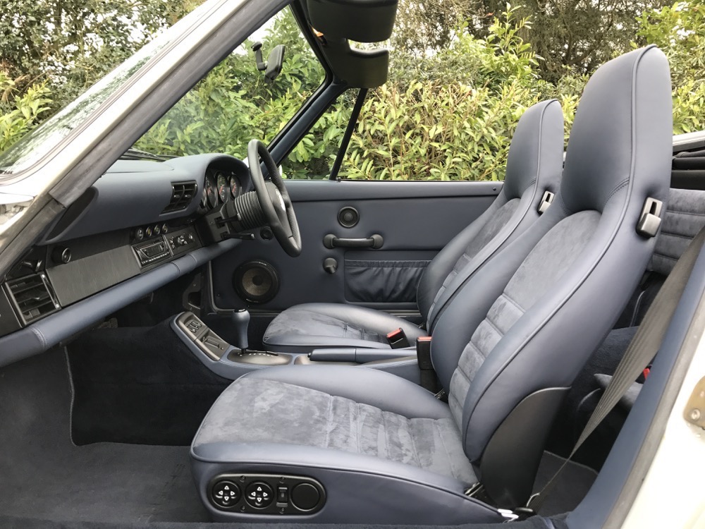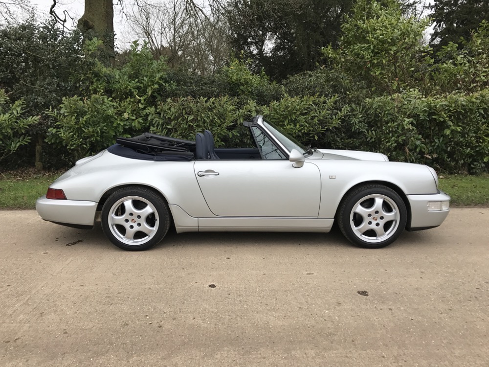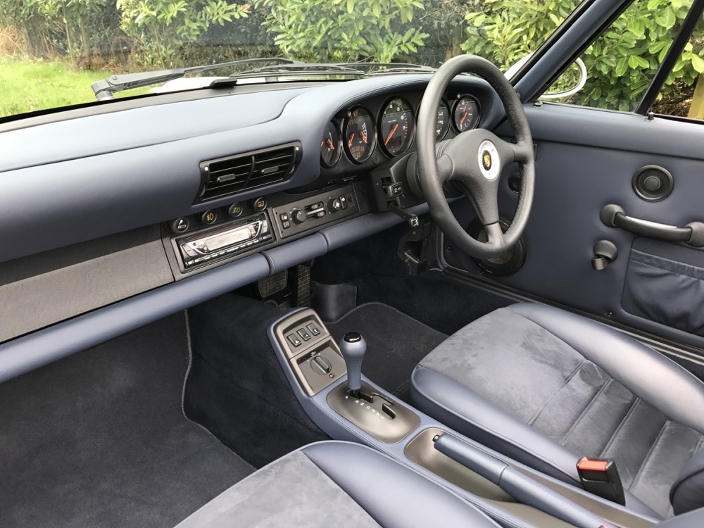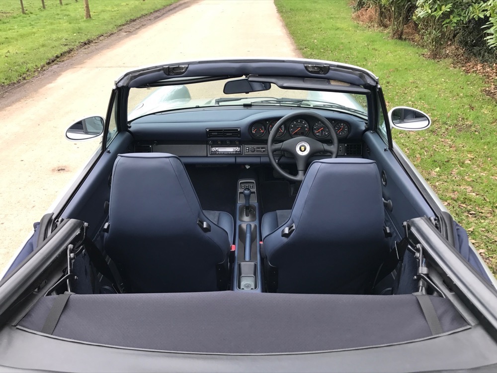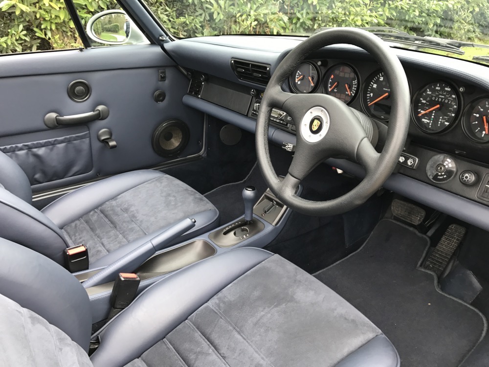 The Porsche 964 Carrera 2 Tiptronic Cabriolet offered here at Autostorico is a 1992 manufactured vehicle which was 1st registered in the UK in 1998. Finished in Silver metallic with Blue interior trim and matching Blue power hood. Having covered 88,174 miles this stunning example started its life in Japan before returning to European shores in 1998. Boasting a comprehensive service history with a mixture of main dealer and Porsche specialist the most recent of which was carried out by Tognola in May 2017. Specification highlights include; Central locking, Power steering, Electric windows, Air conditioning, Electric door mirrors, CD player and Floor mats.