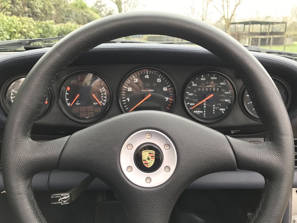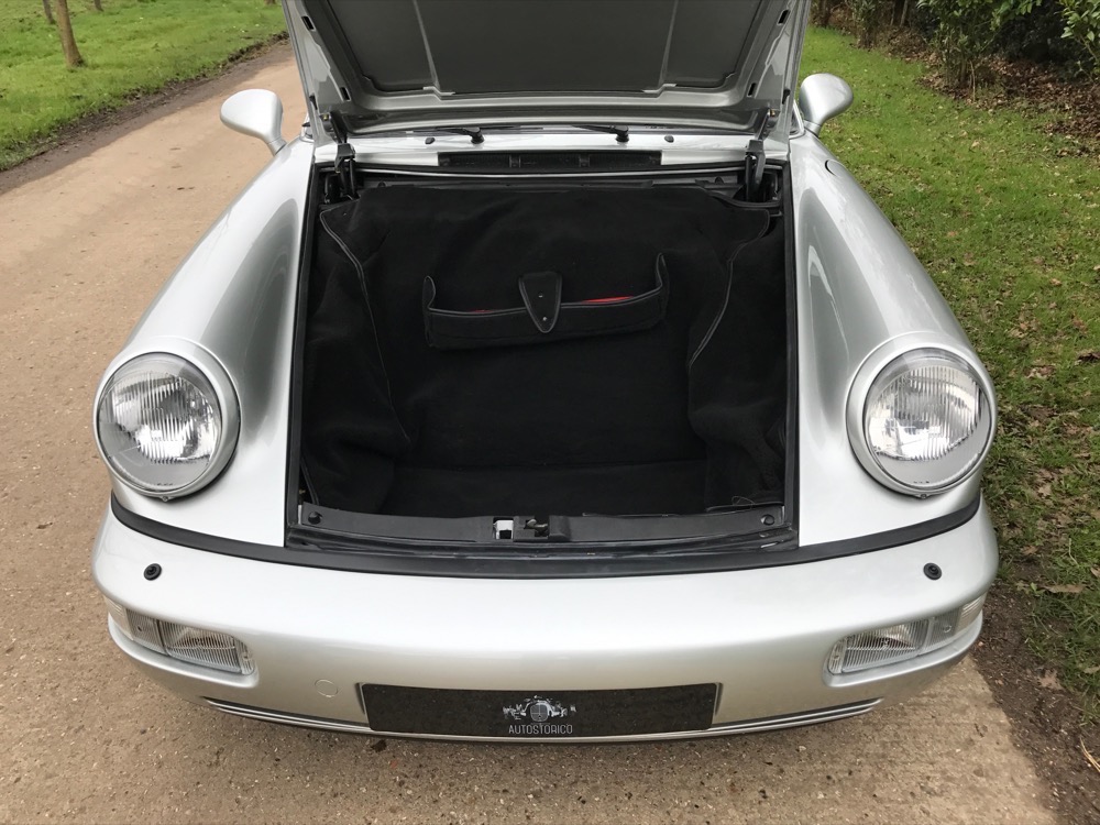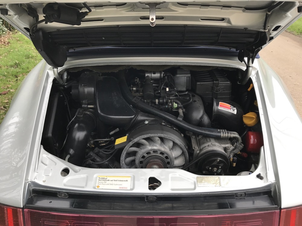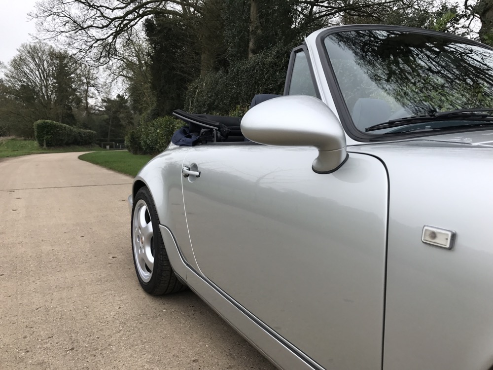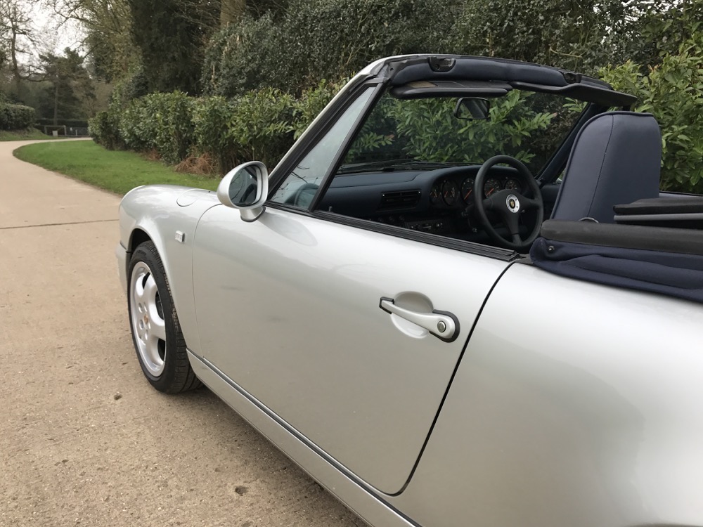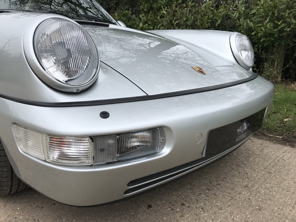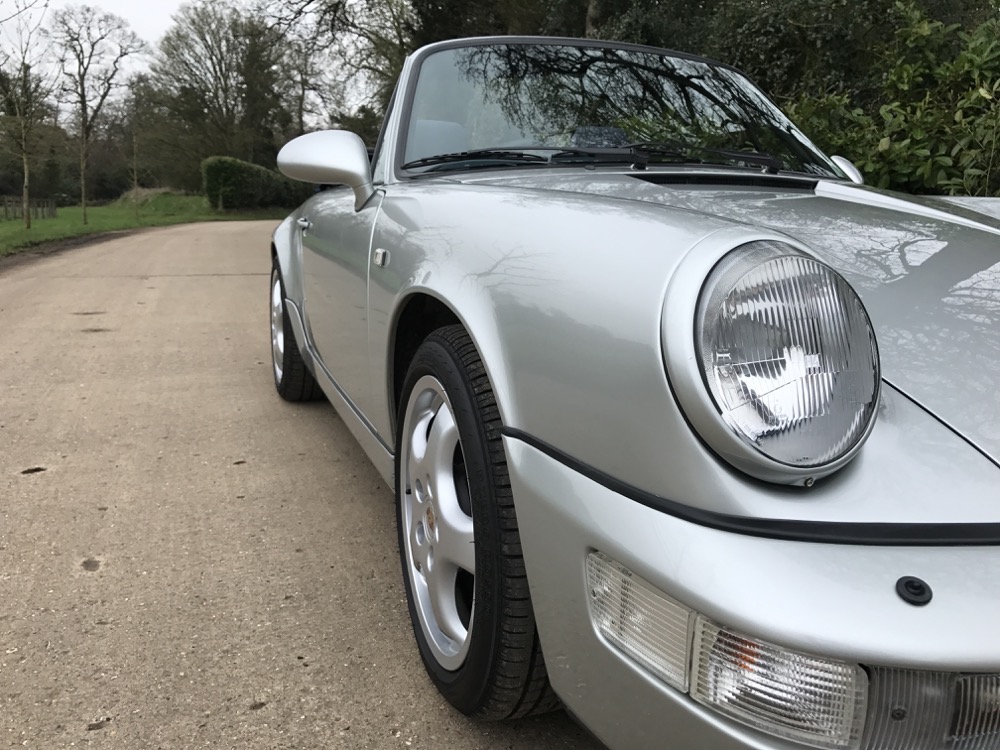 The Porsche 964 debuted in 1989 after undergoing a major evolution. The success of the 964 was extremely important to Porsche as the world economy was undergoing a recession and Porsche understood they could not just rely on image alone to sell the new car. The 964 incorporated many new technologies developed from the iconic 959 model. Whilst still retaining a familiar silhouette of previous generations the 964 boasted a drag coefficient of just 0.32 Cd thanks to its deeper bumpers, sills and flatter floorplan. High speed stability is maintained by a self-deploying rear spoiler which rises above 48 mph, yet still preserving the purity of line whilst stationary. The 964 was powered by an extensively reworked 3.6 litre, air cooled, flat six-cylinder engine producing 247 bhp. This impressive engine is capable of propelling the 964 from 0-60 mph in just 6.2 sec and onto a top speed of 159 mph. Other significant revisions included; Power steering, ABS braking system, Coil springs and shock absorbers.