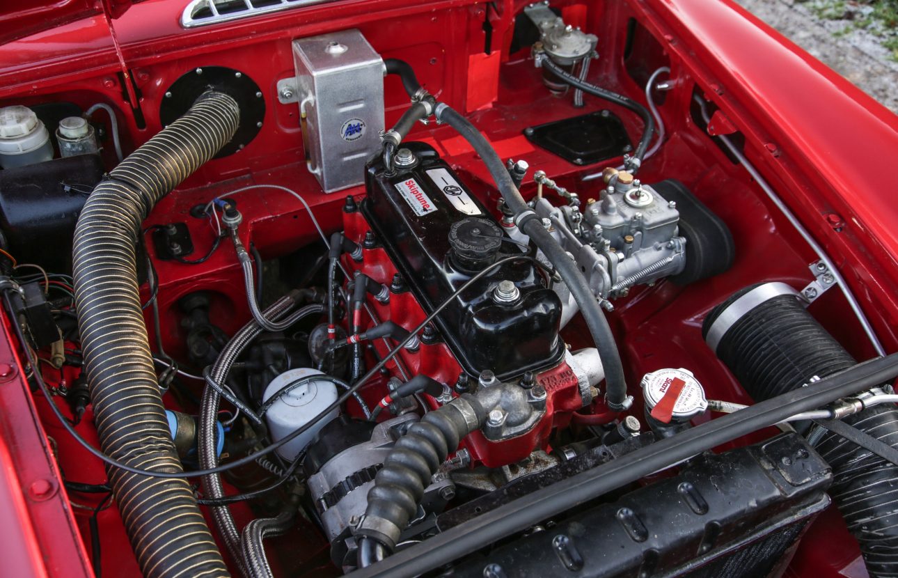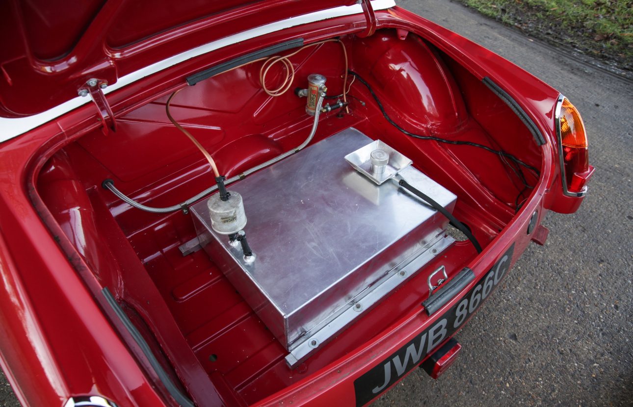 The MGB ‘FIA Appendix K’ Race Car offered here at Autostorico is a 1965 registered car, finished in MG Tartan Red with contrasting White roof and Black interior trim. Purchased by its current owner a well-respected classic car engineer and historic racer, this fresh built ex. Clubsport race car has undergone a no expense spared nut and bolt restoration. Work started with a heritage shell with the early narrow tunnel, with attention then passing to its mechanical restoration. The engine being entrusted to marque experts Skiptune in Surrey, who fully re-built with Omega + 60 pistons and race cam, which when fitted with its 45 DCOE Webber Carburettor produces circa 120bhp. Other notable works included overhauling the suspension system, rear axle, brakes and gearbox including fitting a new AP clutch. An LCB exhaust is fitted along with an FIA approved foam filled alloy fuel tank, FIA roll cage and battery isolator. New wheels and tyres along with Harnesses (in date) and fire extinguisher complete this stunning car.