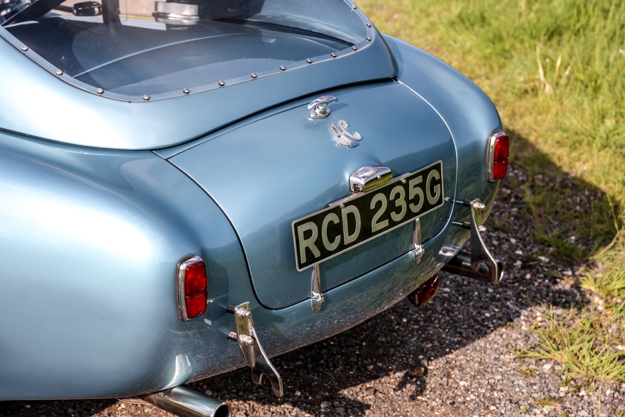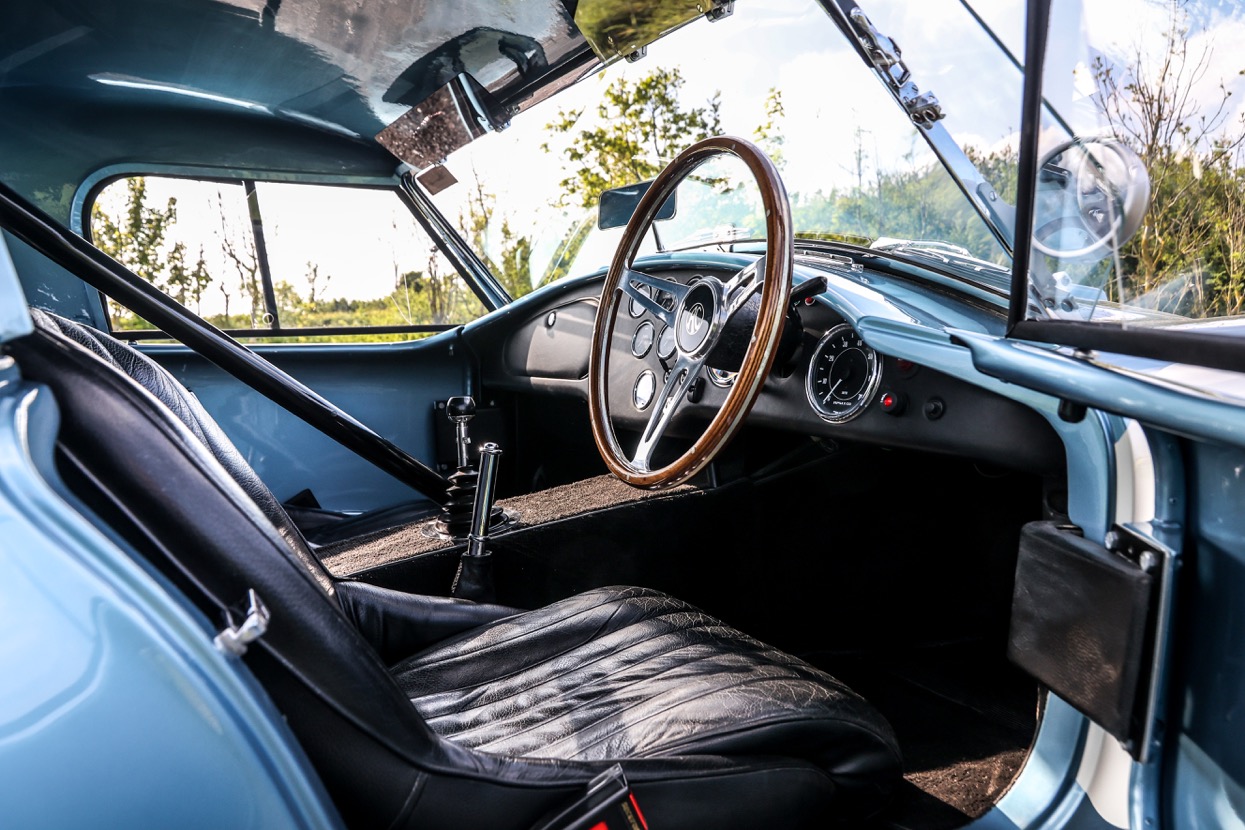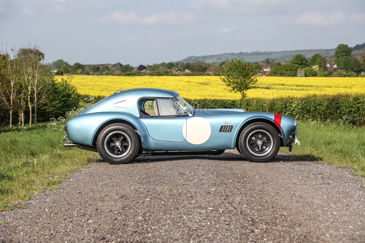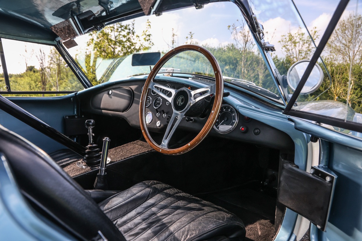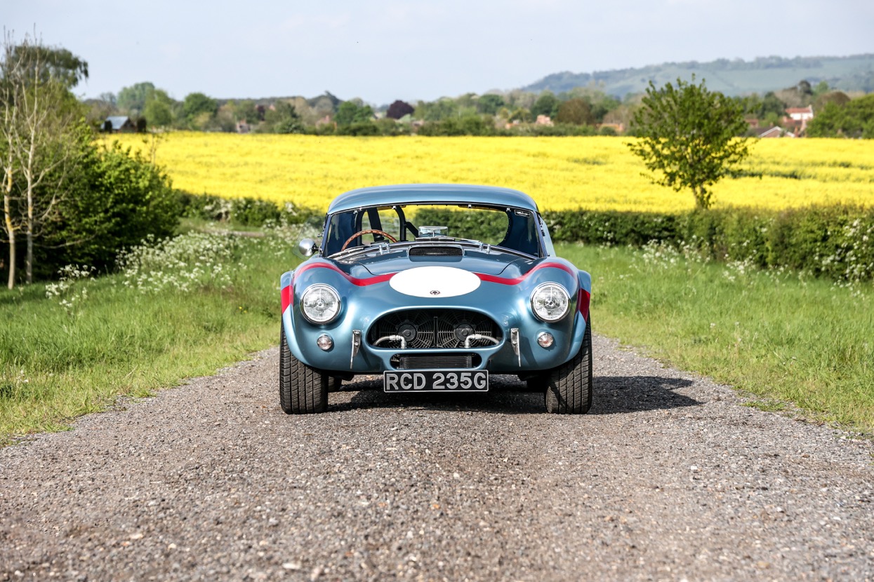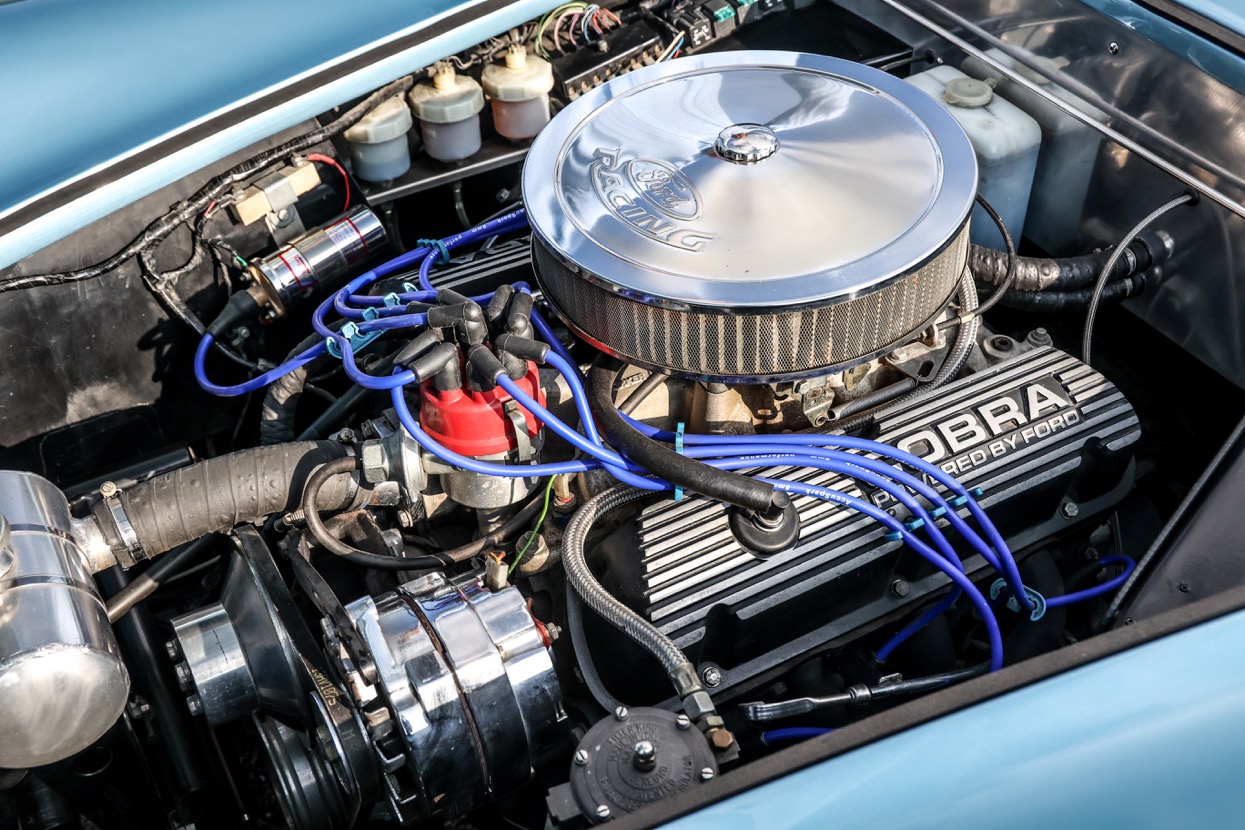 The AC Cobra 289 FIA Evocation by Hawk offered at Autostorico is a 2003 Registered example. This outstanding example is powered by a Ford 5.0 Litre V8 with an Edelbrook carburettor, E Type rear axle and Pan air filter. Finished in period Viking Blue Blue with a Red stripe and Black leather interior trim. Specification highlights include removable hard top, side screens, Aluminium wing mirrors 15” Halibrand wheels with knock off spinners, Five speed gearbox and immobiliser. The interior is complemented by period Smiths dials, waist harnesses and period fire extinguisher.