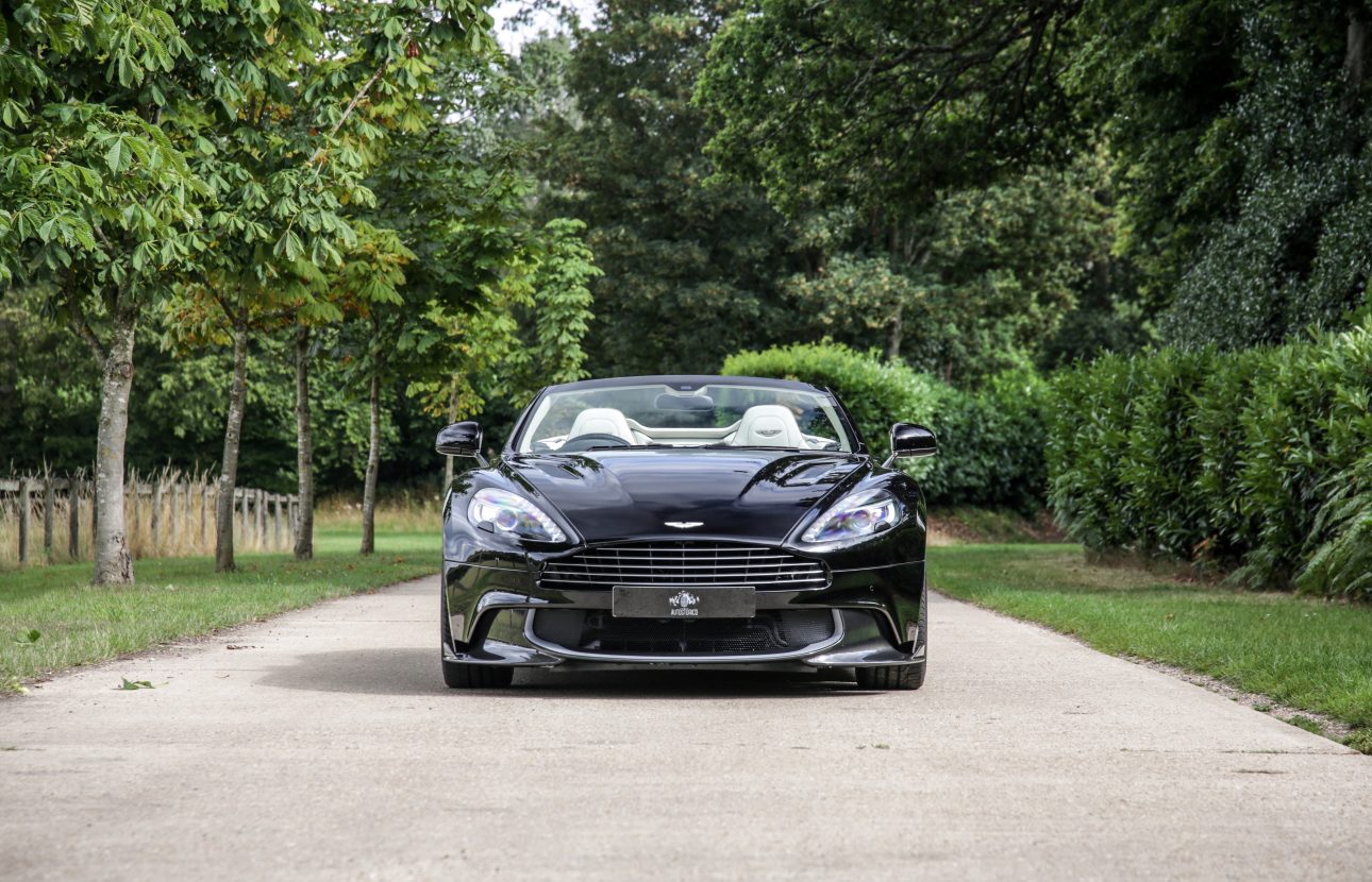 The Aston Martin Vanquish S Volante offered here at Autostorico is a 2017 “67 plate” and is finished in Onyx Black metallic with Ivory leather interior. Having covered a mere 2,174 miles this stunning one owner example was supplied new by Aston Martin Works Newport Pagnell and boasts a full service history most recently carried out at 1551 miles in December 2018 by Aston Martin Works. Over and above the standard specification our car benefits from options; Alarm upgrade, Contrast stitching, Vanquish S rear badge, Headrest embroidery with Aston Martin wings, Aluminium fuel filler cap, Graphic paint package Vanquish S, Black hood mesh, Piano Black interior trim package, Second glass key, Auto dimming rear view mirror, Shadow Bronze jewellery pack, Black One-77 steering wheel, Contemporary pack, Umbrella, Wind deflector, 20” Gloss Black diamond turned wheel and Tracker.