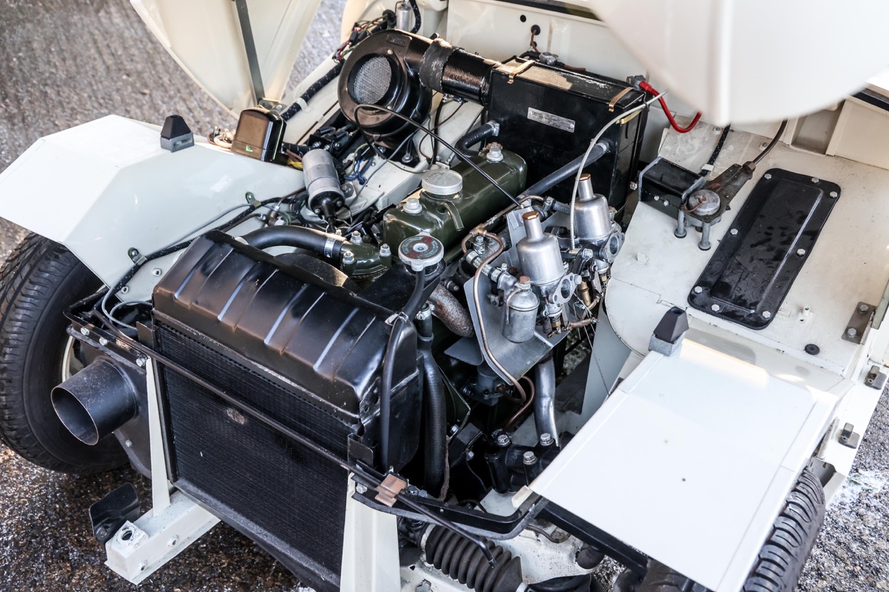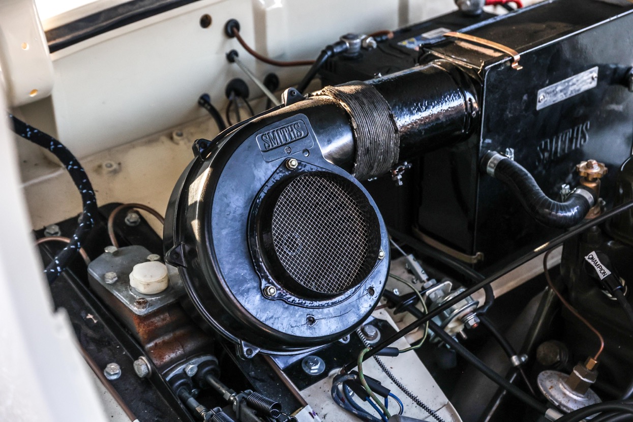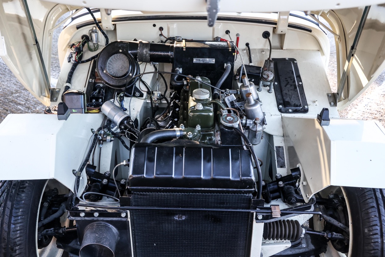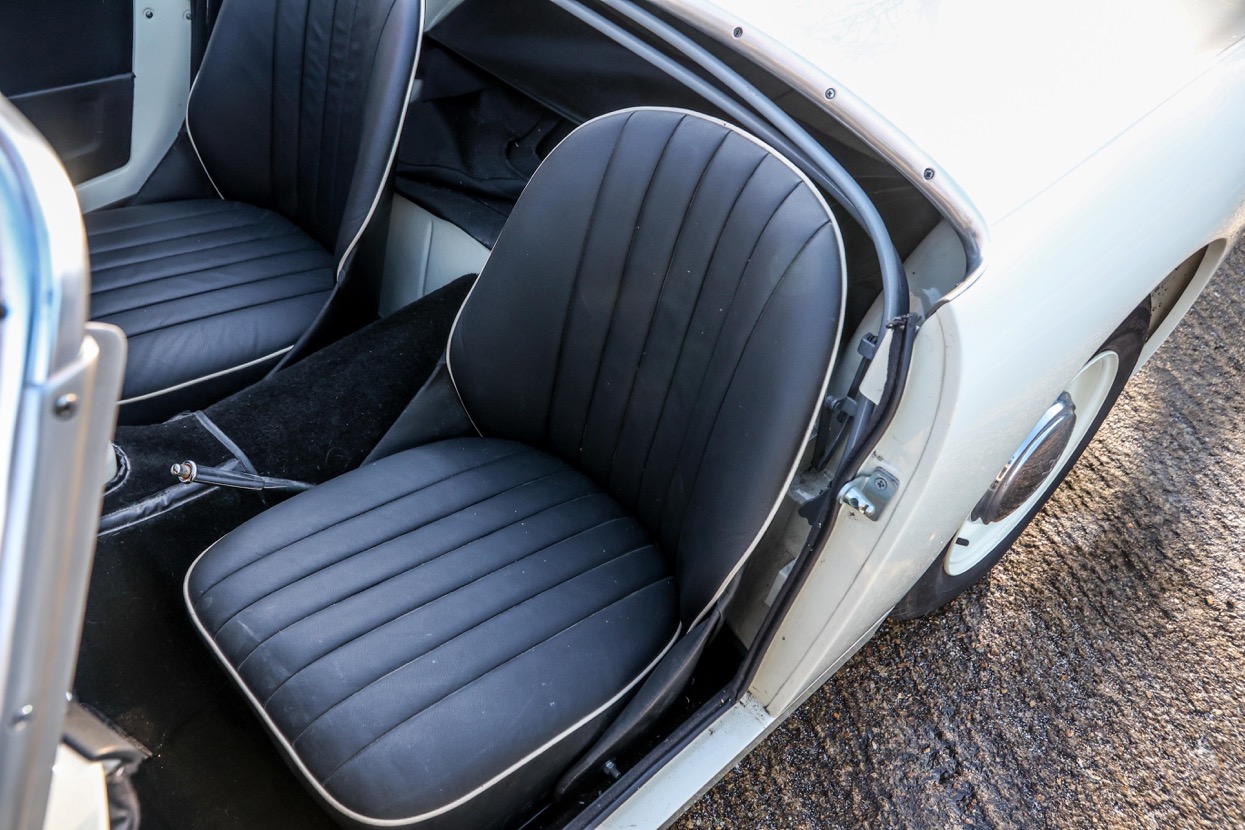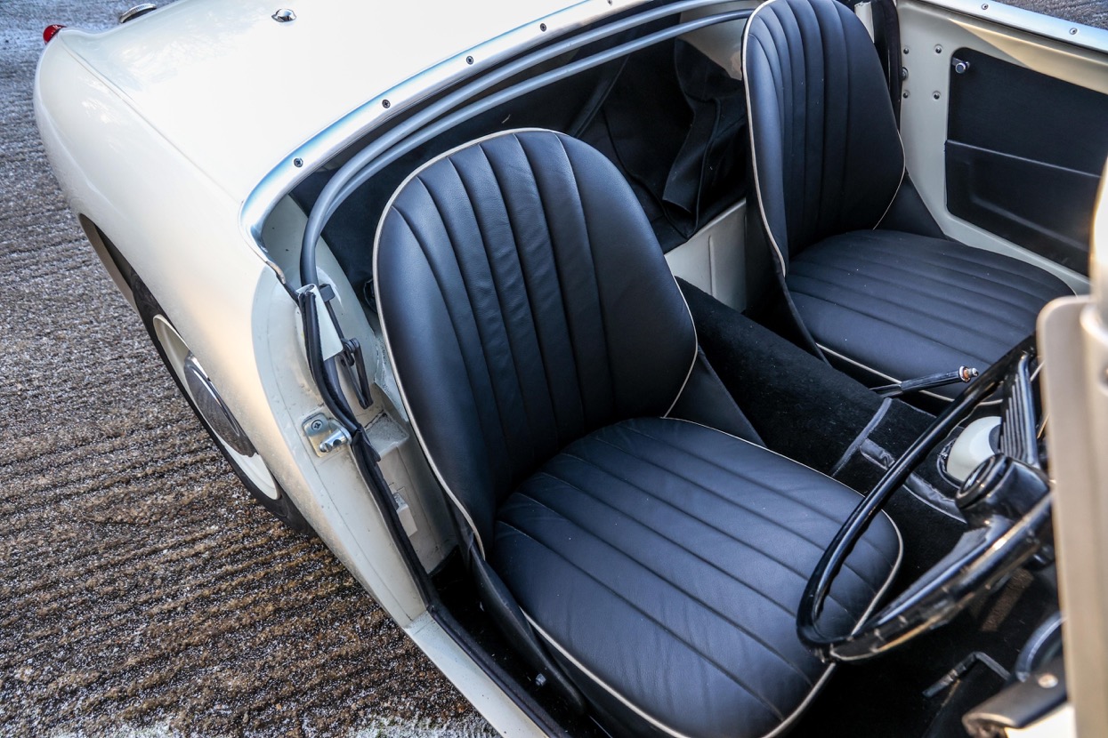 The Austin Healey Sprite MK1 offered here at Autostorico is a home market registered example built in December 1959 and supplied new through H.H Timberlake Ltd of Wigan to its first owner. Finished in Old English White with Black interior trim this as new example was specified with the following factory options, Tonneau cover, Toughened glass and bumpers. Purchased by its current owner an avid Austin Healey enthusiast, who undertook a no expense spared full nut and bolt restoration carried out by Haileywood Specialist Cars. Works included removing the engine, gearbox and stripping the whole body, before a bare metal respray. The car was also subject to a full mechanical overhaul including engine rebuild to the highest specification with it balanced to 0.1 of gram across the 4 cylinders. Original smooth case gearbox rebuilt with later 1275 Sprite internals. Differential, suspension and braking system overhaul. Other notable works included re-chroming, new interior trim including carpets, new mohair hood and re-wiring.