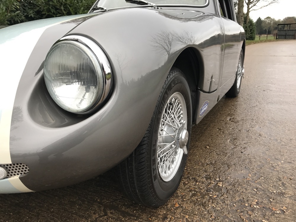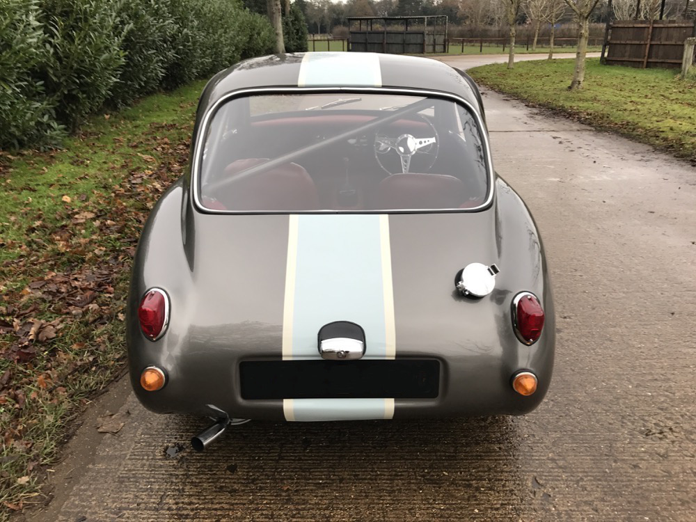 The Austin Sebring Sprite Evocation offered here at Autostorico is a 1965 registered Sebring, finished in Jaguar Opalescent Gunmetal Grey with Bordeaux Red leather interior. This exceptional car was professionally built in 2011 from a 1965 MG Midget by Severn Classics for a client who spared no expense on a nut and bolt rebuild. The works began by shot blasting the car back to bare metal including chassis. All serviceable panels were used with new B posts and floor fitted. An FIA approved roll cage was fitted prior to the John Sprinzel endorsed “Archers Garage” Sebring body conversion. Attention then turned to the mechanical components with the 1275cc BMC engine being fully rebuilt to original factory specification including unleaded conversion. The gearbox and rear differential have been fully rebuilt by Universal Transmissions. Other significant work included; Full suspension rebuild including new bushes and bearings, Complete braking system overhaul, New cloth covered wiring loom, Full interior re-trim including period seats, carpets and dashboard top. The project was finished off with the addition of powder coated wire wheels, side screens, Moto-Lita steering wheel and race harness. This remarkable vehicle, with its sporty feel, will give the new owner many hours of fun both on the road and track.