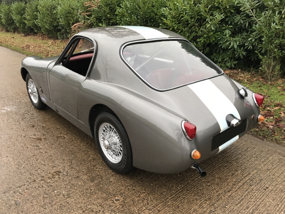 The Austin Sebring Sprite was introduced to the public at the London Racing Car Show in January 1961. Only six cars were produced, two of which travelled to the United States to be raced at Sebring in the hands of Stirling Moss and his sister Pat, Britain’s most successful female rally driver. The Sprite was continually developed over the next few years culminating in the most iconic and successful of these, the John Sprinzels designed cars.