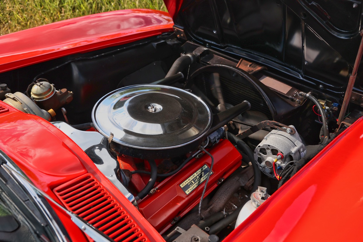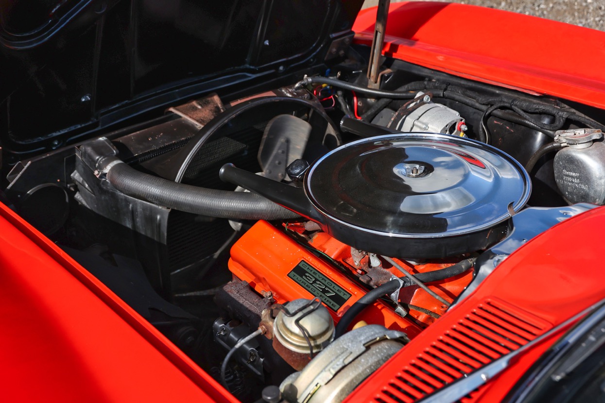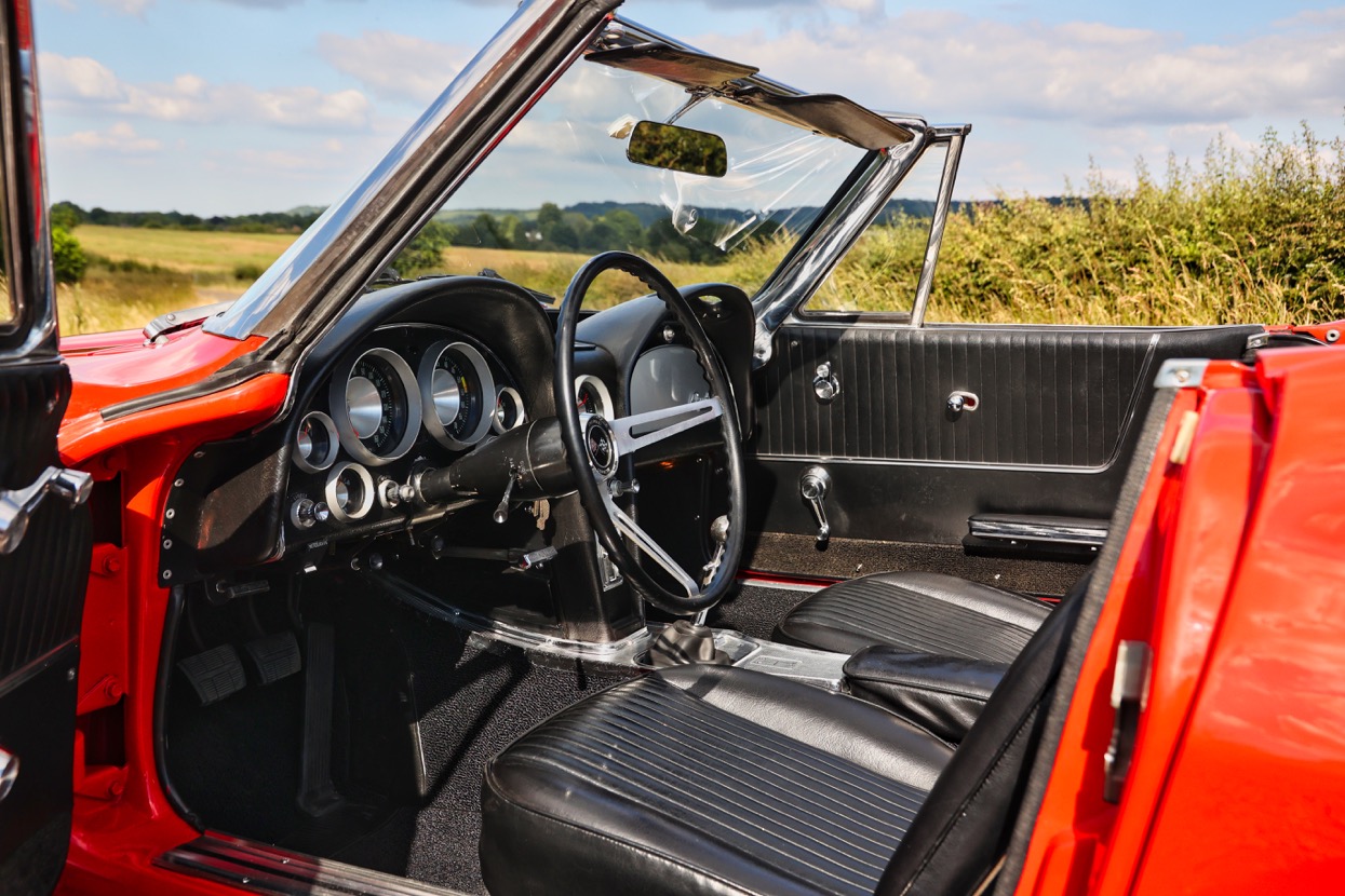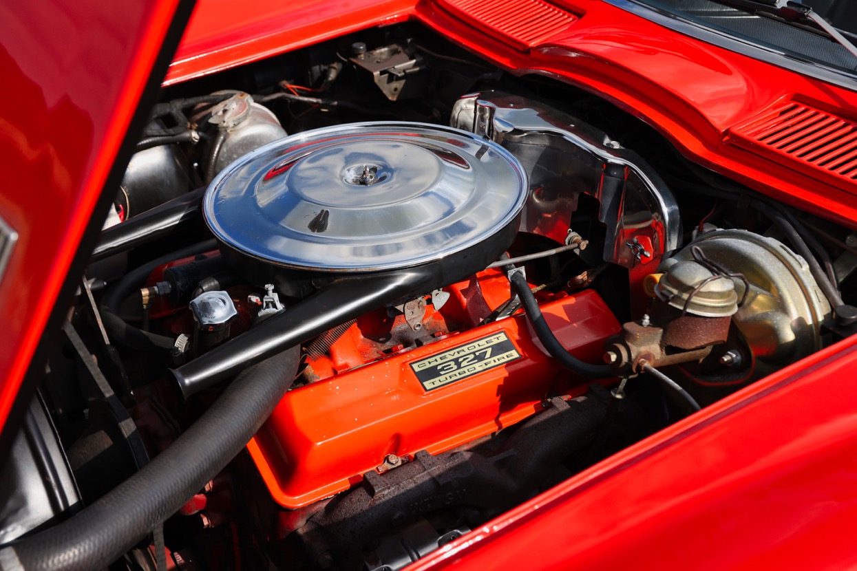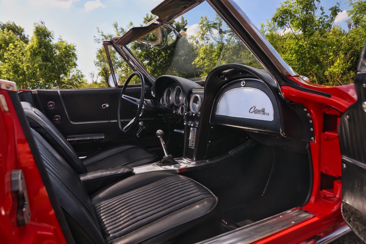 The Chevrolet Corvette C2 Convertible offered for sale at Autostorcio is a 1963 example – chassis number 308675115069. She is finished in Red with a Black hood and Black leather interior. This stunning example was purchased by its current owner in 2010 and brought into the United Kingdom in 2016. Having been exceptionally well maintained with recent works including an engine bay detail along with new carpets carried out by GP Customs. Equipped with Manual four speed transmission, Heater and Rare factory hardtop.