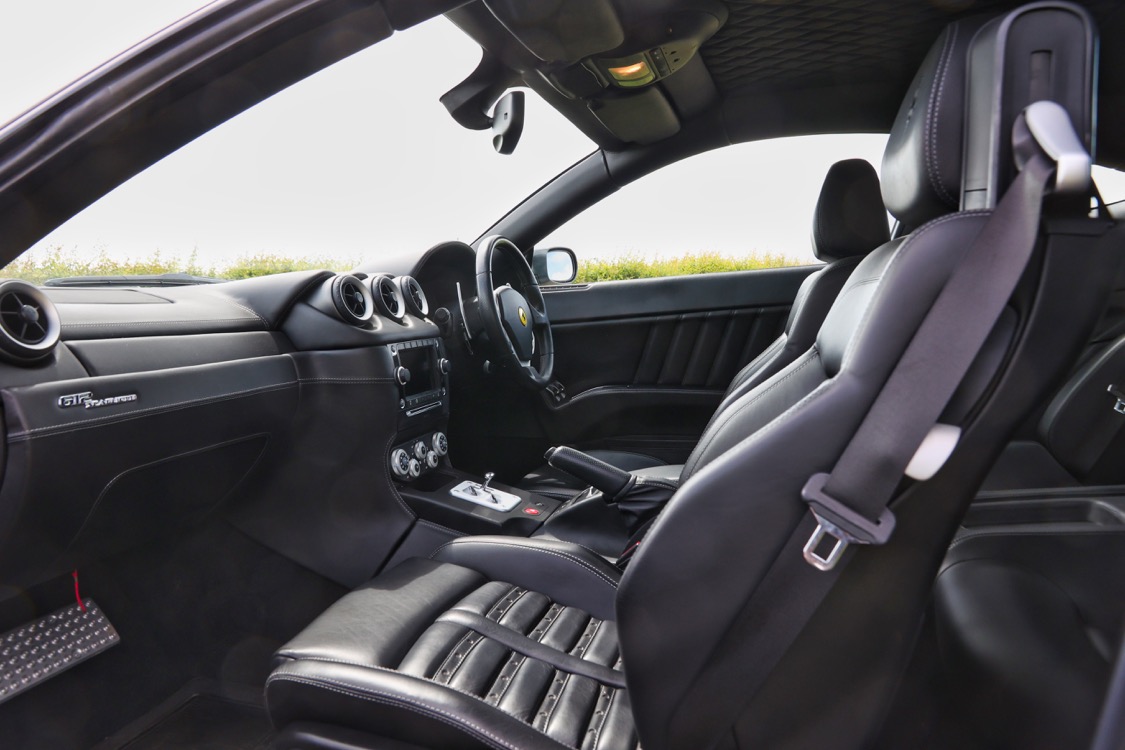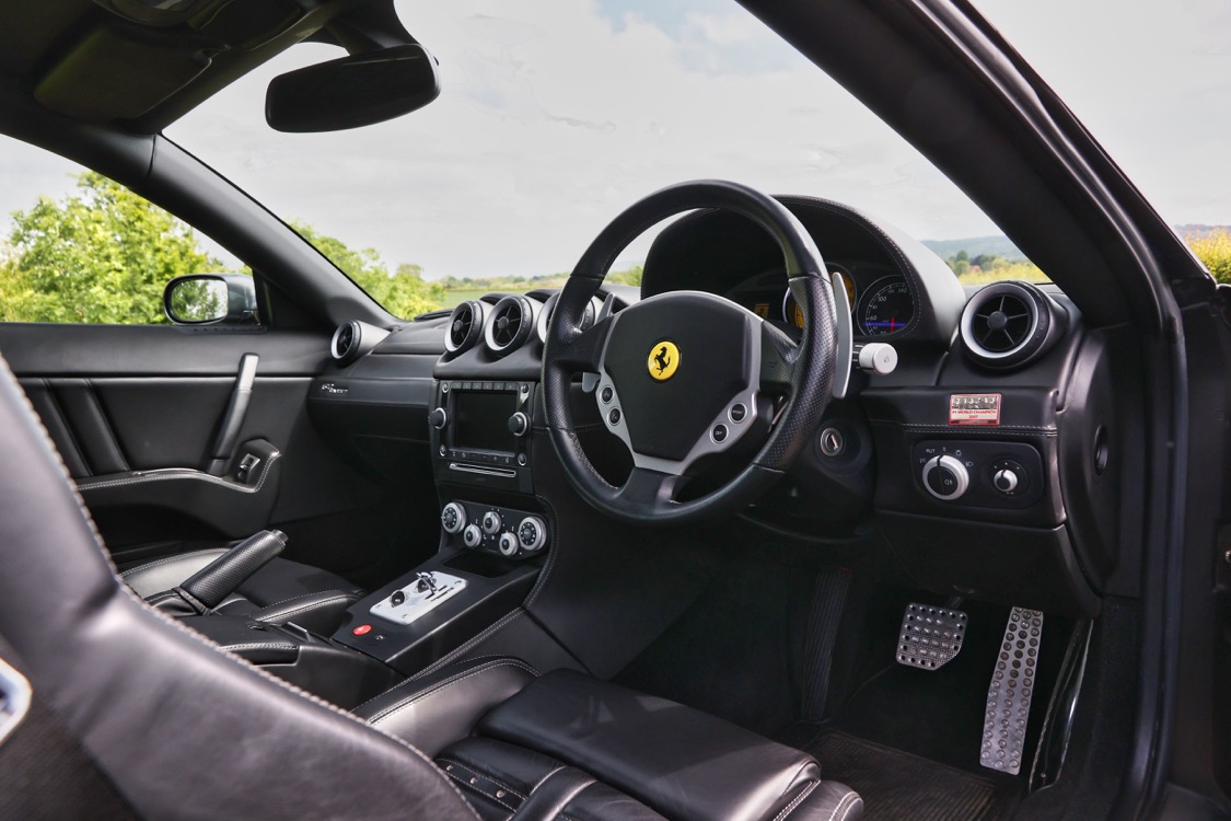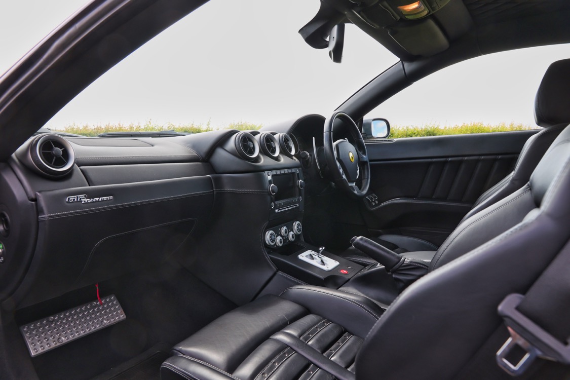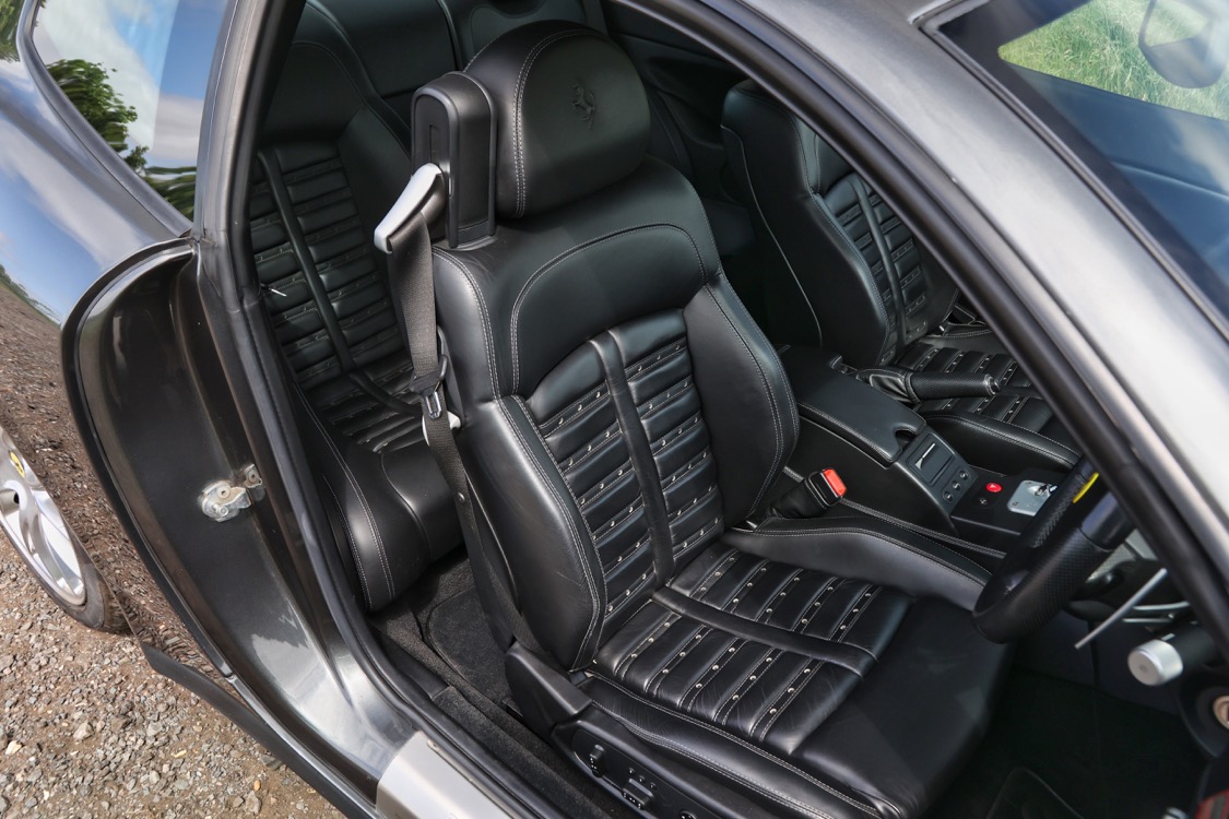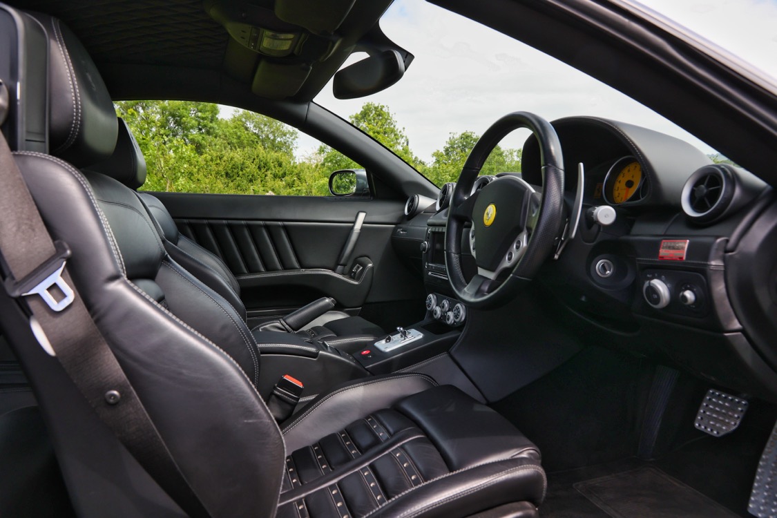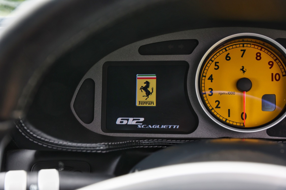 The Ferrari 612 Scaglietti offered here at Autostorico is a 2008 “08 plate” finished in Grigio Silverstone metallic with Nero Daytona style seats. This stunning two owner example has covered a mere 15,486 miles. Supplied new by HR Owen Ferrari London and boasts a comprehensive service history, the most recent service was carried out by Joe Macari London at 14,964 miles. Boasting a comprehensive specification including the following factory options: HGT2 package with Challenge polished alloy wheels, Daytona style seats, Scuderia Ferrari shields, Aluminium brake callipers, Heated seats, Leather dash inserts, NavTrak, Front and rear parking sensors, Diamond patterned leather headlining, yellow rev counter, Electrochromic rear-view mirror, Satnav, Premium BOSE sound system, iPod connection, Battery conditioner, Floor mats and a complete tool kit.