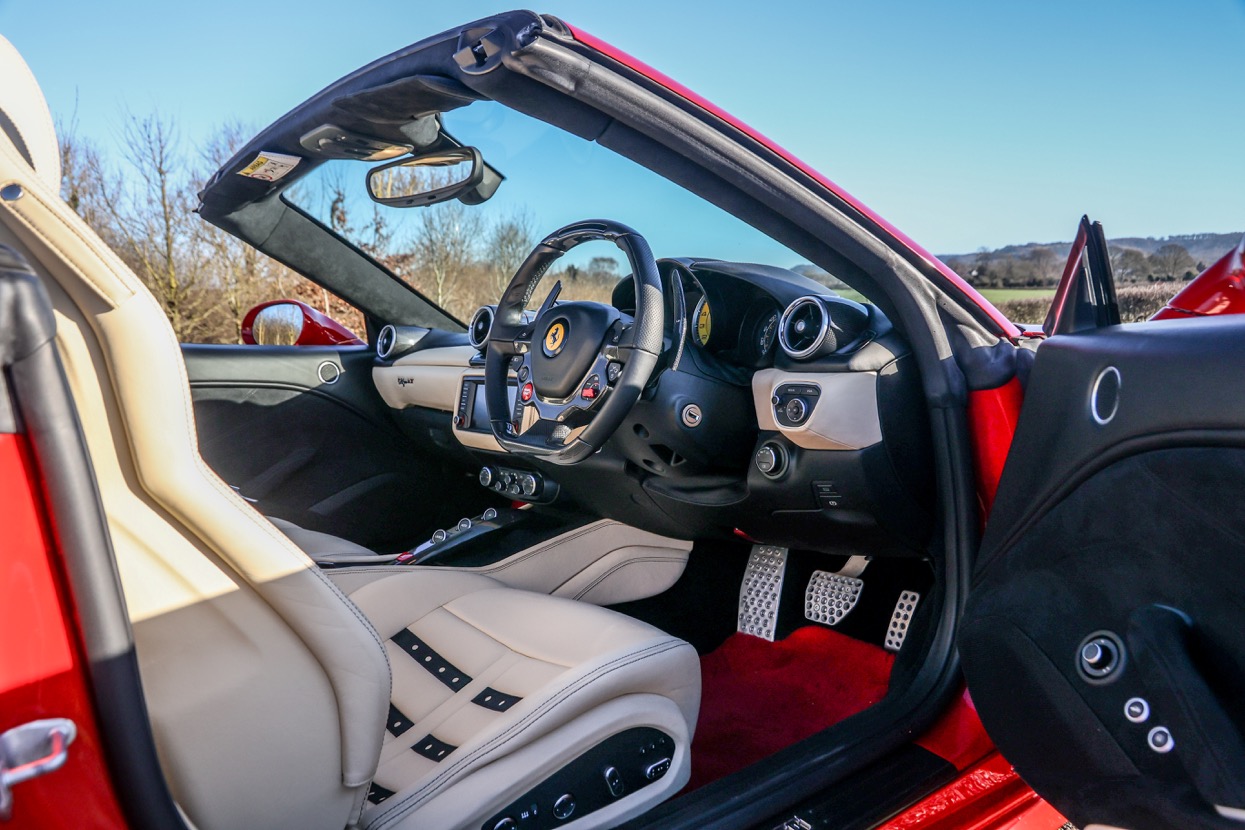 The Ferrari California T offered here at Autostorico is a 2015 “15 plate” with a mere 12,051 miles. This stunning one owner car was supplied new by Dick Lovett Ferrari Swindon and benefits from a full Ferrari main dealer service history with the most recent being carried out at HR Owen London in August 2024 at 11,410 miles. Finished in Rosso Corsa Red with Crema and Nero Daytona leather seats. Over and above the standard specification our car benefits from the following options; Rosso Corsa brake callipers, Front grille with chrome accents, Carbon fibre wheel centres caps, Sports tailpipe tips, Scuderia Ferrari shields to front wings, 20” Alloy wheels, Carbon fibre steering wheel with LED’s, Carbon fibre centre tunnel, Carbon fibre exterior sills, Carbon fibre dashboard accents, Embroidered Cavalino emblem to headrests, Aluminium footrest, Giallo Rev counter, Full electric seats Magneride suspension system, HELE system, Premium sound system, NavTrac and floor mats.