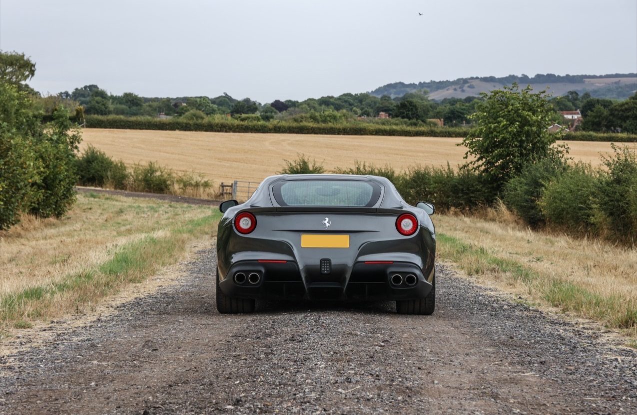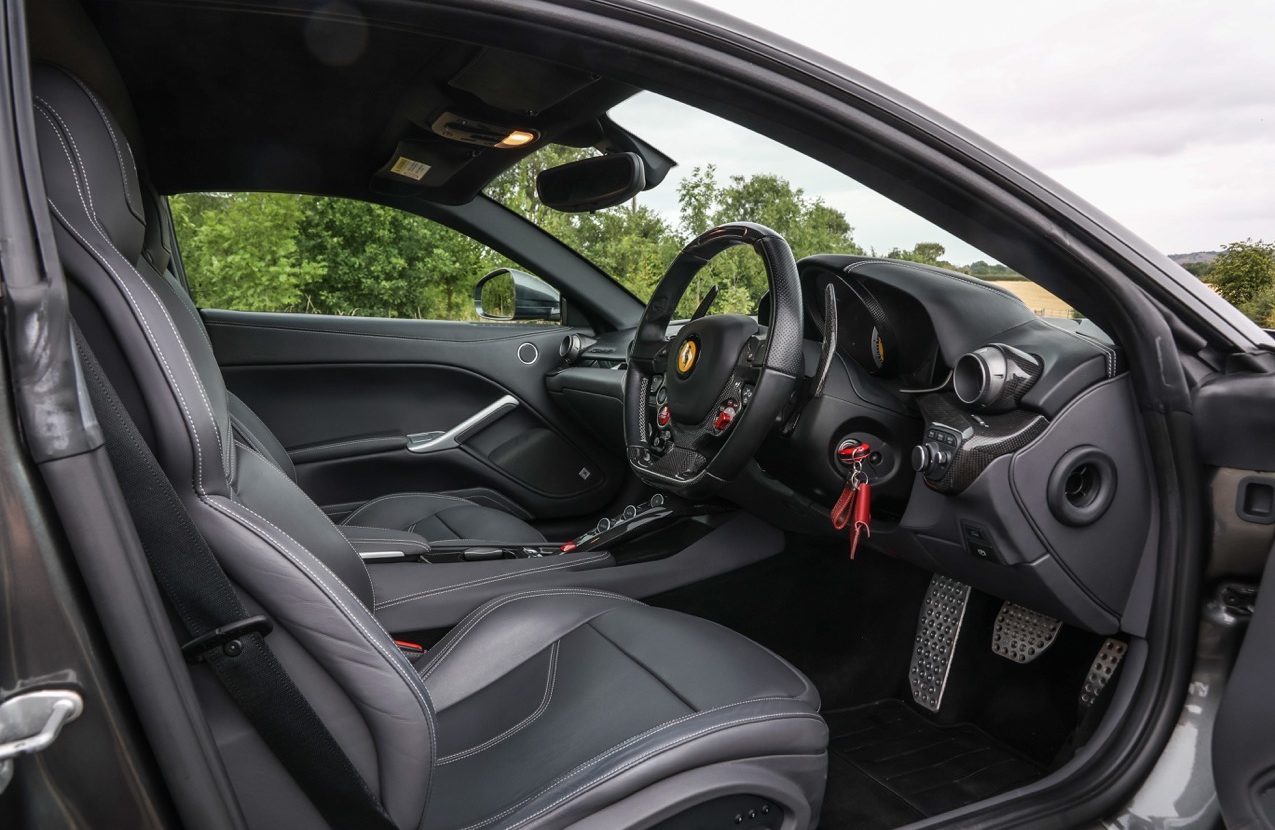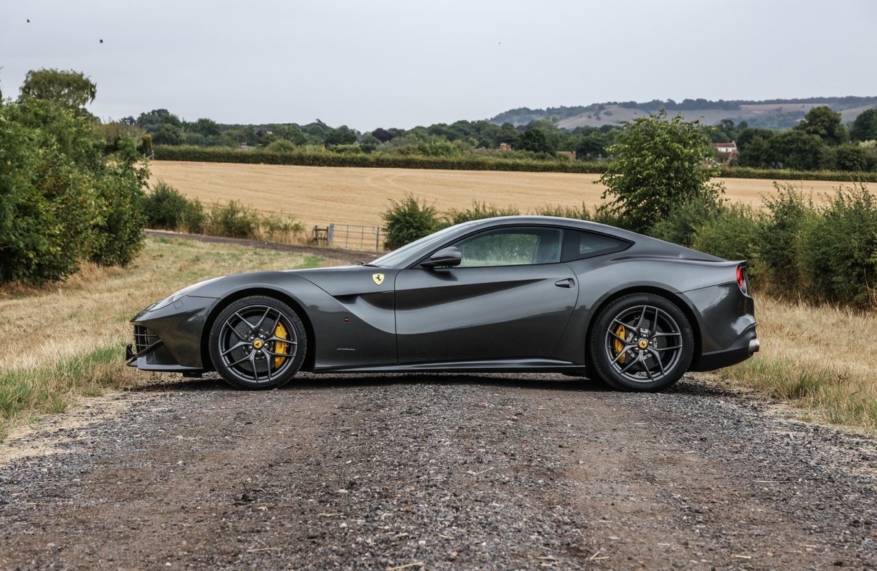 The Ferrari F12 Berlinetta offered here for sale by Autostorico is a 2014 “63 plate” finished in Grigio Silverstone with Charcoal leather interior. Having covered just 13,887 miles this stunning example was supplied new through HR Owen London. Boasting a full main dealer service history, the last of which was carried out in February 2022 at 9879 miles. Specified with the following factory options; Yellow brake calipers, Chromed front grille, Carbon fibre driving zone +, Carbon centre bridge, Carbon fibre cup holder, Cruise control, Carbon fibre Dashboard inserts, Cavallino stitched on headrest, ‘Scuderia Ferrari’ shields, Electrochromic rear view mirror, Navtrac, Parking camera, 20” Forged diamond turned alloy wheels, Full electric seats, Leather parcel shelf, High power hi-fi, Tyre pressure monitoring system and carpet floor mats.