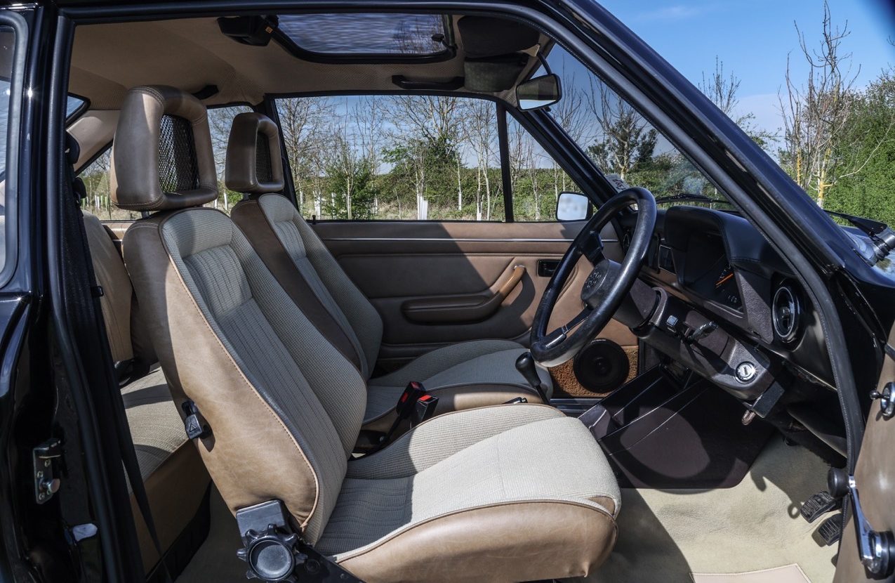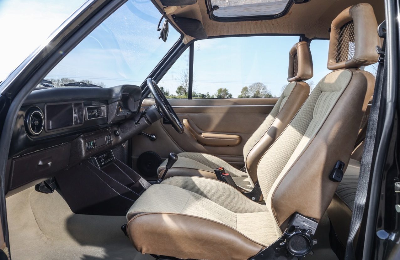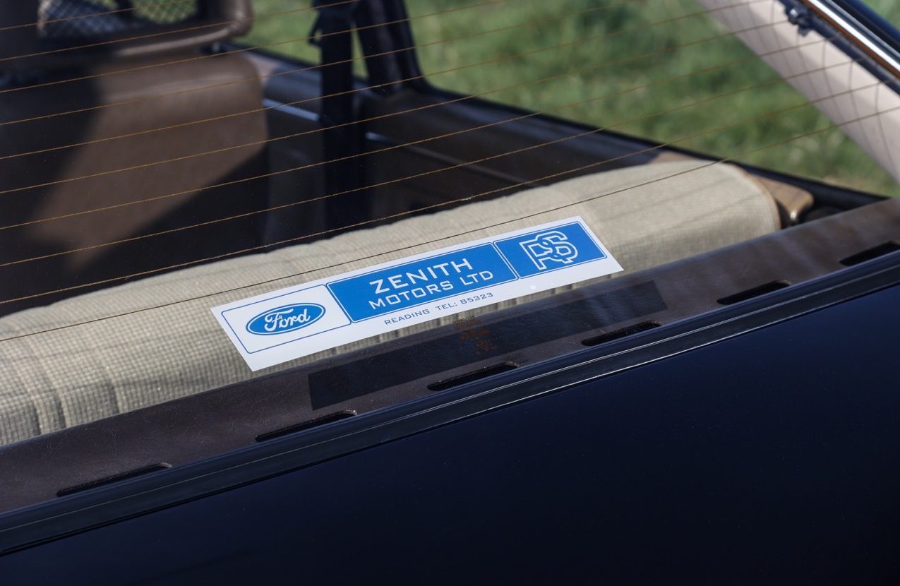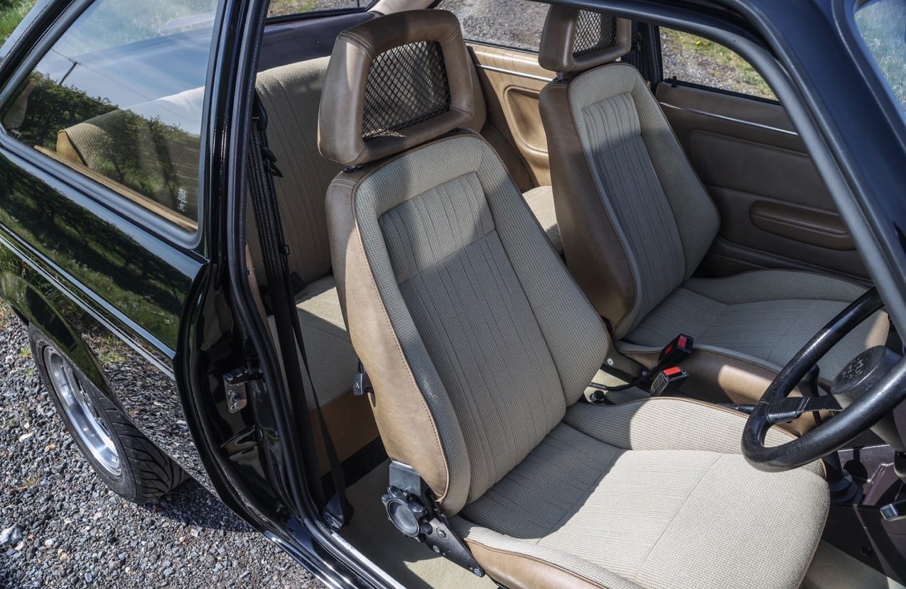 The 1980 Ford Escort RS2000 Custom offered here at Autostorico is finished in Solid Black with Beige Beta cloth interior trim. Having been purchased by its current owner a lifelong Ford enthusiast in 2017, who had been searching for a solid car with as many original panels as possible (still retaining its original sills and floor). He then undertook a no expense spared restoration. Works started with the car being stripped included removing the engine and gearbox and stripping the whole body, before a bare metal respray. The car was also subject to a full mechanical overhaul including some sympathetic upgrades. The engine has been fully rebuilt by Vulcan Engineering using a 205 block with a 2.1 big valve head, RL32 cam, ported. Weber carburettor modified for Pinto use 38 DGAS with manual choke and period Janspeed 4 branch manifold and exhaust system. The gearbox is a 5 speed (original 4 speed box is still with the car) Attention then moved to the braking, which are new 2.8i Capri vented calipers and discs with new braided brake lines. The suspension system has all been re-newed with the front being GRP1 ‘909’ Bilstein front struts with 225lb springs with roller bearing top mounts. The rear 145lb single leaf springs with Bilstein shocks.