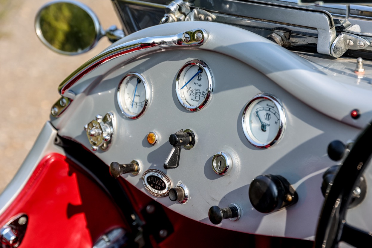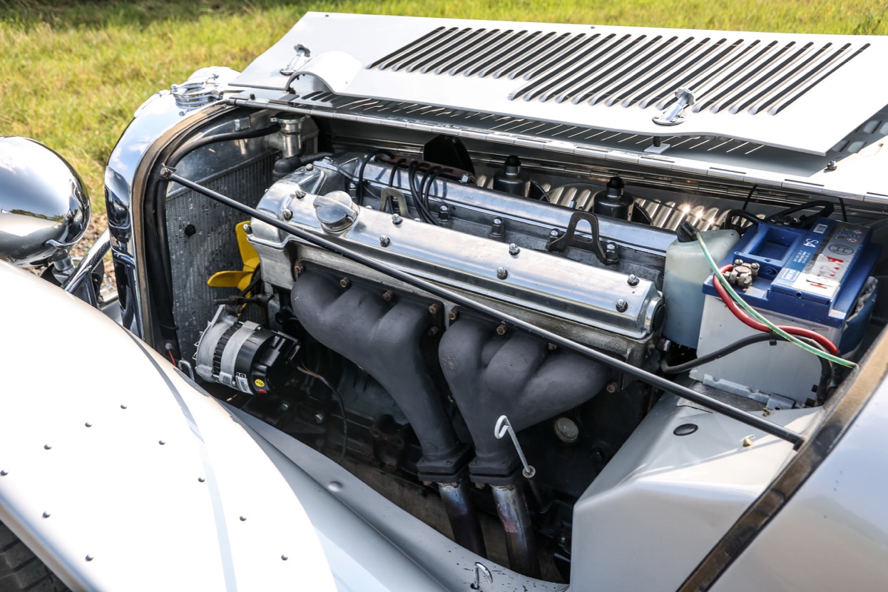 The Jaguar SS100 Evocation by Suffolk Sports Cars offered here at Autostorico is finished in Silver with leather interior. This exceptional example was commissioned in 1997 with the car being registered as a Suffolk Sports Car meaning that its totally road legal, unlike many other Suffolk’s which use the donor cars identity. Having covered an indicated 18,715 miles this proven SS100 has undertaken several European tours. Power comes from a Jaguar 3.4 litre straight six-cylinder XK engine with twin carburettors mated to a manual gearbox with overdrive. Built with great attention to detail including decorative rivets along the front wings, period handbrake, SS steering wheel and period dials. Other specification highlights include; luggage rack, wet weather gear, tonneau cover and concealed heater.