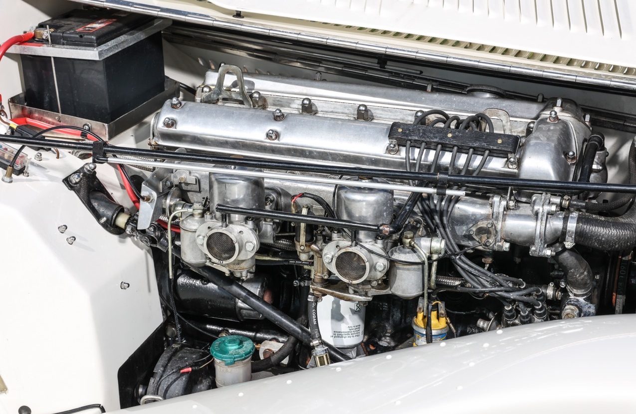 The SS100 was the first real high-performance model produced by SS Cars Ltd and used a new Weslake developed overhead-valve engine in a shortened SS1 chassis. The introduction of the OHV unit was considered to justify the adoption of a new name for the series, SS Cars boss William Lyons later recalling, ‘I immediately pounced on Jaguar as it had an exciting sound to me’. ‘Jaguar’ would be adopted as the marque name in 1943,’SS’ having then taken on a more sinister connotation.
