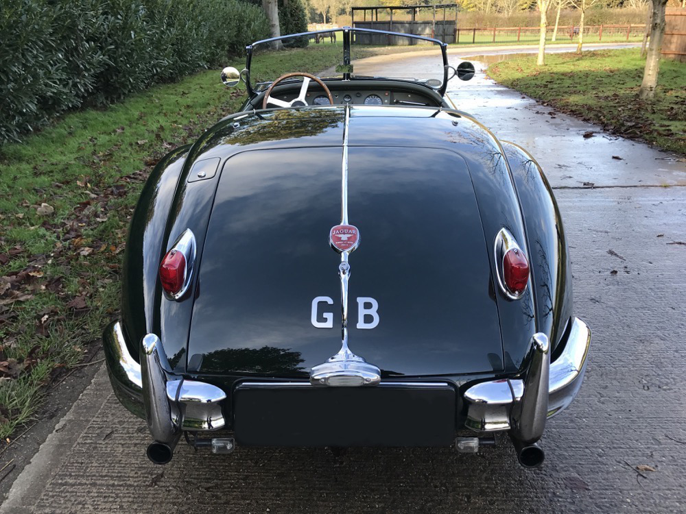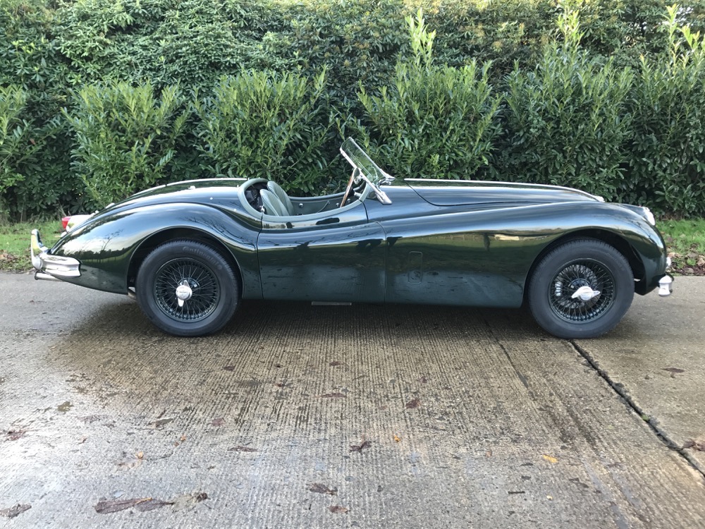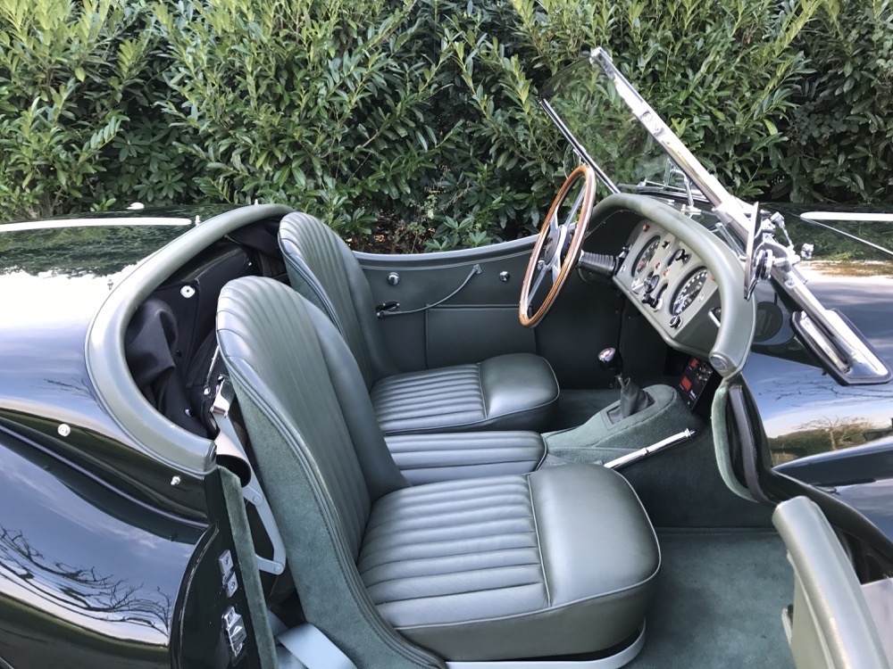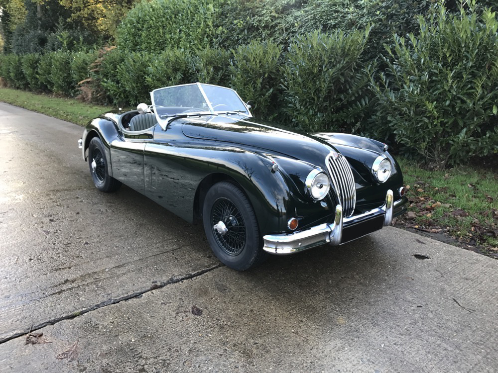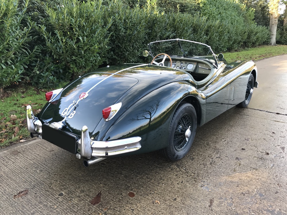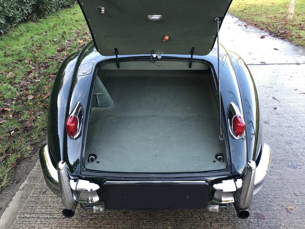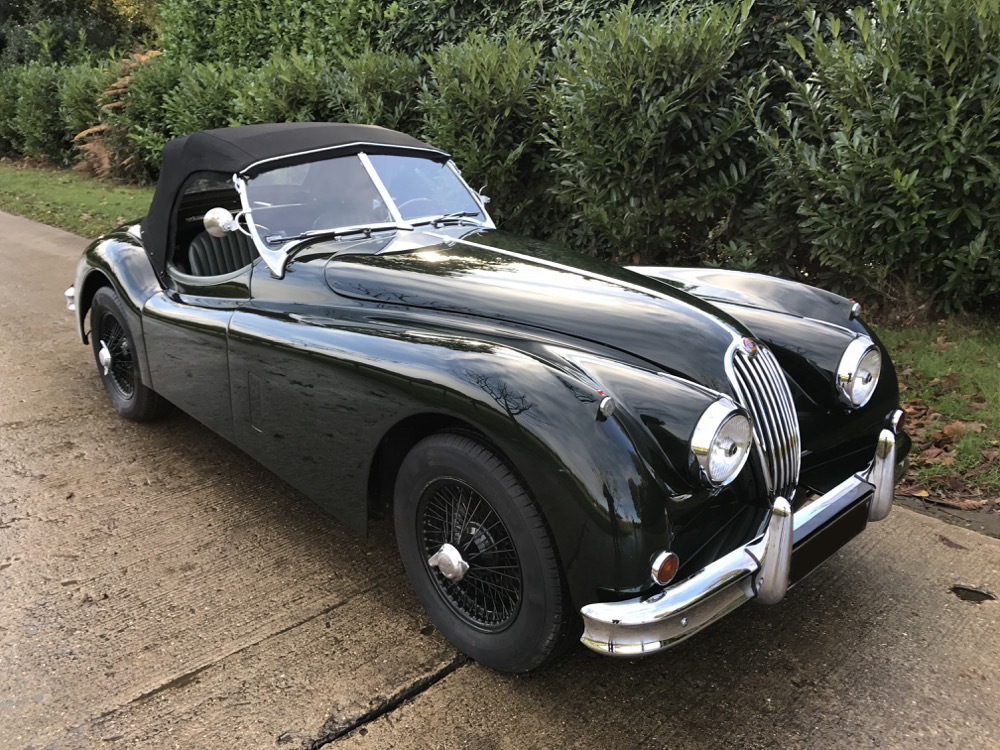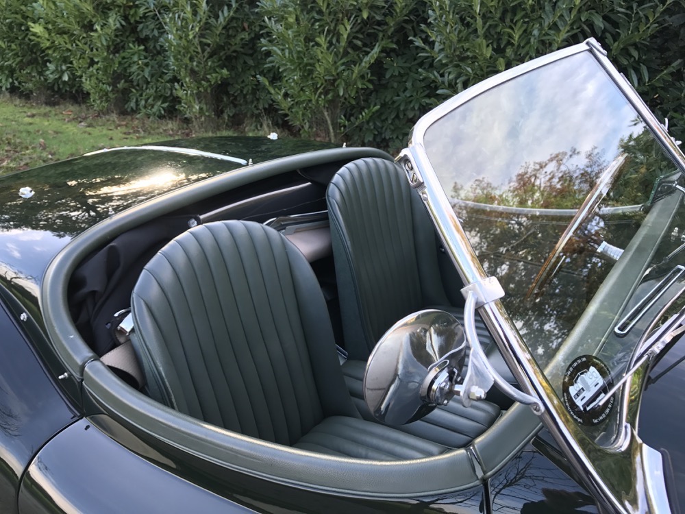 The Jaguar XK140 Roadster offered here at Autostorico was first registered in February 1957 Chassis no: 813223. This beautiful example was one of the last XK140’s made before Jaguar started production of its replacement, the XK150. Supplied new by Jaguar Cars, New York, USA the car spent much of its life in Houston Texas before retuning to the UK in 2004. Finished in British Racing Green with Sage Green leather interior, this stunning example has undergone a full body off nut and bolt restoration. Works included; replacing all corroded panels, full chassis and suspension overhaul. The interior has been completely re-trimmed with new carpets and hood. The engine has undergone a complete rebuild and has been enhanced with the addition of electronic ignition and an alternator. A new five speed gearbox has been fitted to give more relaxed high speed touring. Other work undertaken includes: Full re-wire, Front disc brakes fitted, Re-chromed, Axle rebuild and new wire wheels and tyres. The car comes complete with a Jaguar heritage certificate, current MOT, Photographic evidence of restoration and numerous receipts.