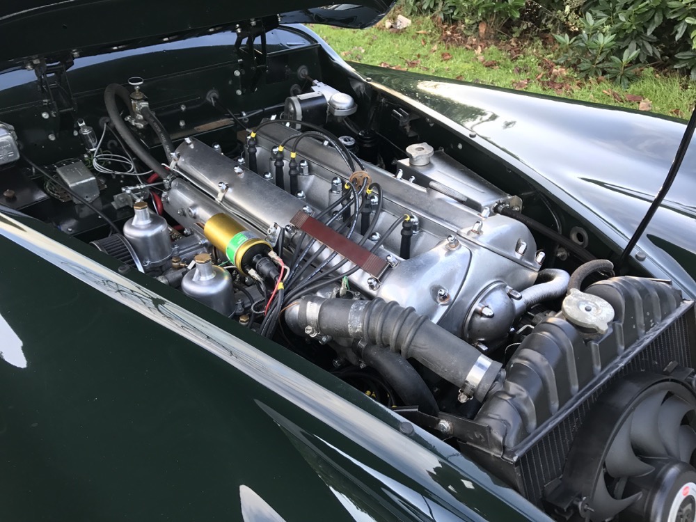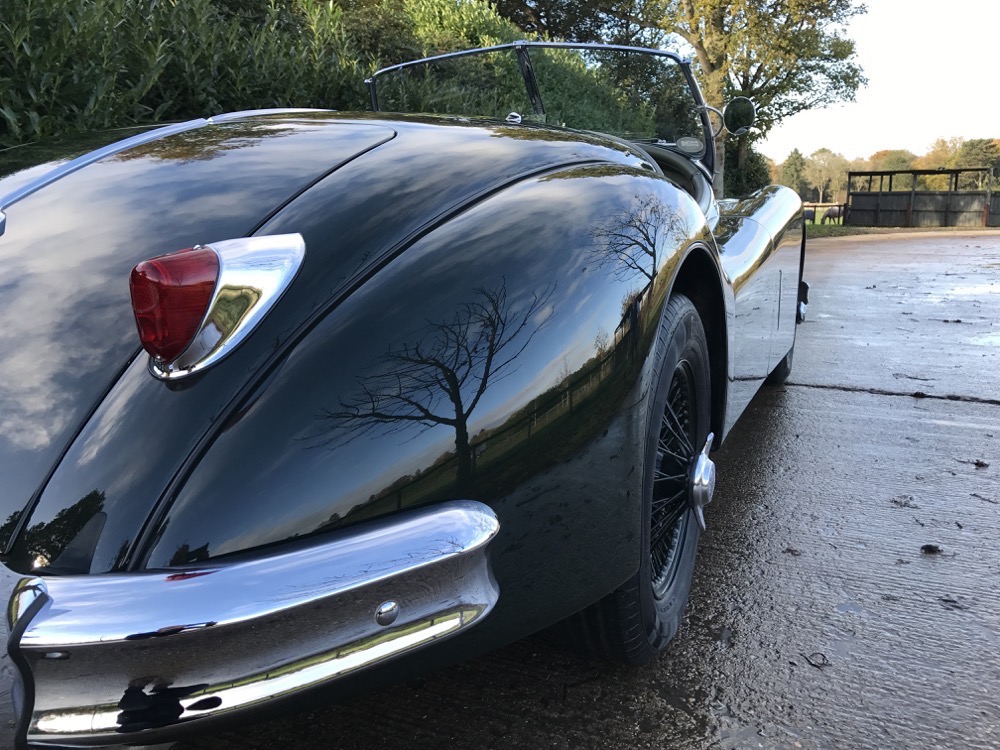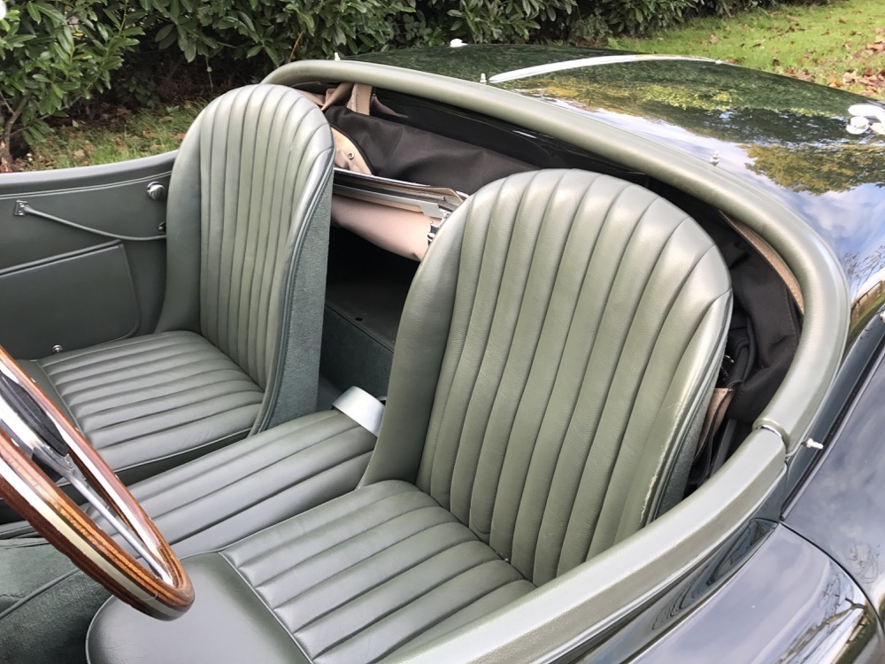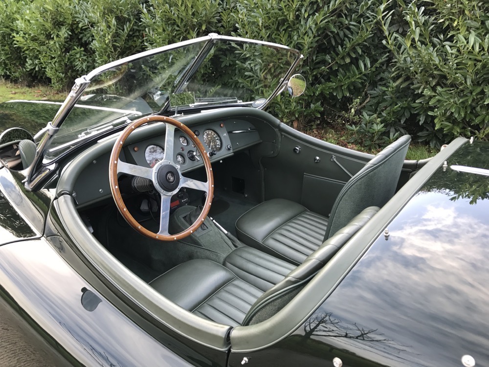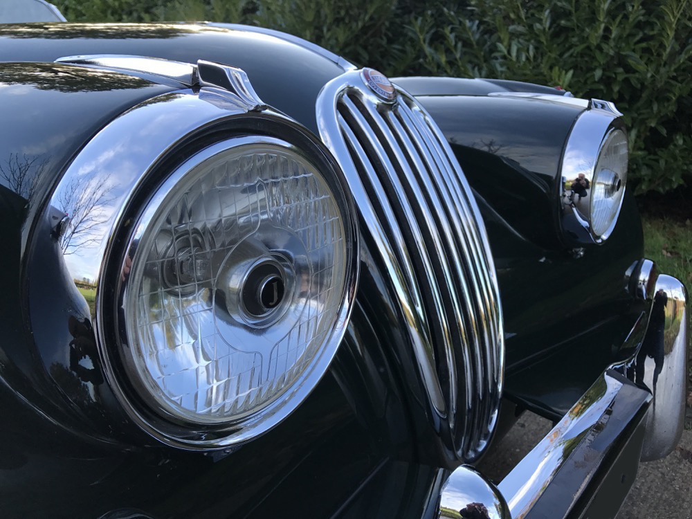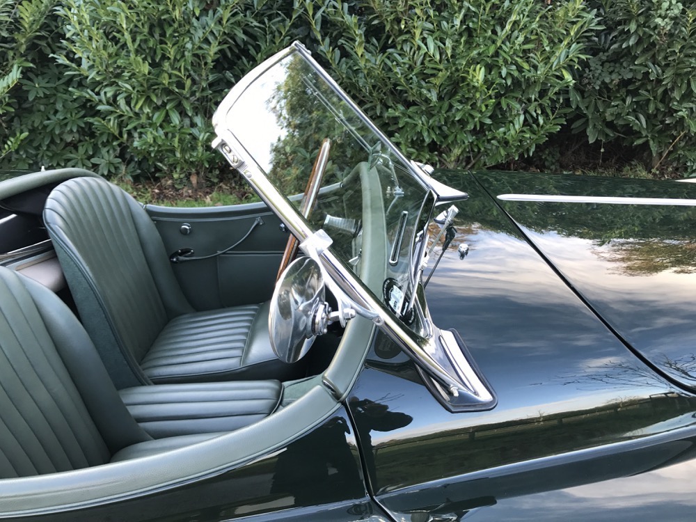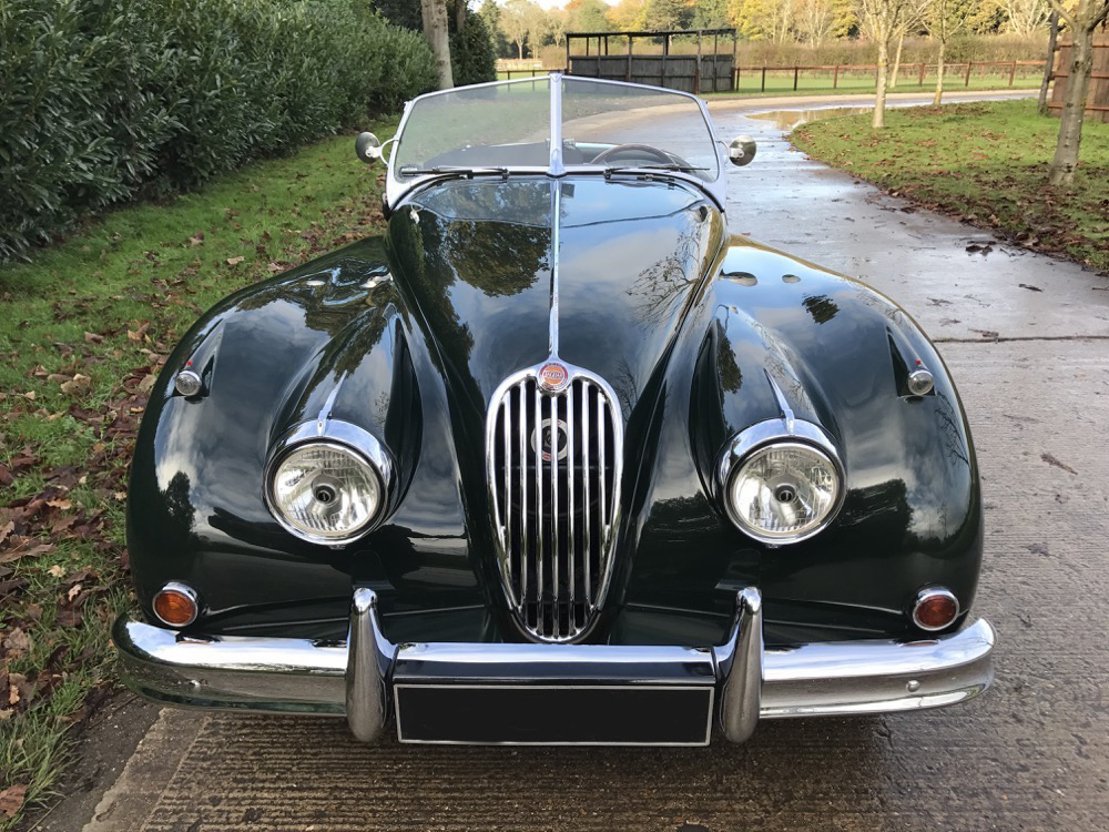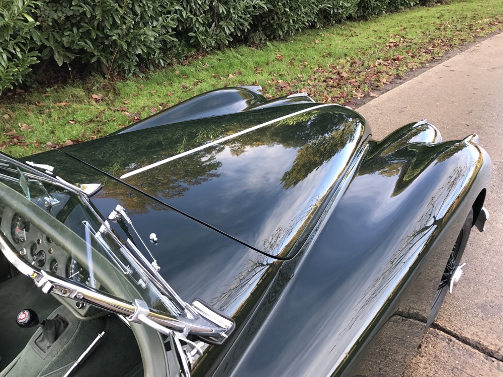The Jaguar XK140 Roadster offered here at Autostorico was first registered in February 1957 Chassis no: 813223. This beautiful example was one of the last XK140’s made before Jaguar started production of its replacement, the XK150. Supplied new by Jaguar Cars, New York, USA the car spent much of its life in Houston Texas before retuning to the UK in 2004. Finished in British Racing Green with Sage Green leather interior, this stunning example has undergone a full body off nut and bolt restoration. Works included; replacing all corroded panels, full chassis and suspension overhaul. The interior has been completely re-trimmed with new carpets and hood. The engine has undergone a complete rebuild and has been enhanced with the addition of electronic ignition and an alternator. A new five speed gearbox has been fitted to give more relaxed high speed touring. Other work undertaken includes: Full re-wire, Front disc brakes fitted, Re-chromed, Axle rebuild and new wire wheels and tyres. The car comes complete with a Jaguar heritage certificate, current MOT, Photographic evidence of restoration and numerous receipts.