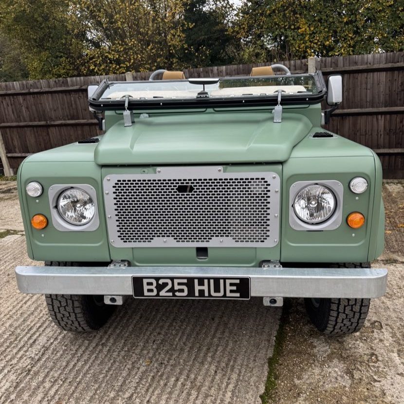 Finished in evocative Atlantic Green Satin and complemented by a bespoke Sand fabric interior, this vehicle was acquired by a passionate Land Rover aficionado in 2024 and subsequently treated to a meticulous, no-expense-spared nut-and-bolt restoration by respected marque specialists. Works included the fitment of a brand-new galvanised chassis and bulkhead, all new exterior panels, and the installation of a 300Tdi engine paired with the renowned R380 gearbox. Further enhancements comprise a new wiring loom, completely renewed suspension and braking systems, a full interior re-trim, and a smart canvas soft top — all executed to an exceptional standard.