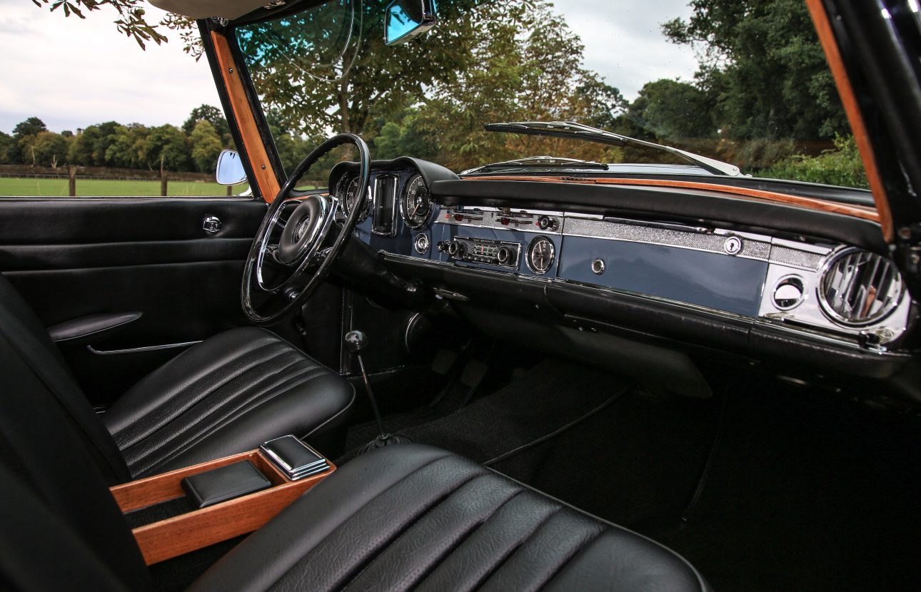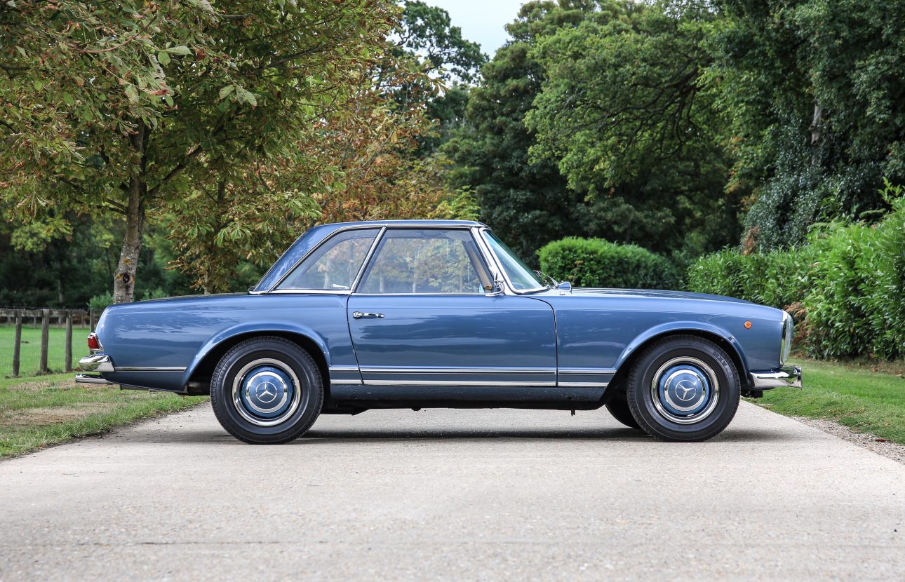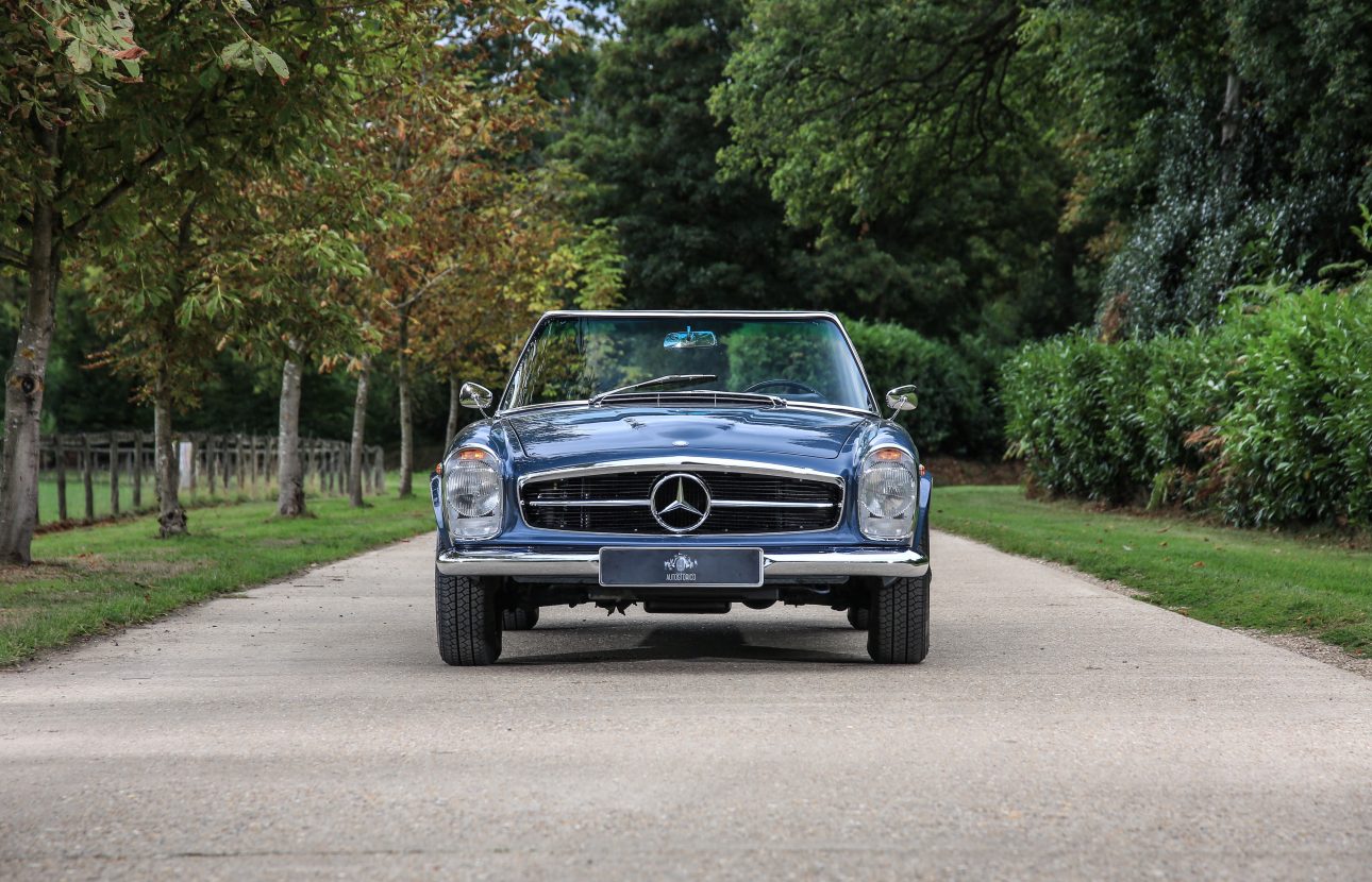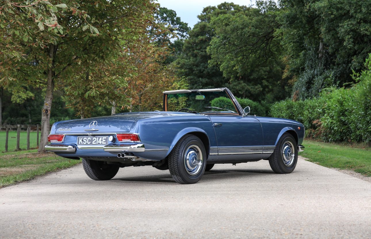 The Mercedes-Benz W113 SL was launched at the 1963 Geneva Motor Show as the replacement for the popular W121 SL 190. Penned by Mercedes’ lead designer Paul Bracq as principally a two-seater luxury sports touring convertible with a slightly concave hardtop, which inspired the “Pagoda” nickname.  All models were equipped with six-cylinder engines with multipoint fuel injection. The bonnet, boot lid, door skins and tonneau cover were made of aluminium to reduce weight, this combined with excellent suspension, powerful brakes made for superb handling. Mercedes launched the 250 SL in December 1966 with production ending in January 1968 making 250 the rarest of all the Pagoda models with only 5,196 built. Boasting 150bhp with the option of either an automatic or manual transmission the 250 SL was capable of speeds in excess of 120 mph making for effortless European touring.