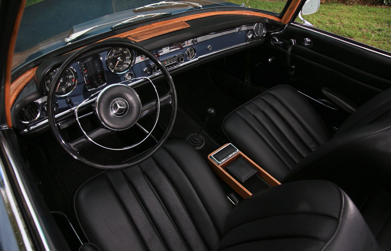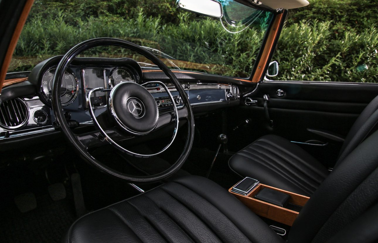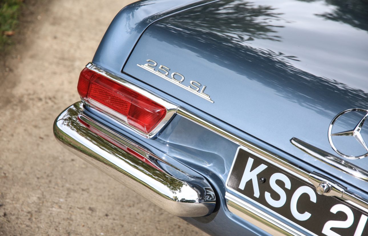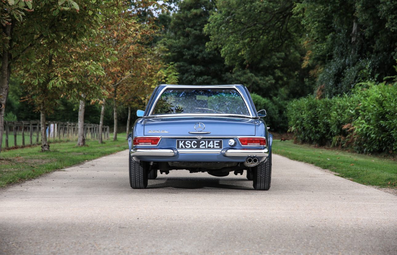 The Mercedes-Benz W113 SL was launched at the 1963 Geneva Motor Show as the replacement for the popular W121 SL 190. Penned by Mercedes’ lead designer Paul Bracq as principally a two-seater luxury sports touring convertible with a slightly concave hardtop, which inspired the “Pagoda” nickname.  All models were equipped with six-cylinder engines with multipoint fuel injection. The bonnet, boot lid, door skins and tonneau cover were made of aluminium to reduce weight, this combined with excellent suspension, powerful brakes made for superb handling. Mercedes launched the 250 SL in December 1966 with production ending in January 1968 making 250 the rarest of all the Pagoda models with only 5,196 built. Boasting 150bhp with the option of either an automatic or manual transmission the 250 SL was capable of speeds in excess of 120 mph making for effortless European touring.