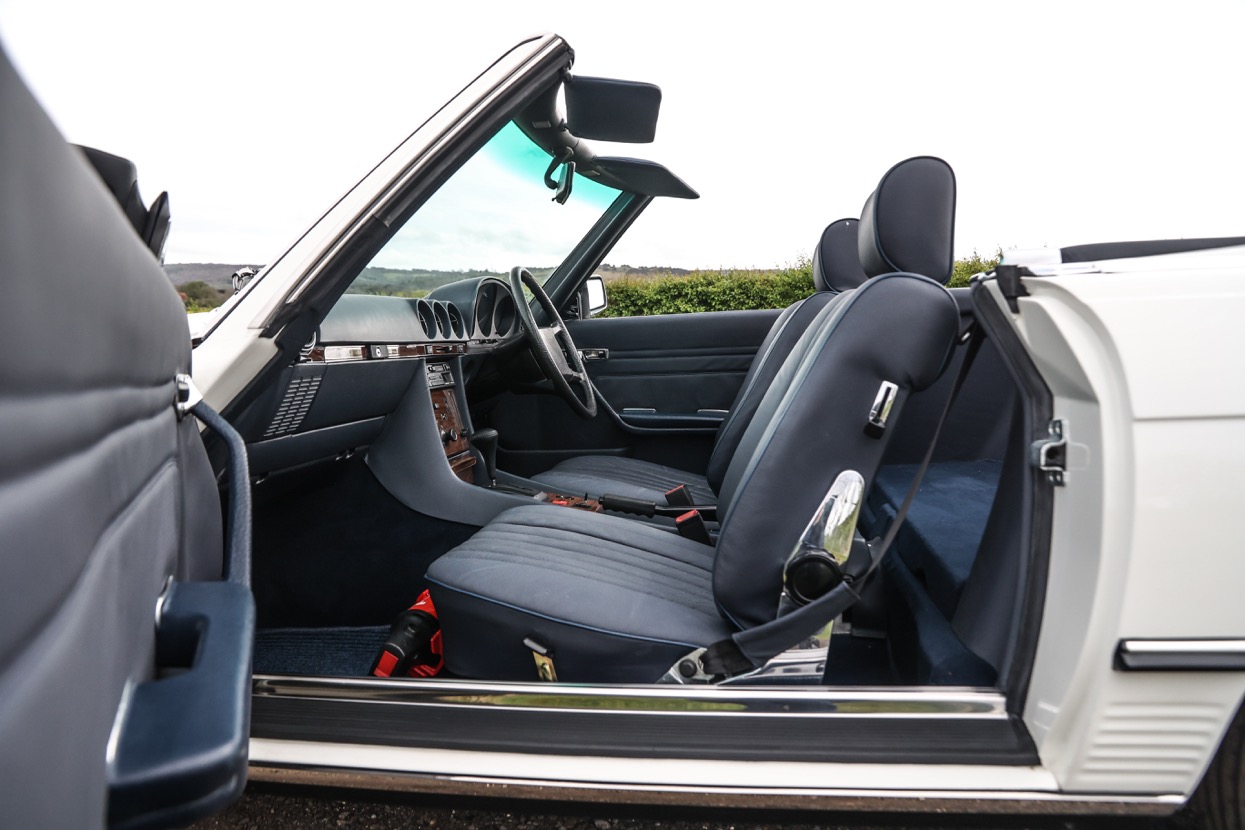 The Mercedes-Benz SL R107 is a 2-seat convertible produced from 1971 through to 1989. In 1980, the SL received a facelift. Although the styling remained pretty much untouched, there were a raft of technical changes to reflect the new technology that had been introduced in the 1979 S-Class sister car. Produced with several engine options including the 280 2,746cc straight six which produced an impressive 182bhp. This propelled the car to a top speed of 129 mph.