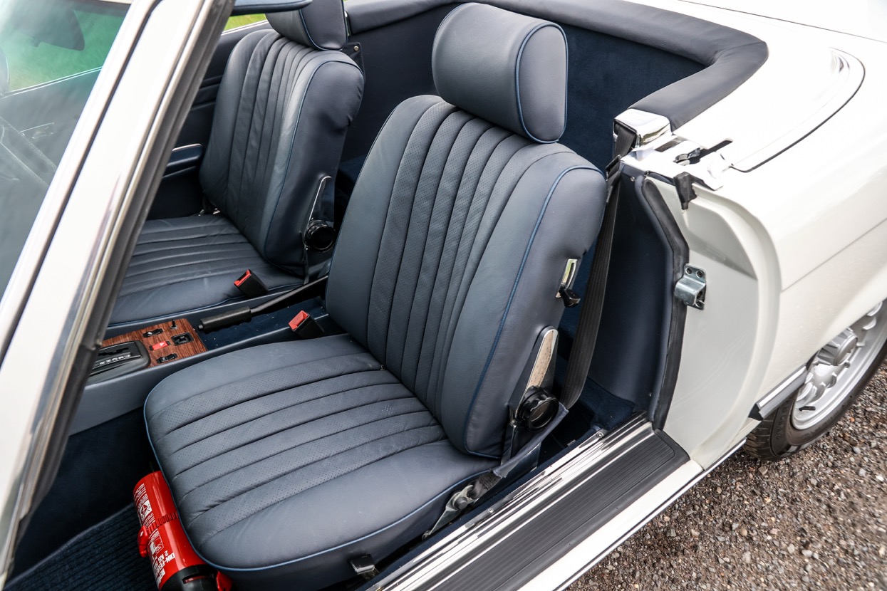 The Mercedes-Benz SL280 offered here at Autostorico was first registered on 29thSeptember 1983 and is finished Classic White with Blue leather interior trim. Having covered 78,372 miles this stunning example has been subject to a no expense spared restoration. Works included removing the engine, gearbox and stripping the whole body, before a bare metal respray. The car was also subject to a full mechanical overhaul. New interior trim including door cards, carpets and soft top complete this exceptional example.