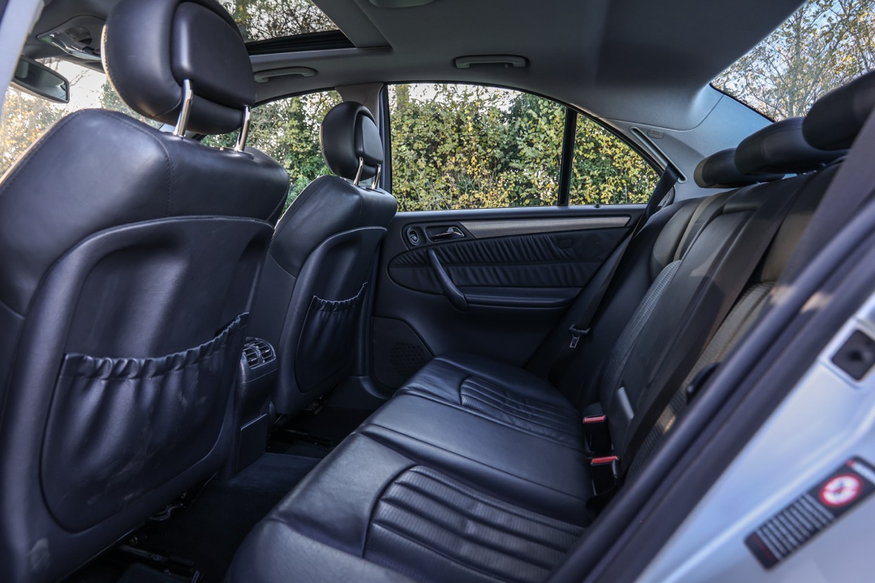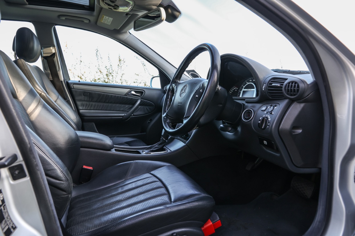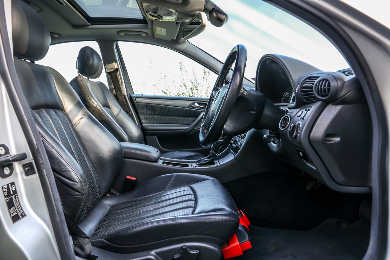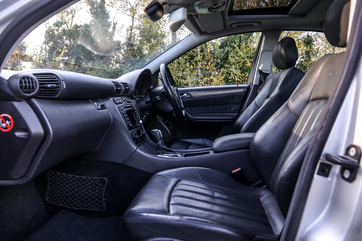 The Mercedes Benz C32 offered here at Autostorico is a 2002 “02 plate” and is finished in Brilliant Silver with Anthracite Black leather interior. Having covered 120,887 miles this stunning example was specially ordered new by Tony Brookes six-time F1 winner through Mercedes Benz Stuttgart and has remained in his family ownership. Boasting a comprehensive service history with last of which was carried out by marque specialist Star Tec of Surrey at 118,601 miles. Factory options include Sunroof, Xenon headlights, Heated windscreen washers, Command, Ski bag, Electric rear window blind, Floor mats and even a disabled speed limiter.