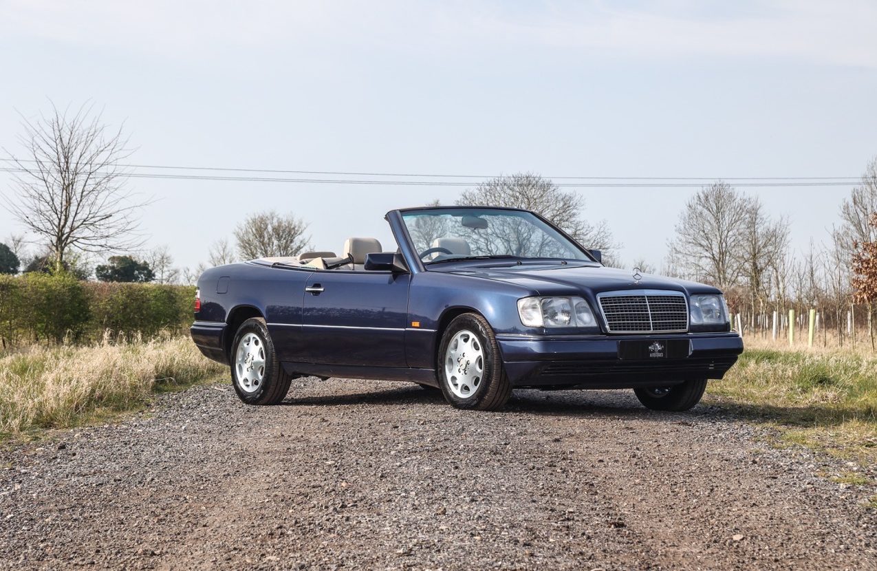 The Mercedes-Benz E220 Convertible offered here at Autostorico was first registered on 26 May 1995 and is finished in Azurite Blue with Mushroom Leather interior. The stunning example has covered a mere car 57,181 miles. Having been well maintained with recent works including a new roof being fitted in 2020, new stainless-steel exhaust system and the addition of DAB radio with Bluetooth music streaming and speaker upgrade. Other specification highlights include Leather interior with Heated front seats, Electric windows and door mirrors, Electric Retracting rear head restraints.