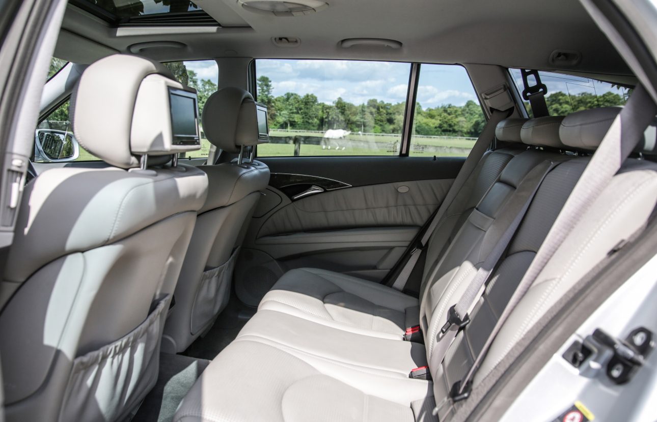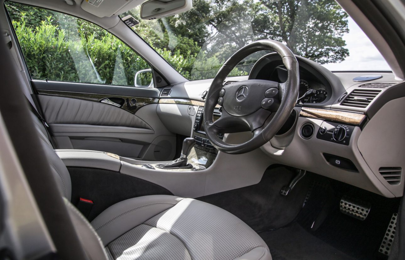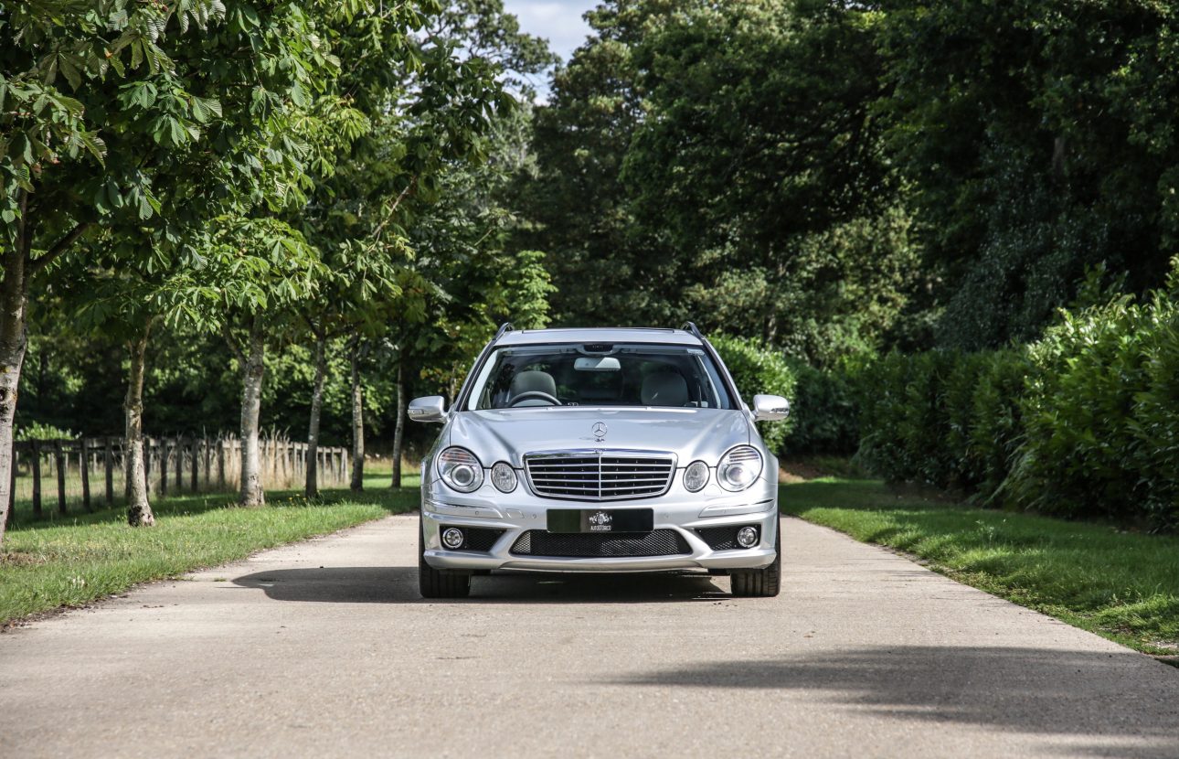 The Mercedes Benz E63 AMG Estate offered here at Autostorico is a 2006 “56 plate” finished in Brilliant Silver metallic with Beige leather interior. Having covered just 93,303 miles, this stunning example boasts a full service history most recently carried out by Prestige Motor Company a Mercedes-Benz’s specialist at 92,893 miles. Specification highlights include – AMG 19” split rim alloy wheels, Command (Satnav),  Bluetooth phone, Sunroof, Harmon Kardon hi-fi, Memory seats, Massage seats, Power fold mirrors, Xenon headlamps, Paddle-Shift sports steering wheel, Park assist, Reversing camera, 7 seat configuration, Rear DVD screens, Cruise control, Heated seats, Privacy glass, Power tailgate and Floor mats.