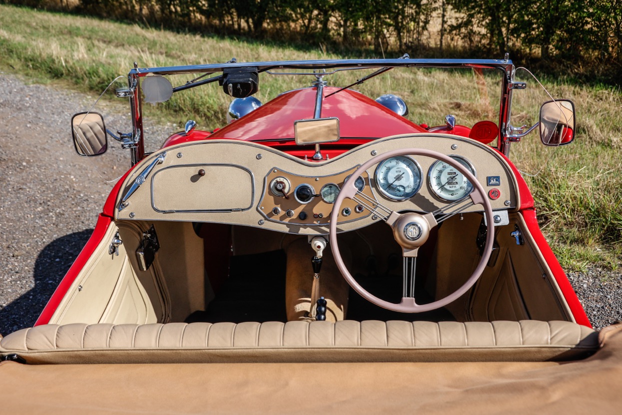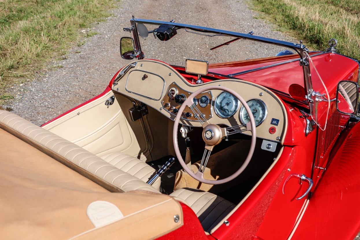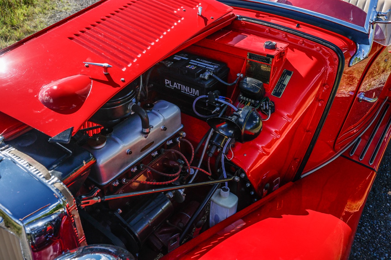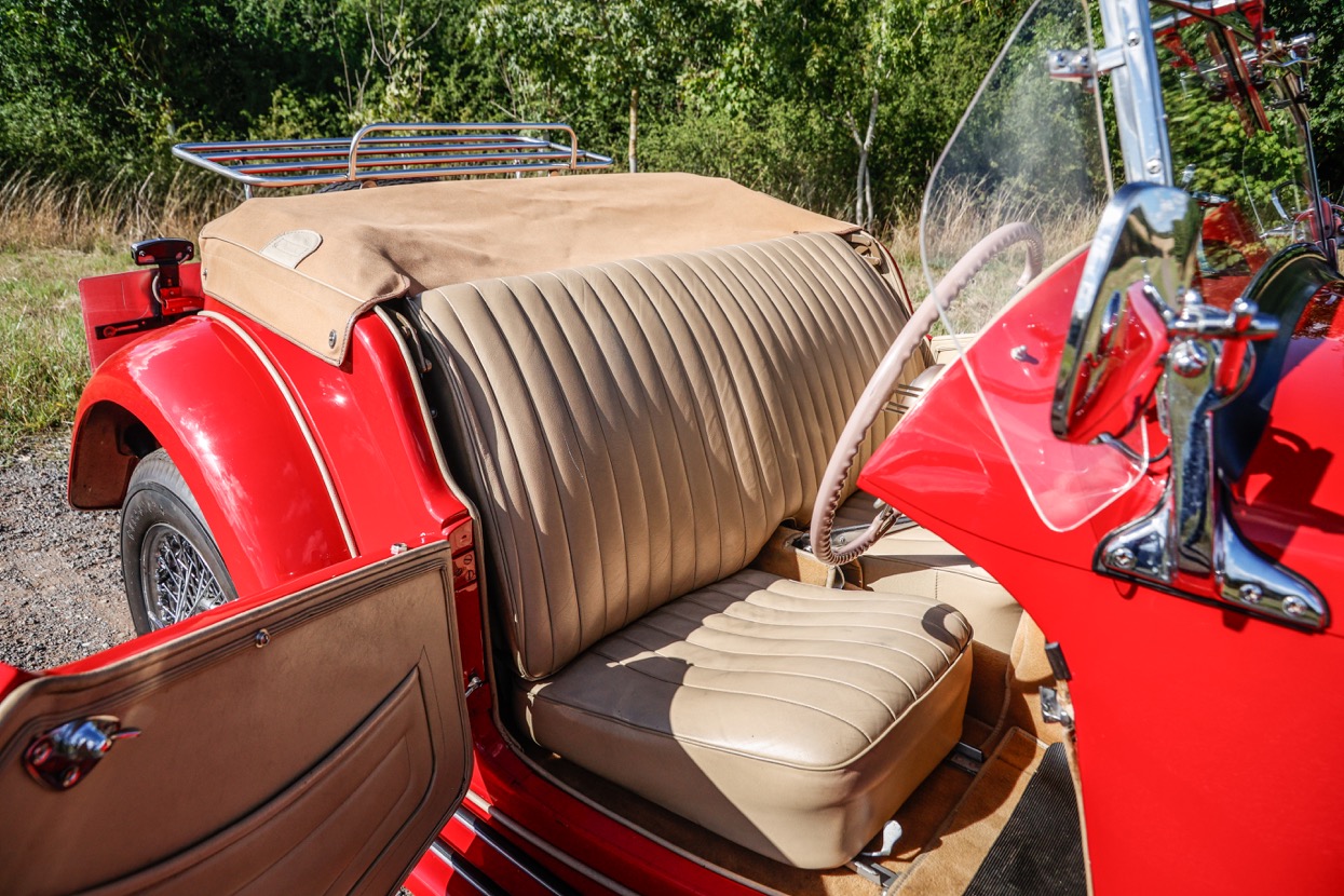 The MG TD chassis no: TD8992 offered here at Autostorcio is a 1951 example built for the North American market. Finished in Red with Beige Rexine and Leather interior with Beige hood. Having remained in America until 1991 the car returned to UK shores where it underwent a full body-off, no expense spared, restoration including converting to RHD drive. Works included full chassis shot blast and re-paint, bodywork prepared for a bare metal respray, suspension and running gear overhaul replacing parts where necessary, engine rebuild, full re-wire, re-trimmed interior and chrome replaced.