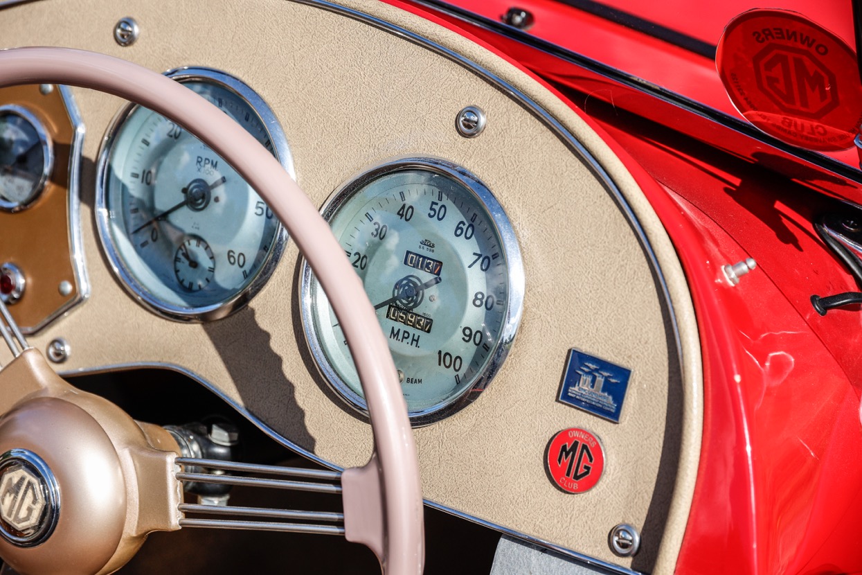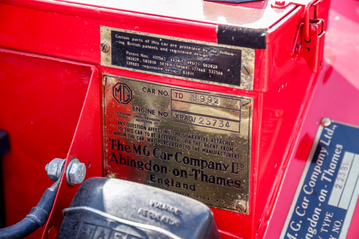 The MG TD was launched in January 1950 as the replacement for the MG TC. Introduced as the first post-war MG, the TD combined the TC’s drivetrain and included a hypoid-geared rear axle, shortened TC chassis with full independent suspension, new rack and pinion steering, resulting in much improved handling. Powered by a 1250cc engine the TD boasted a top speed of 77mph and could accelerate from 0-60mph in just under 20 secs.