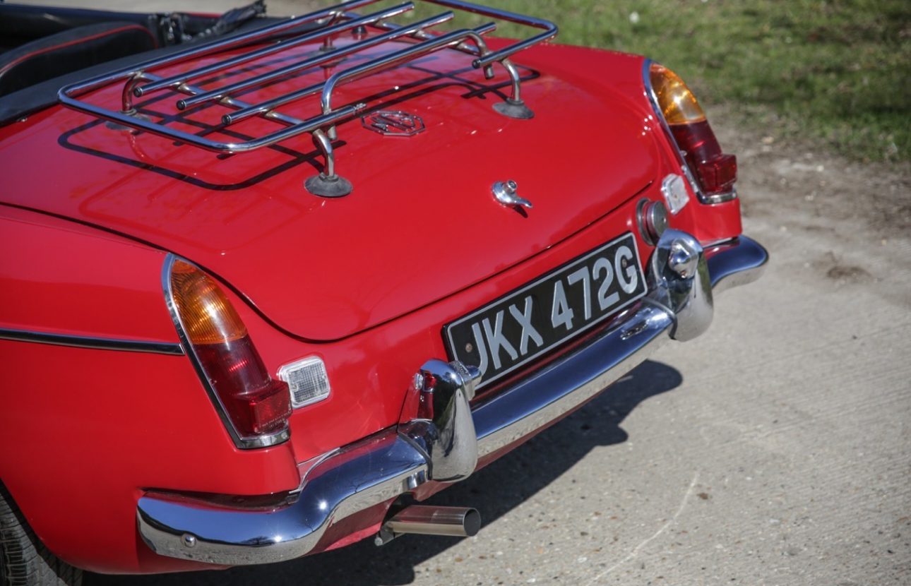 The MGB Roadster offered here at Autostorico is a June 1969 registered example with an indicated 40,107 miles finished in Signal Red with Black leather interior. Purchased by its current owner in 2014 this lovely example has been used sparingly and has just been to Haileywood Specialist cars for a pre-sales inspection prior to being marketed. Specification highlights include; 4 speed gearbox with overdrive, Wire wheels with knock off spinners, Moto-Lita steering wheel, Boot rack and Tonneau cover.