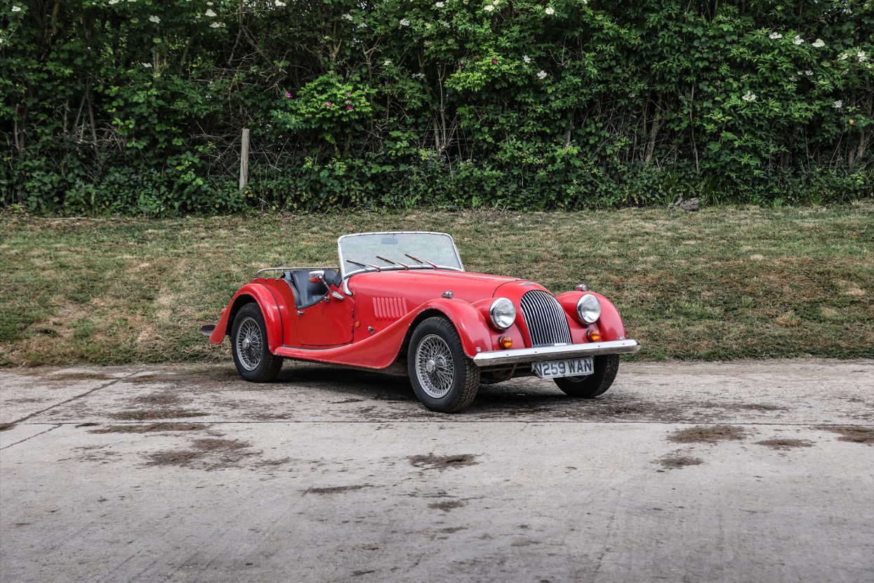 The Morgan Plus 4 offered here for sale by Autostorico is a 1995 “N plate” finished in Red with Black interior trim. This particular car has covered an indicated 51,406 miles and has been laid up in the owner’s barn for many years so will require re-commissioning. It does however start and run.