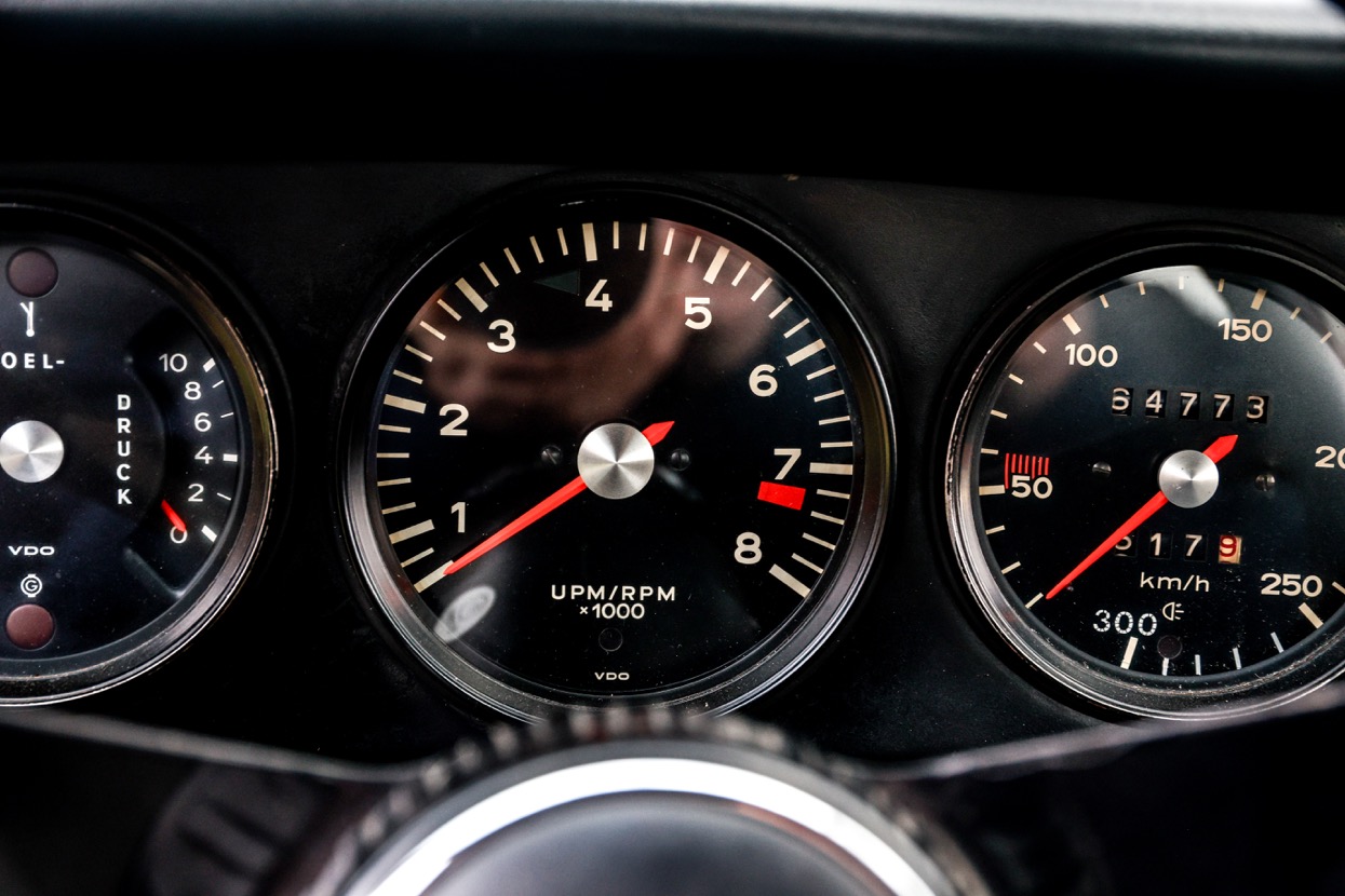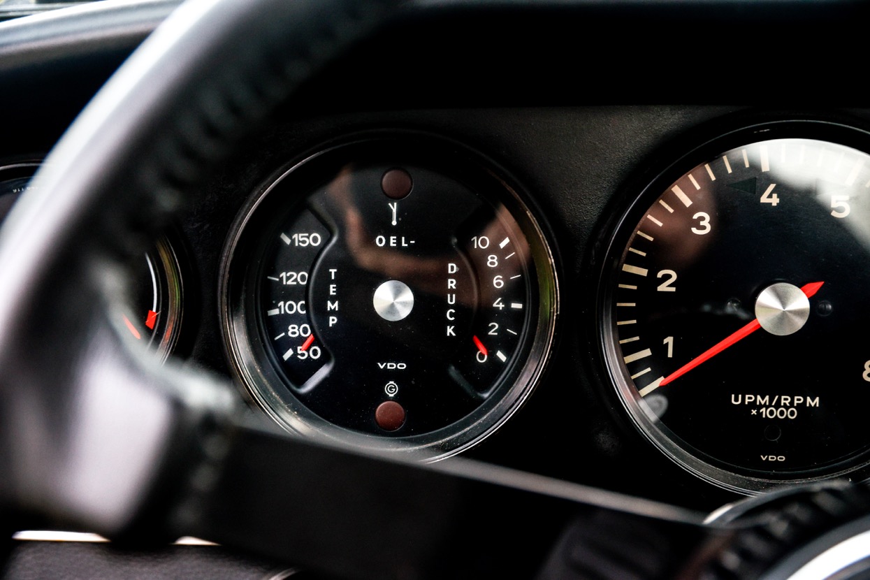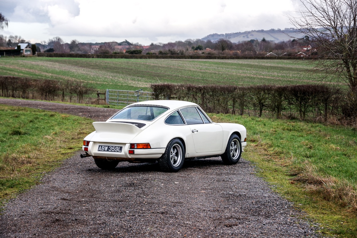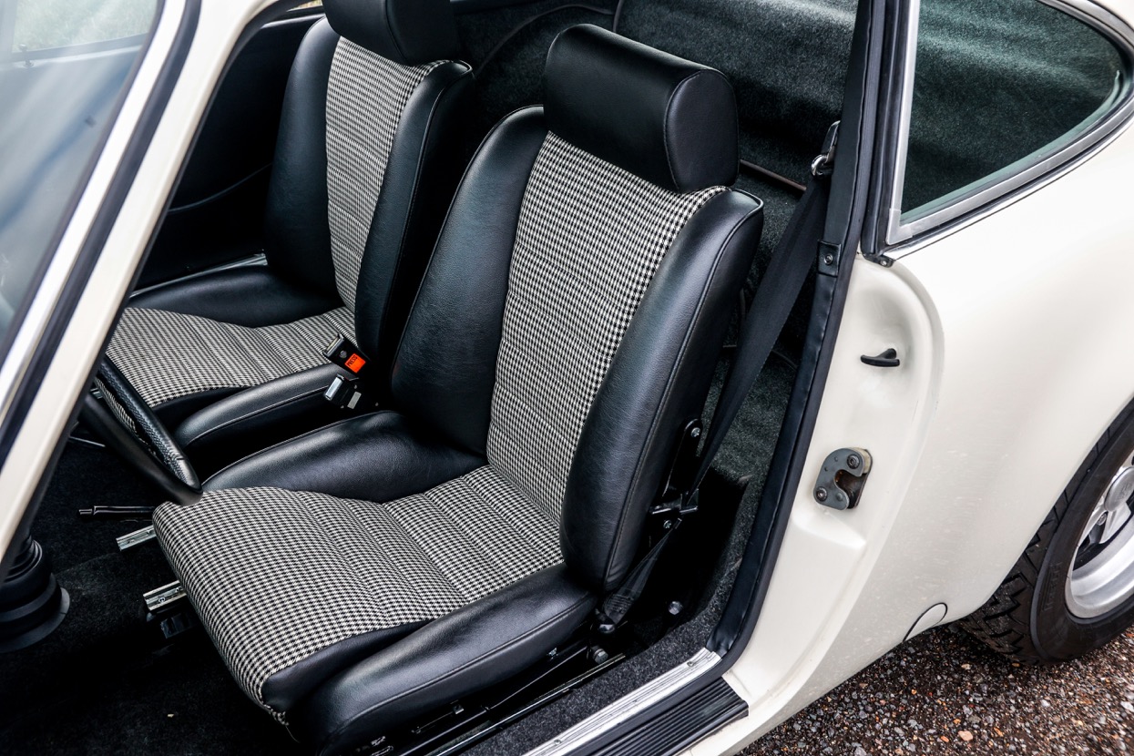 The Porsche 911 Carrera upgraded to 2.7 RS specification offered at Autostorico is finished in Grand Prix White with Black and White Houndstooth interior trim. First registered in France on 1st July 1973 the car remained in Europe where its Swiss competition passport confirms it competed in 2000 Hockenheim – Slalom Interlaken, 2000 Vareno race circuit at Vareno de’ Melegari in Italy and 2003 Hockenheim – Glodpokal Rennan. The car was registered in the UK in 2008 (being issued with the correct 1973 dated L plate). Passing through the hands of historic race enthusiast Ivan Dutton who competed in the car and had full HTP FIA papers class GTS22 issued. Specification highlights include Correct 2.7 litre RS 210bhp engine, Bosch 6-stamped mechanical fuel injection, 915 five speed gearbox Porsche Slite lsd; 7:31 final drive (4.43:1) Bilstein dampers. 7 and 8in Fuch alloy wheels.