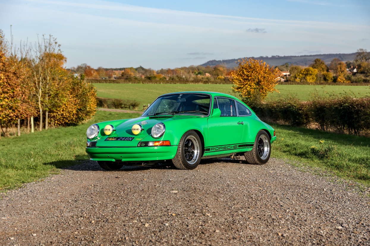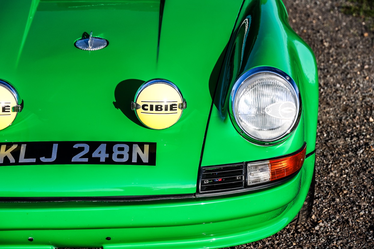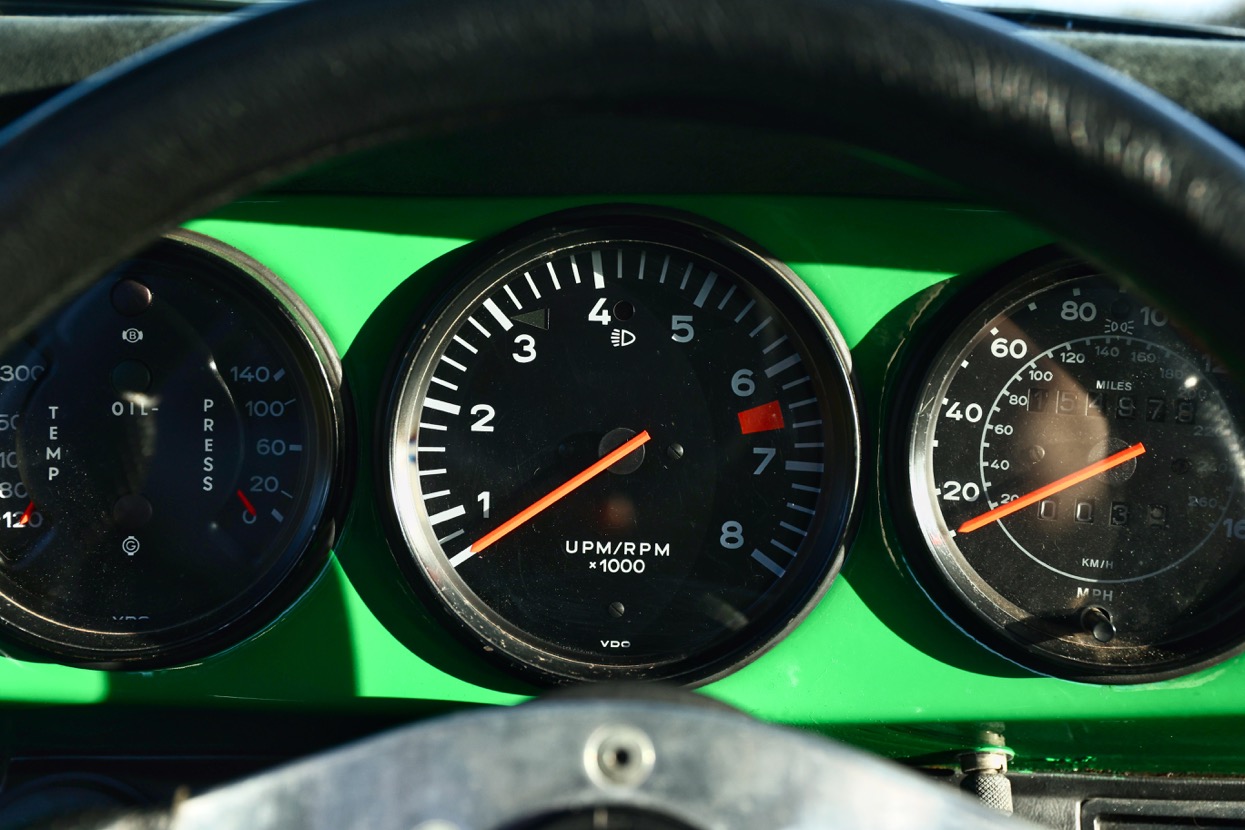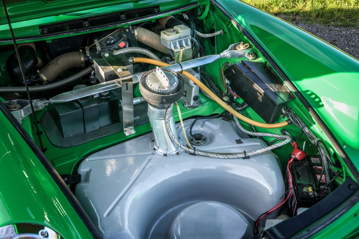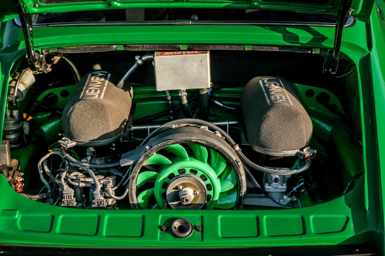 Works included removing the engine, gearbox and stripping the whole body, before replacing many of the panels with lightweight Kevlar or carbon panels before a respray in Viper Green. The original engine was replaced with a fully rebuilt 3.6 litre 964 unit running Jenvey throttle bodies and an OMEX electronic fuel injection system. This was mated to a close ratio quick shift G50 gearbox with a ZF limited slip differential along with upgraded brakes and suspension system. Other highlights include genuine 16” Fuchs alloys, Bonnet mounted driving lights, Bespoke exhaust system, FIA approved Heigo roll cage, Schruth harnesses, Heated windscreen. A period lightweight interior was installed which included Bielstein bucket seats, Alcantara trim and Momo steering wheel.