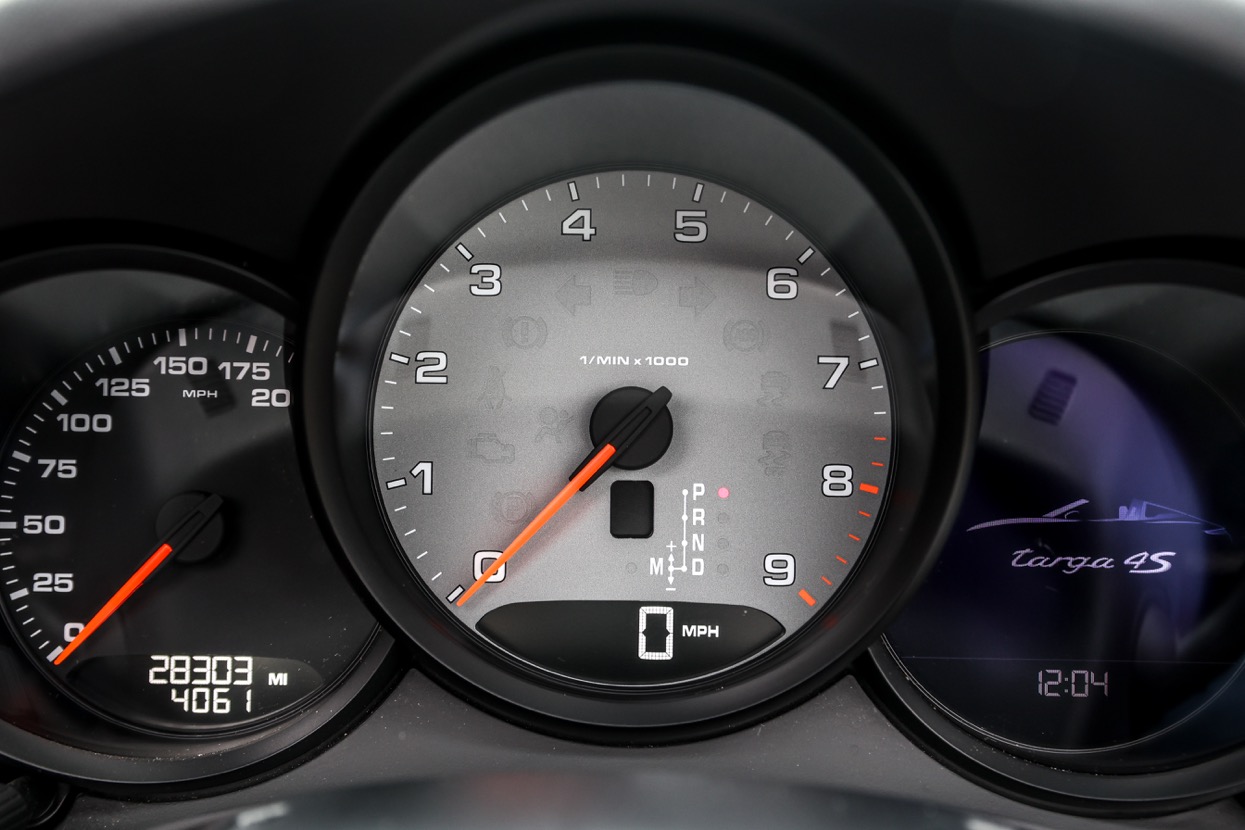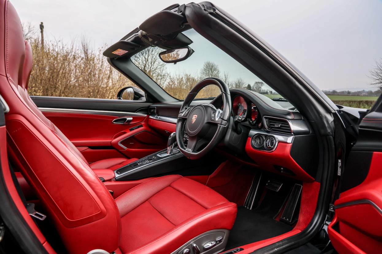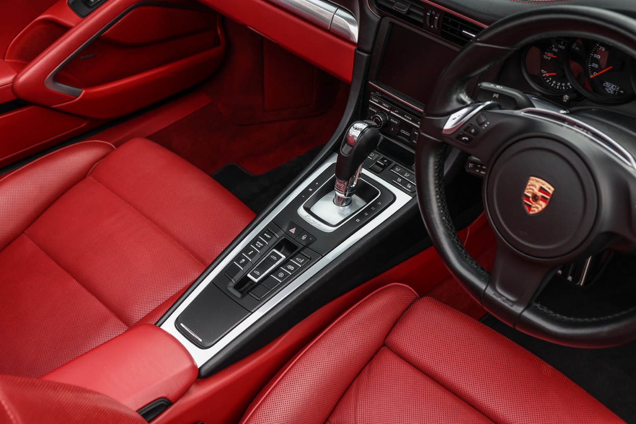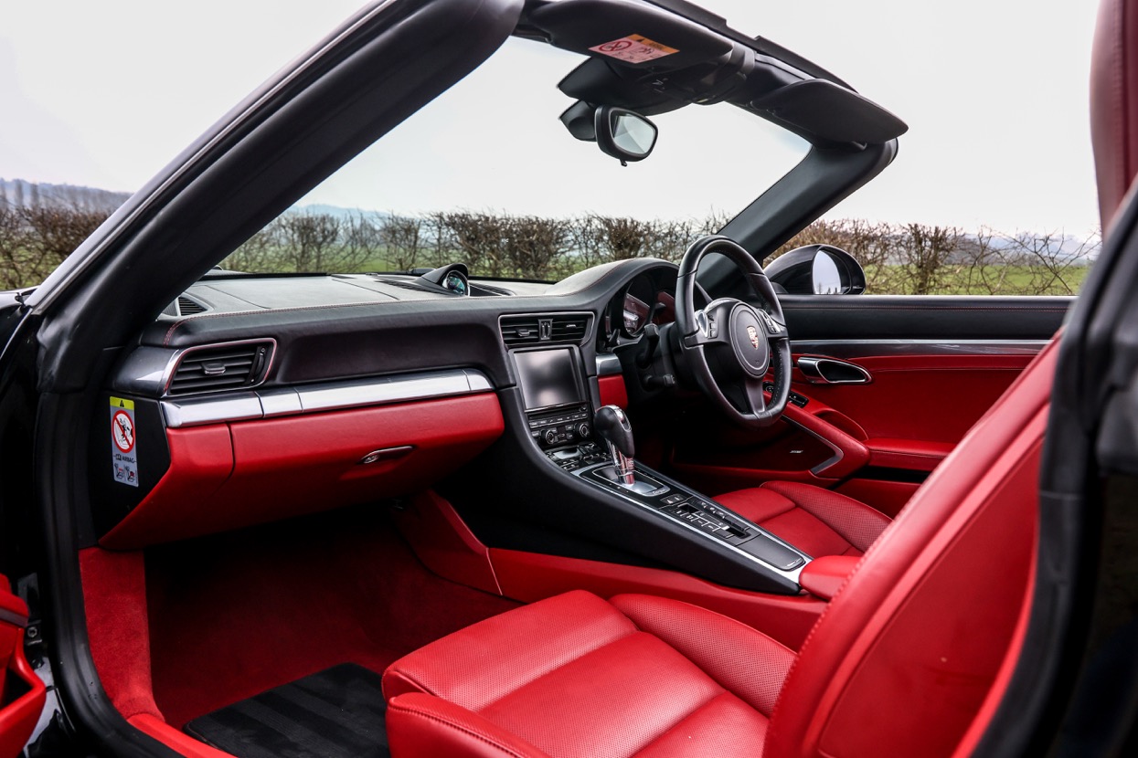 The Porsche 991 Carrera 4 S Targa PDK offered here at Autostorico is a December 2014 “64 Plate” finished in Black with Red perforated leather interior. Having covered a mere 28,303 miles this lovely example boats a comprehensive service history the last of which was carried out in July 2024 at 28,106 miles by Northway Porsche Reading. Specification highlights include 20” Carrera classic wheels, Bi-Xenon headlights, Front and rear park assist with reversing camera, BOSE sound system, Sports Chrono pack, Electric memory seats, Cruise control, Heated seats, multi-function steering wheel, PCM Navigation module, Bluetooth telephone, PDK gearbox and red brake calipers.